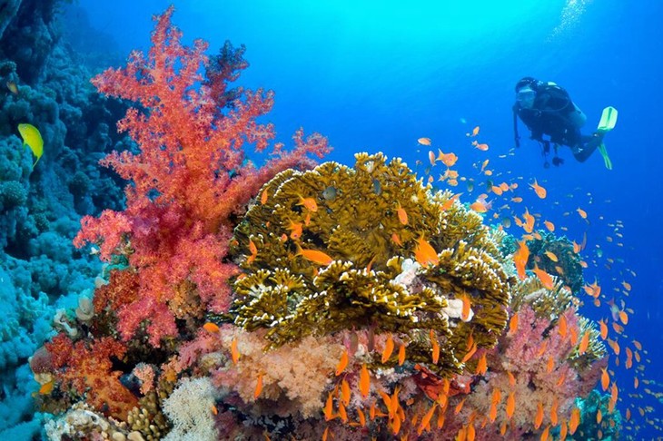看似植物的珊瑚是由珊瑚虫分泌出的外壳构成,它们五彩缤纷,造型奇特,丝毫不逊色于陆地上的花朵。珊瑚丛中寄居着虫黄藻与许多鱼类,犹如一片水下“热带雨林”,展示着大海的美丽。