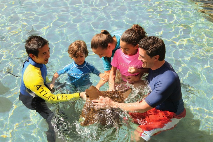 预订该环节,进入亚特兰蒂斯水世界的鲨鱼环礁湖浅水区,亲手喂养友善的牛鼻鳐鱼。