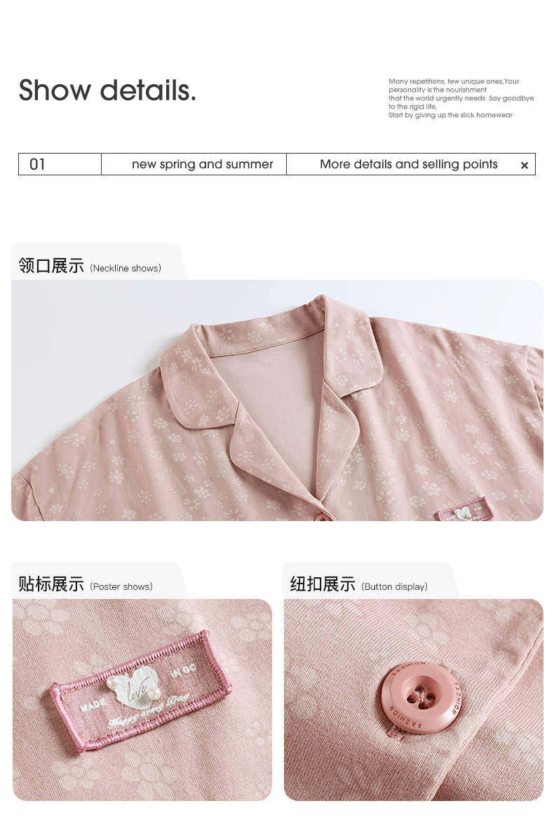 可人儿夏季纯棉提花睡衣女短袖长裤开衫大码夏天月子服家居服三件套装