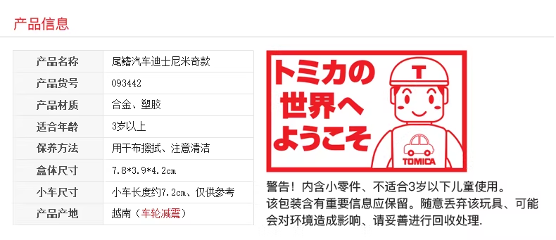 Tomica 尾鳍汽车 迪士尼米奇款TMSC093442