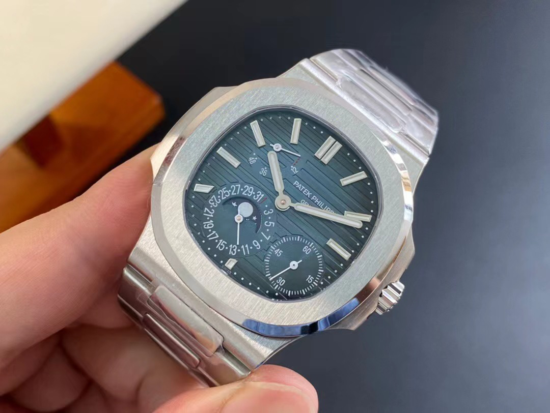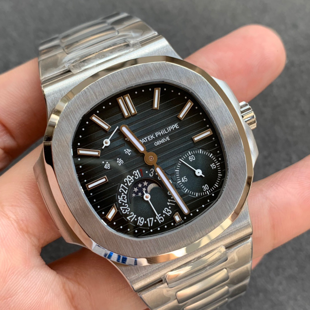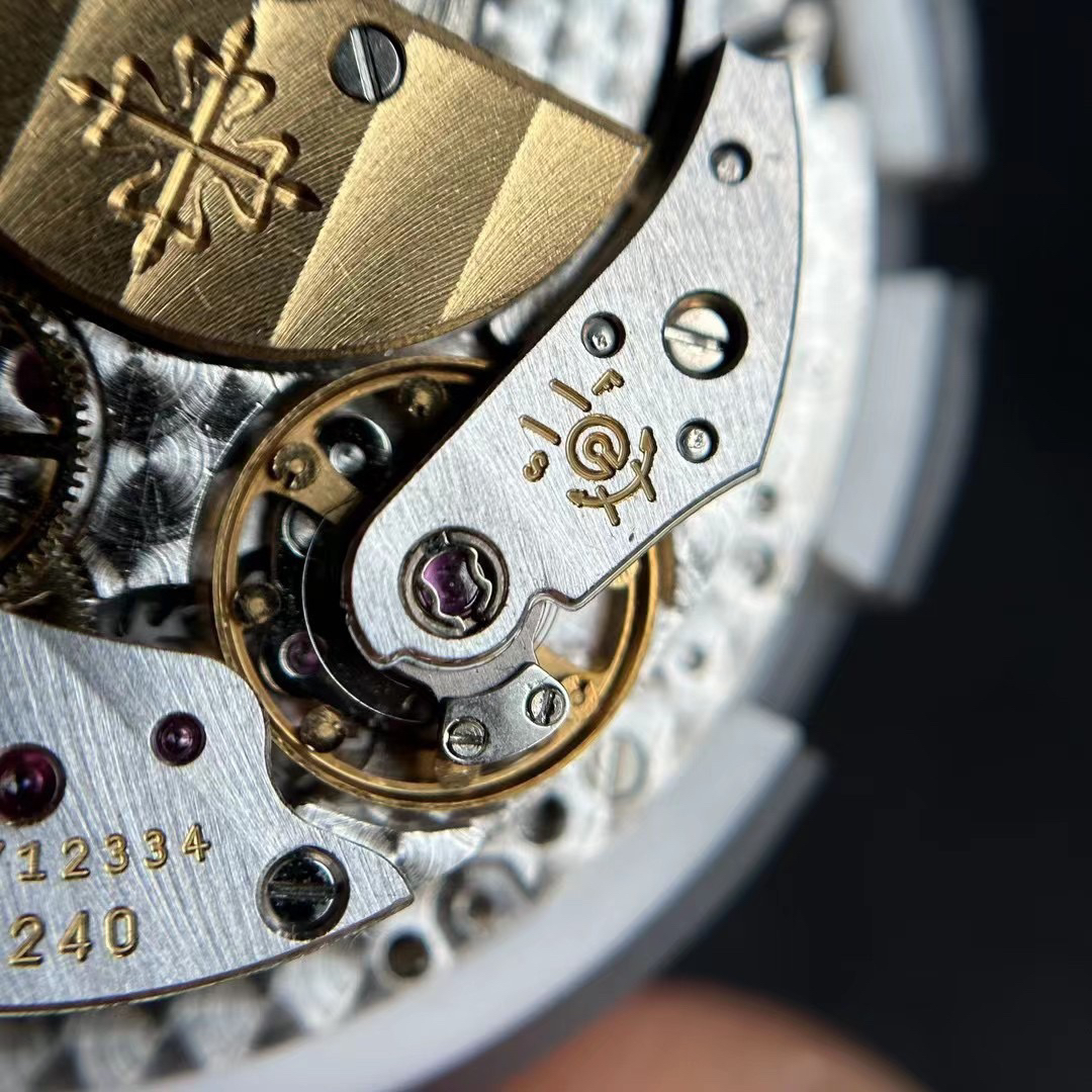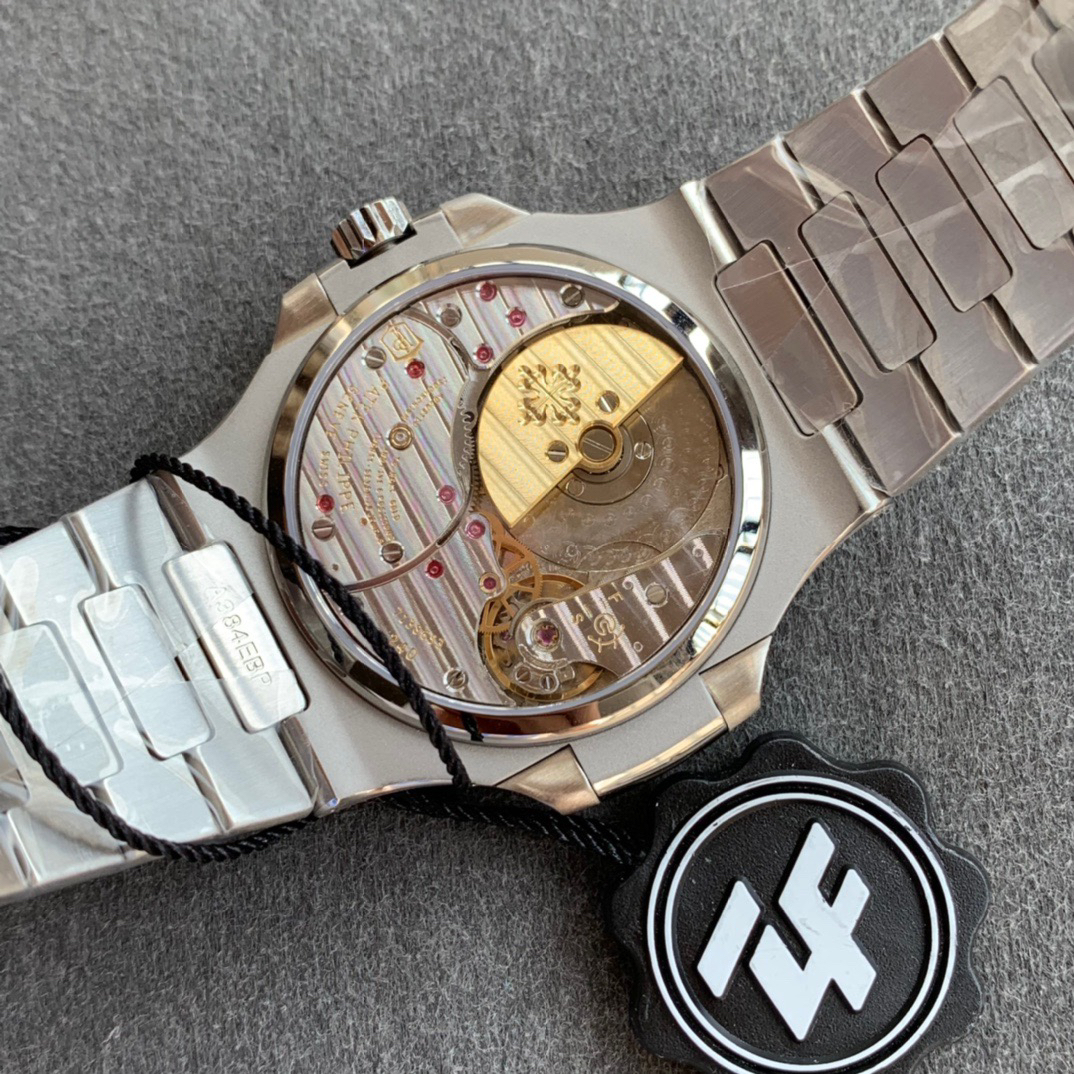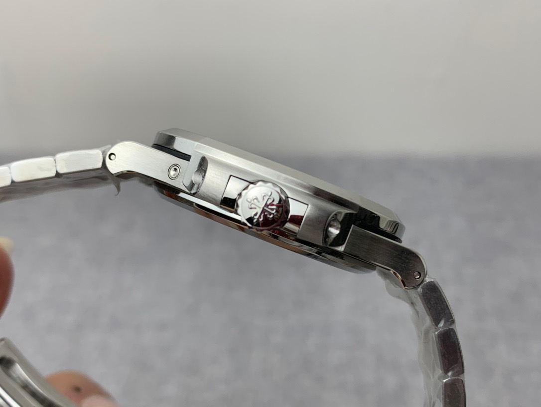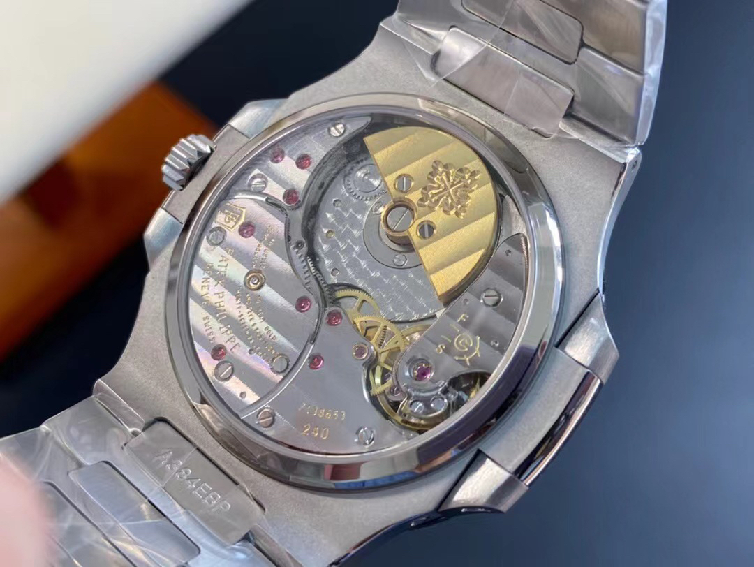 Noob潜心三年 真"芯"之作!百达翡丽PP5712GR"钢王之王"巅峰出道了!这是真正具有里程碑意义的超级一体机芯Cal.240 PS IRM C LU。全机芯零件数265个,平面游丝,21600每小时振荡次数 Gyromax带调节砝码的摆轮,稳定无误差。(不同于市面上现有的假机芯盖甲板,假珍珠陀) 全新修正的不锈钢表带,铰链部分根据真正的百达翡丽鹦鹉螺不锈钢表带拆解开发,和正品一致的贴合效果,逆袭市面上所有副本,铰链开合角度和正品一致,锁毕声音和正品相同。而PPF厂独家的"蓝魅"面无限接近接近原版,更是傲视群雄!