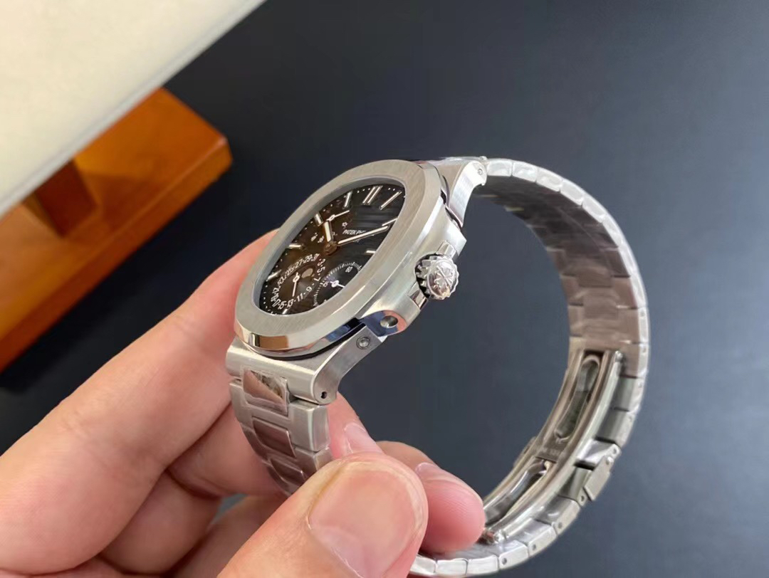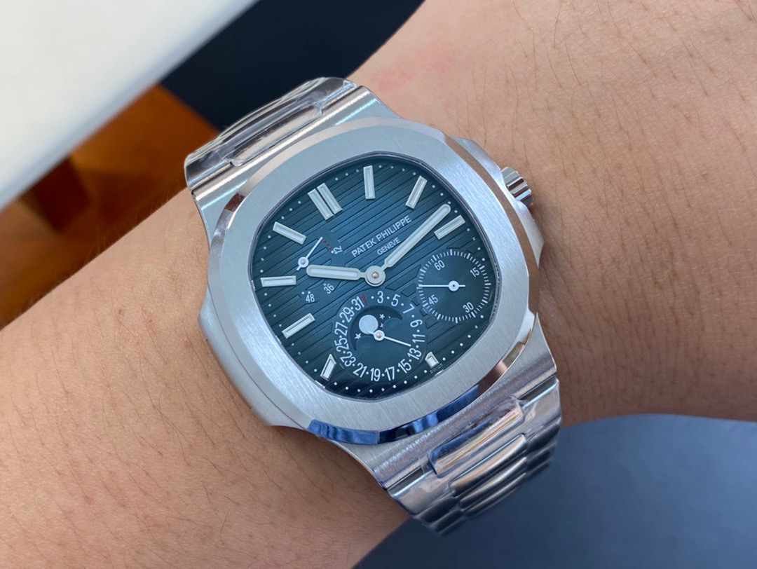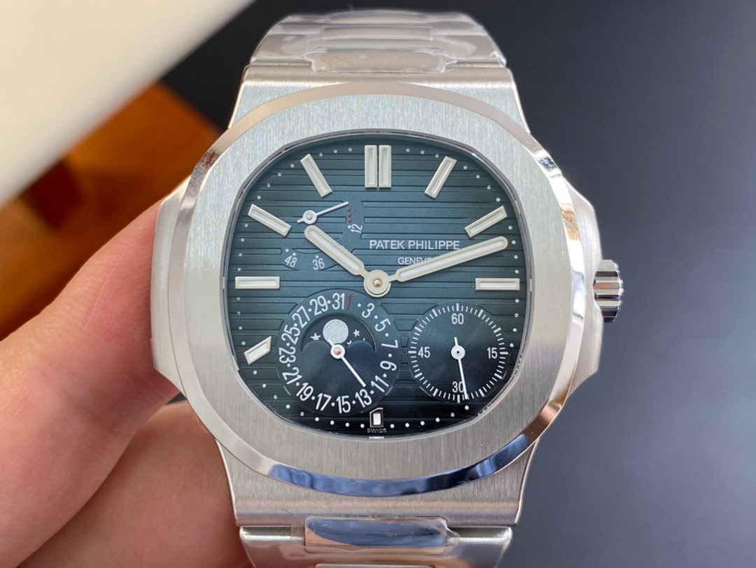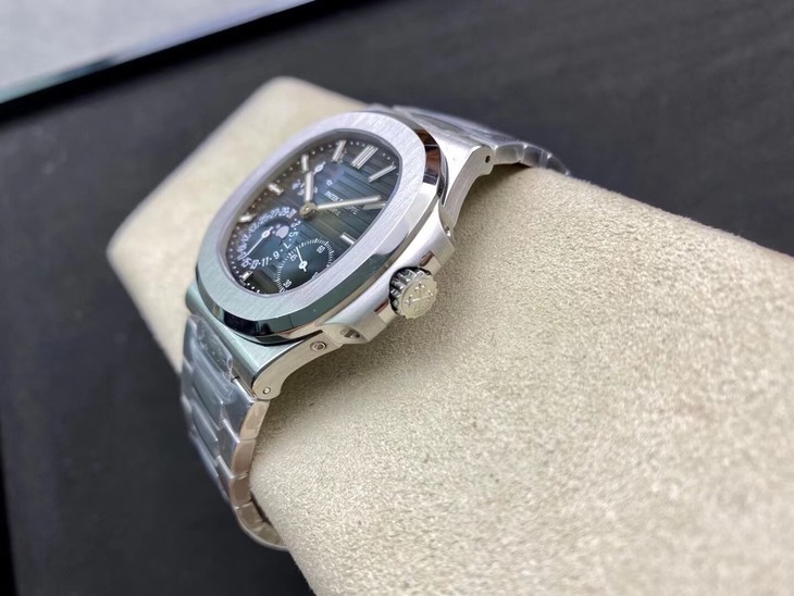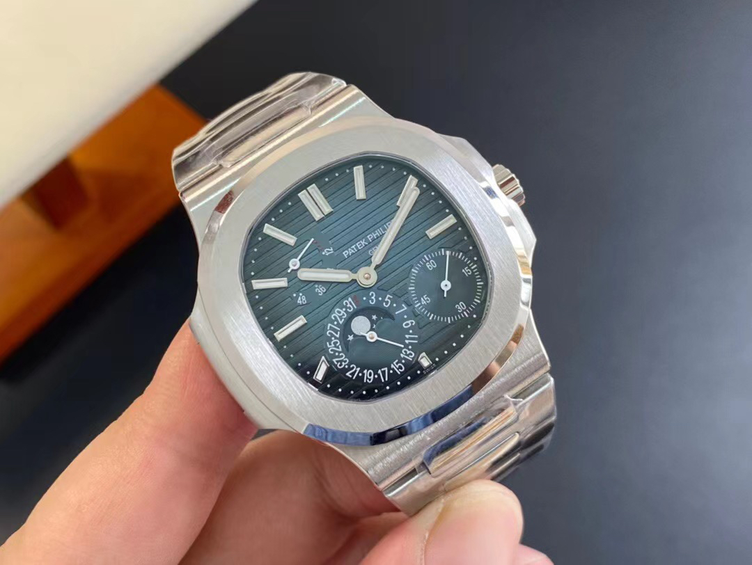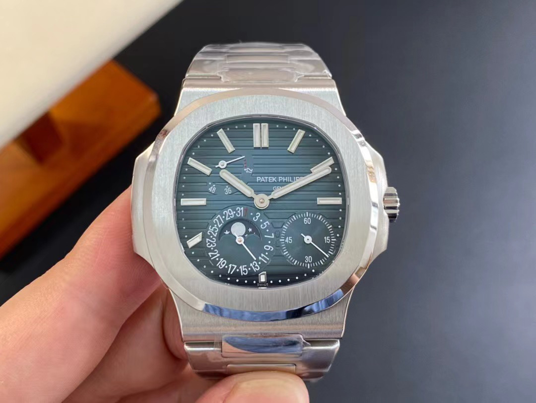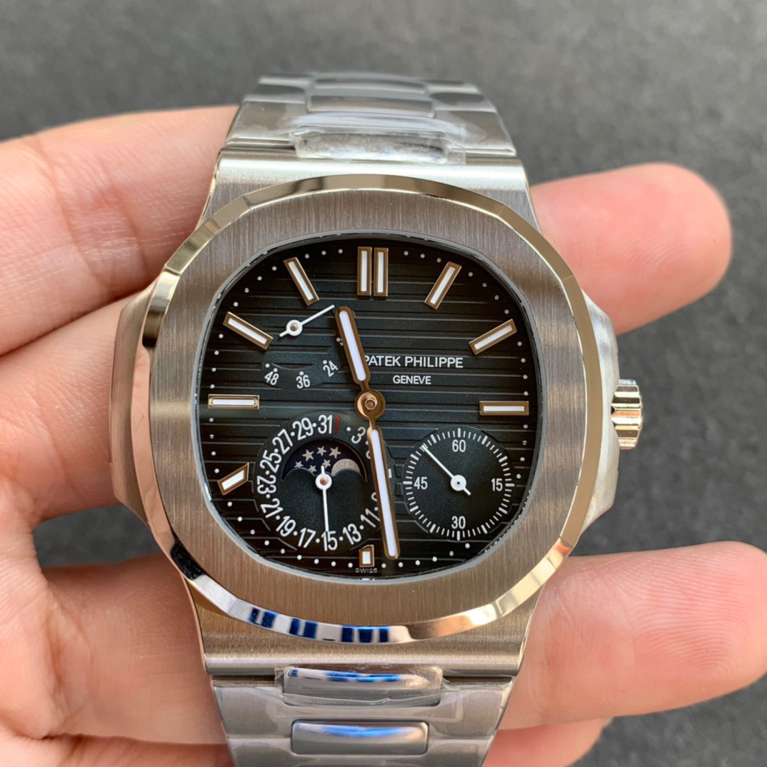 Noob潜心三年 真"芯"之作!百达翡丽PP5712GR"钢王之王"巅峰出道了!这是真正具有里程碑意义的超级一体机芯Cal.240 PS IRM C LU。全机芯零件数265个,平面游丝,21600每小时振荡次数 Gyromax带调节砝码的摆轮,稳定无误差。(不同于市面上现有的假机芯盖甲板,假珍珠陀) 全新修正的不锈钢表带,铰链部分根据真正的百达翡丽鹦鹉螺不锈钢表带拆解开发,和正品一致的贴合效果,逆袭市面上所有副本,铰链开合角度和正品一致,锁毕声音和正品相同。而PPF厂独家的"蓝魅"面无限接近接近原版,更是傲视群雄!