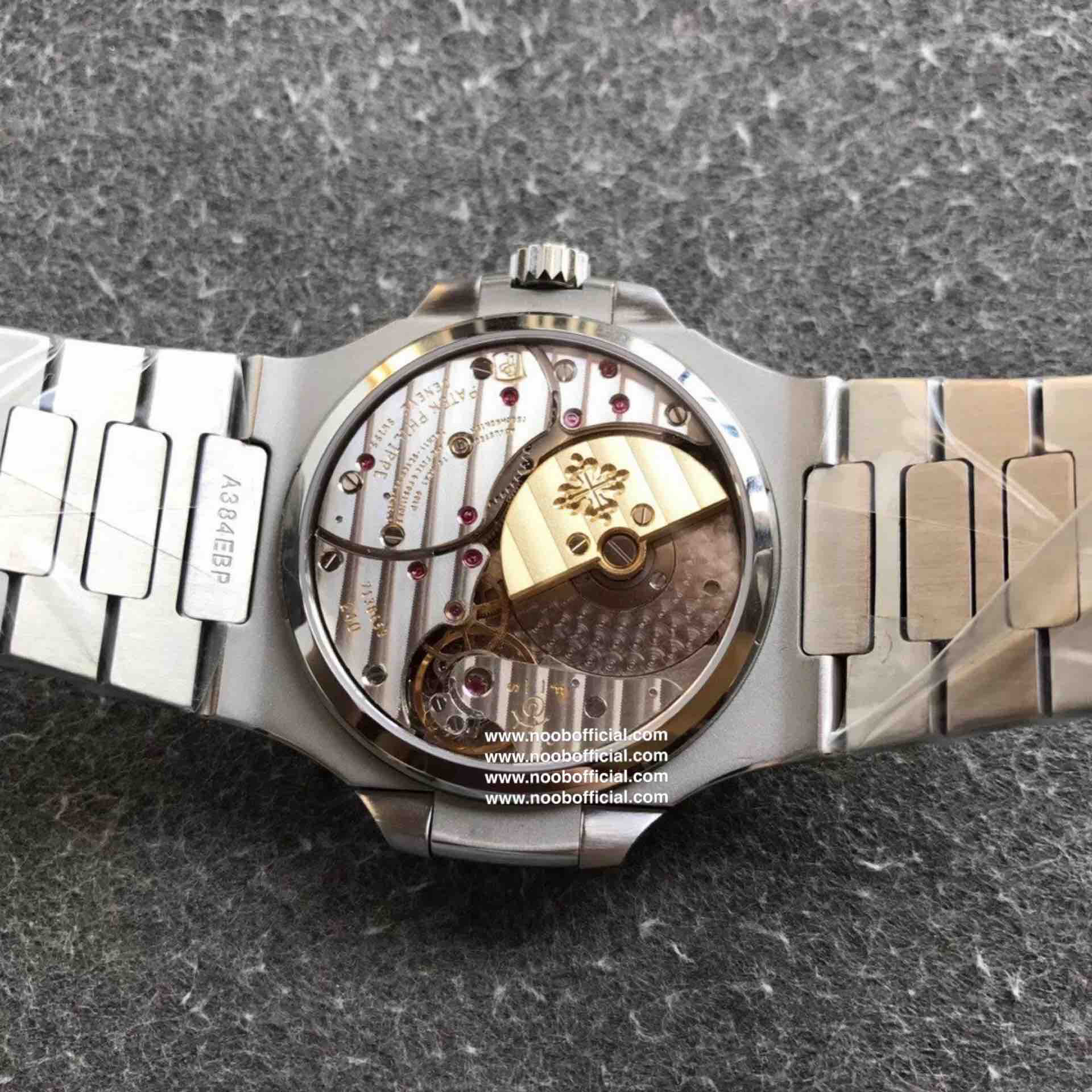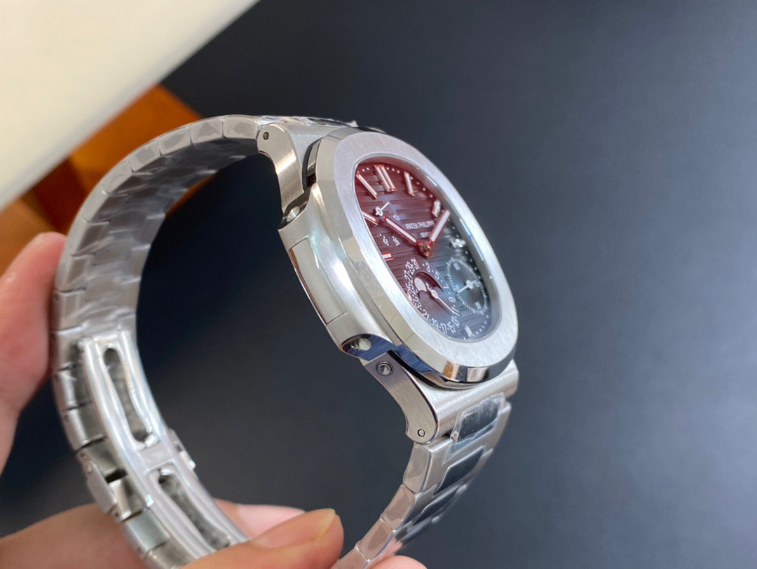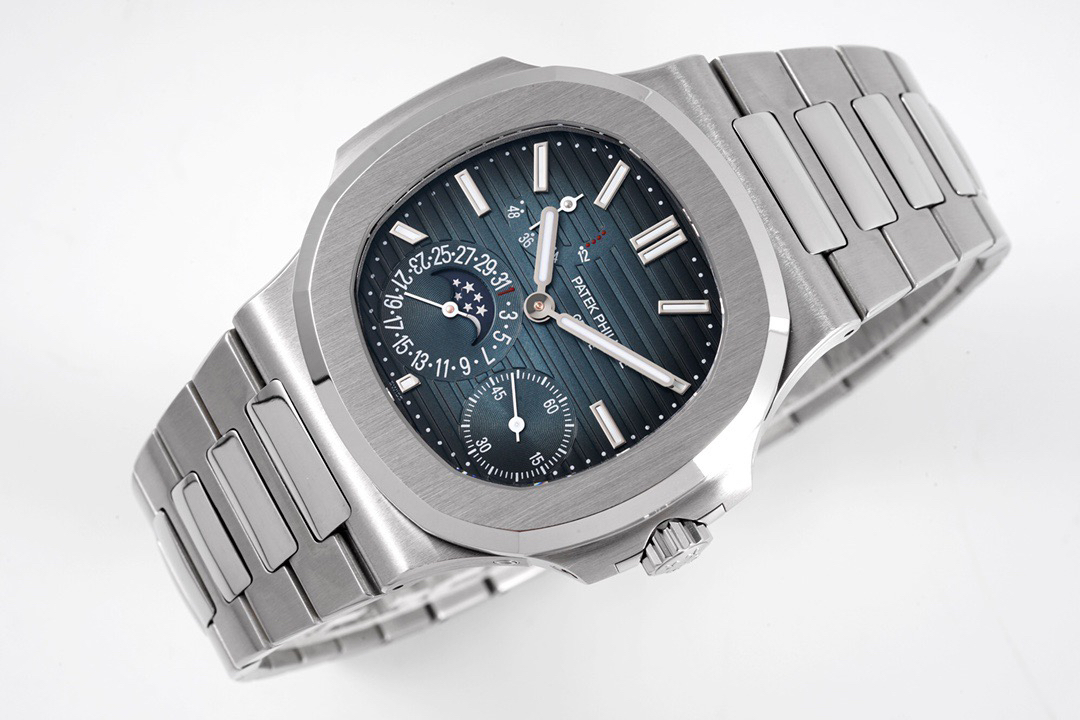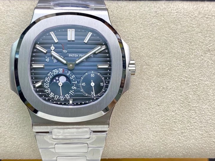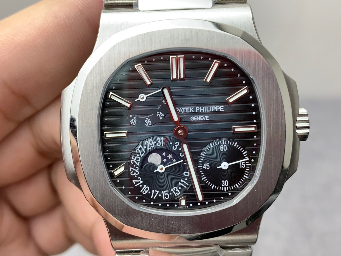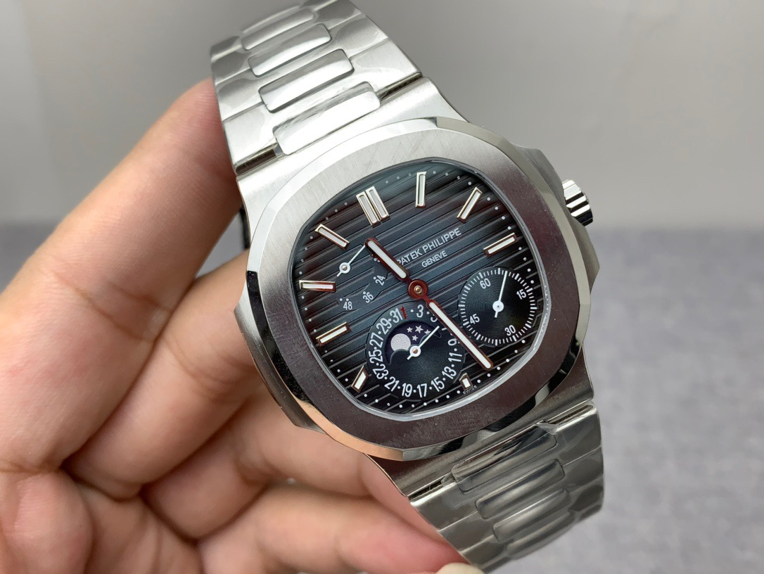 Noob潜心三年 真"芯"之作!百达翡丽PP5712GR"钢王之王"巅峰出道了!这是真正具有里程碑意义的超级一体机芯Cal.240 PS IRM C LU。全机芯零件数265个,平面游丝,21600每小时振荡次数 Gyromax带调节砝码的摆轮,稳定无误差。(不同于市面上现有的假机芯盖甲板,假珍珠陀) 全新修正的不锈钢表带,铰链部分根据真正的百达翡丽鹦鹉螺不锈钢表带拆解开发,和正品一致的贴合效果,逆袭市面上所有副本,铰链开合角度和正品一致,锁毕声音和正品相同。而PPF厂独家的"蓝魅"面无限接近接近原版,更是傲视群雄!