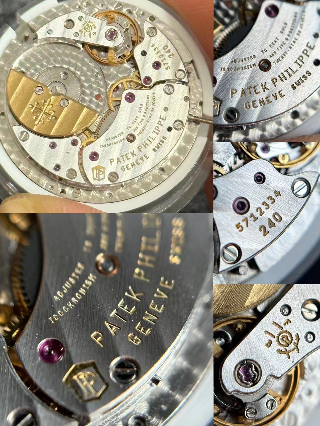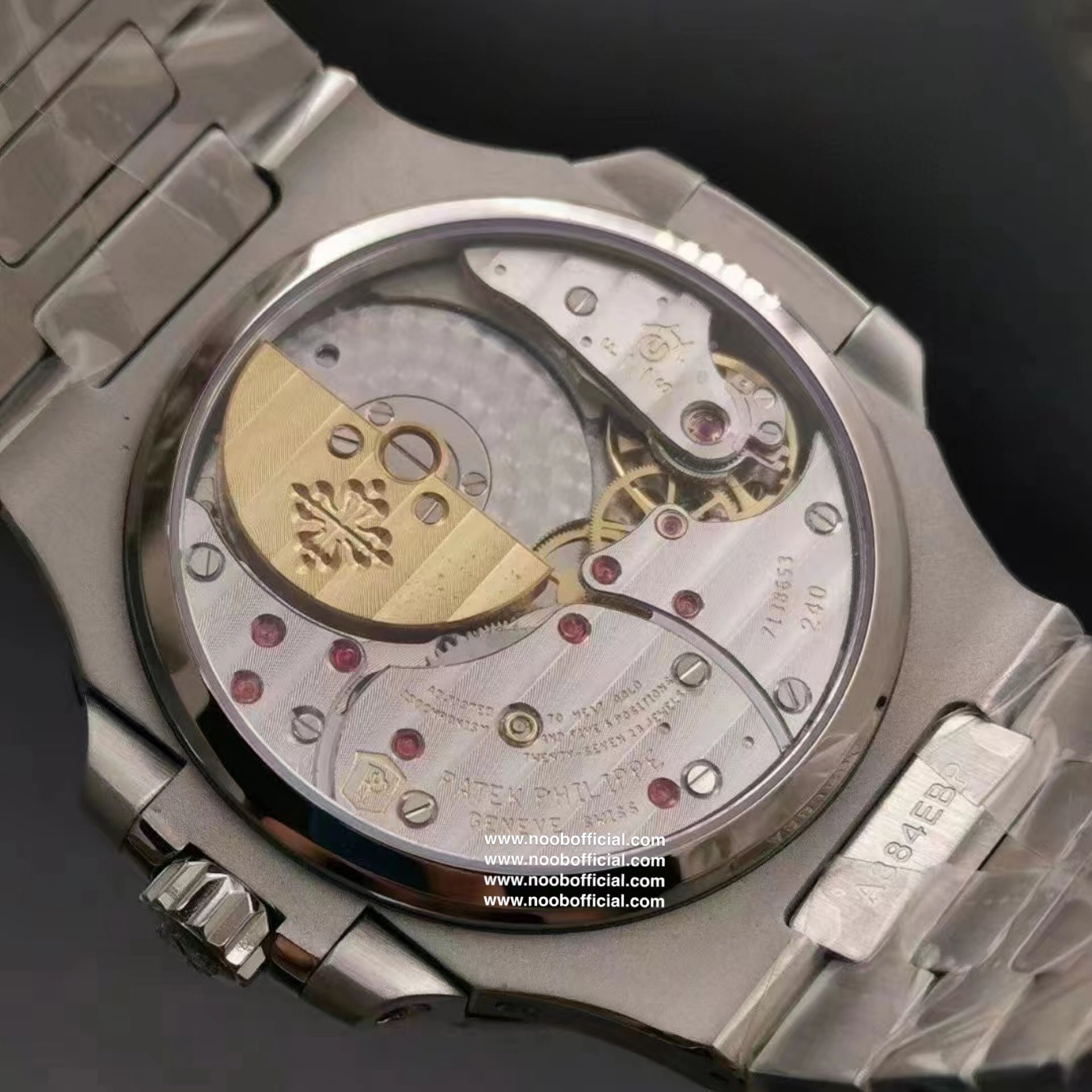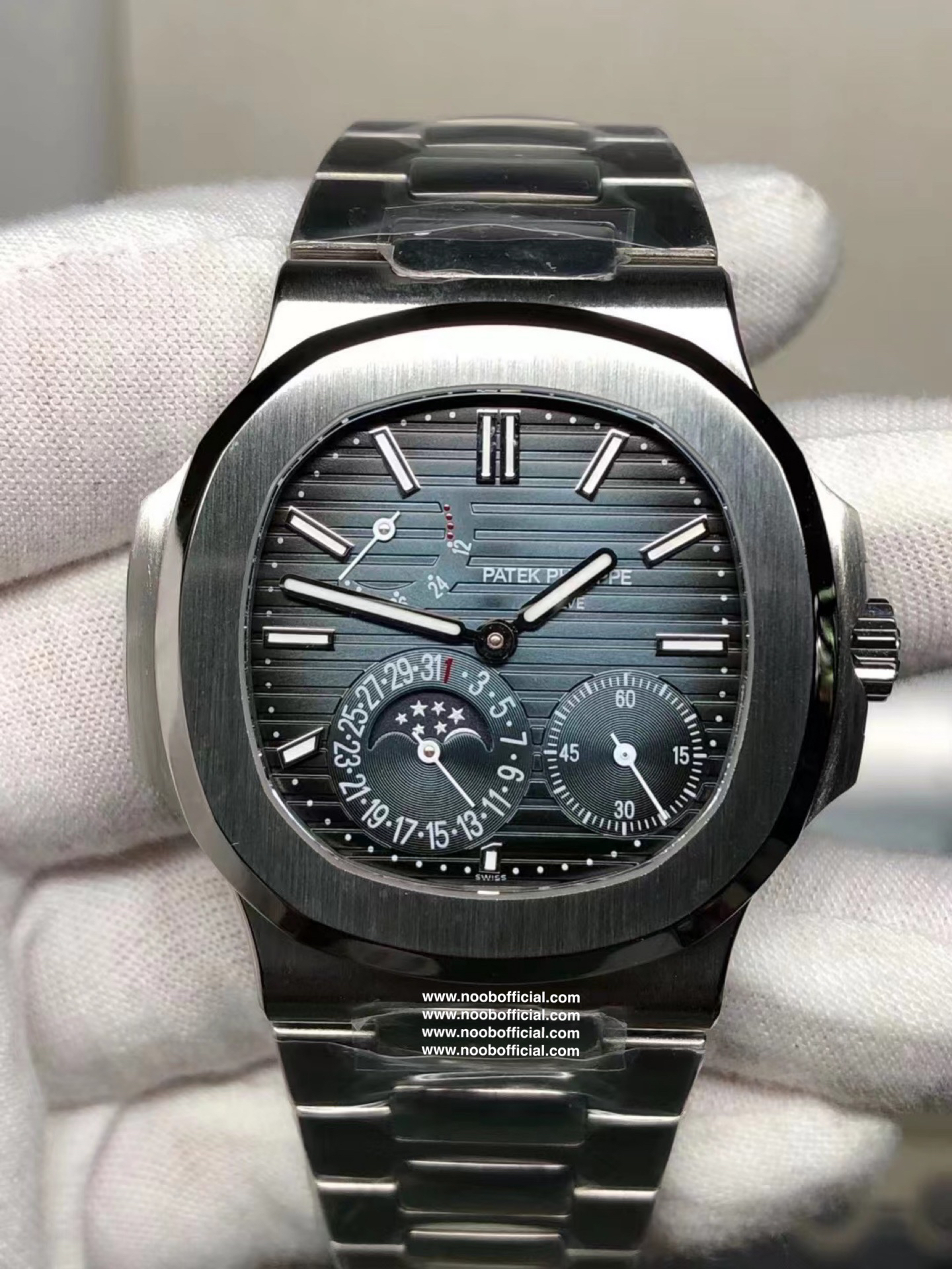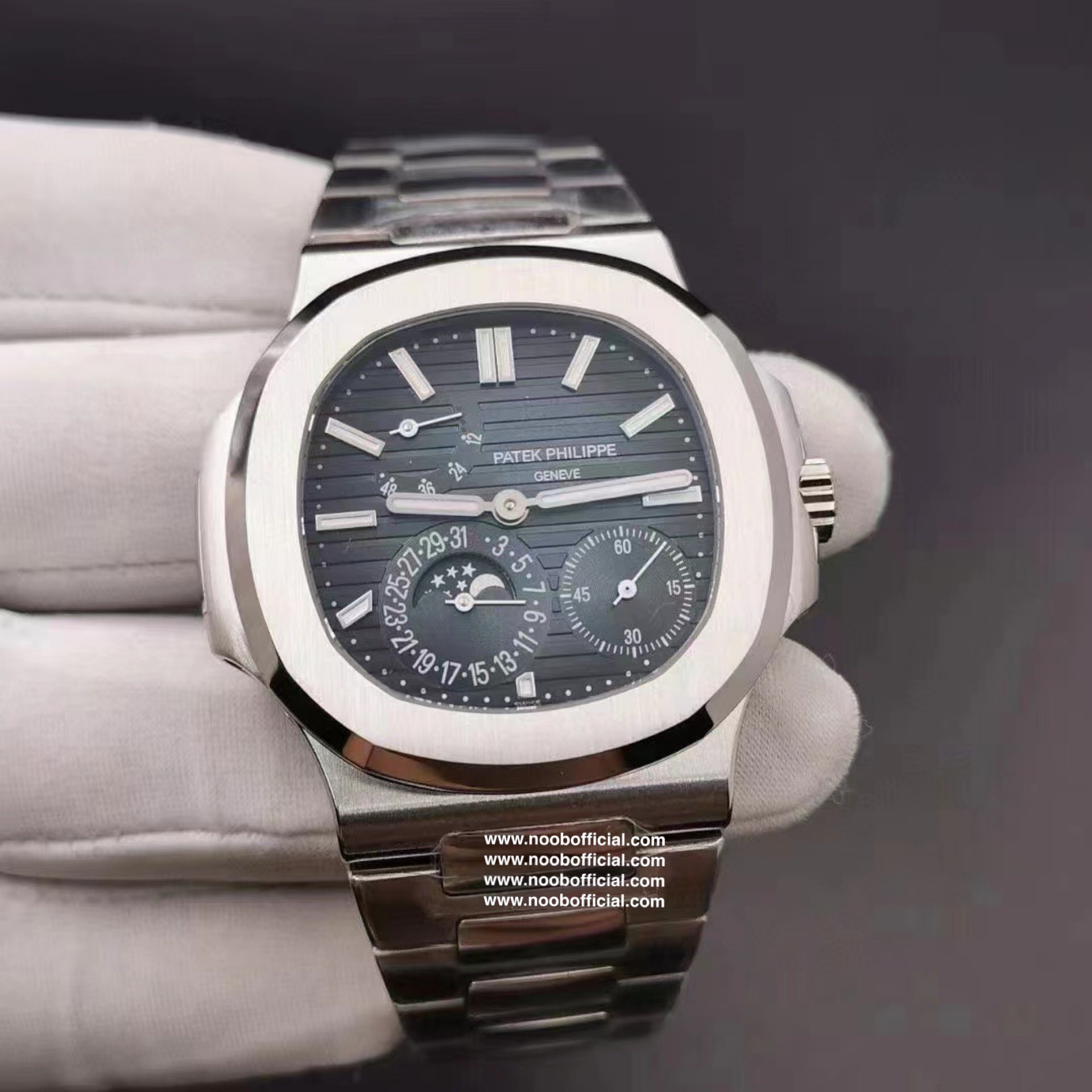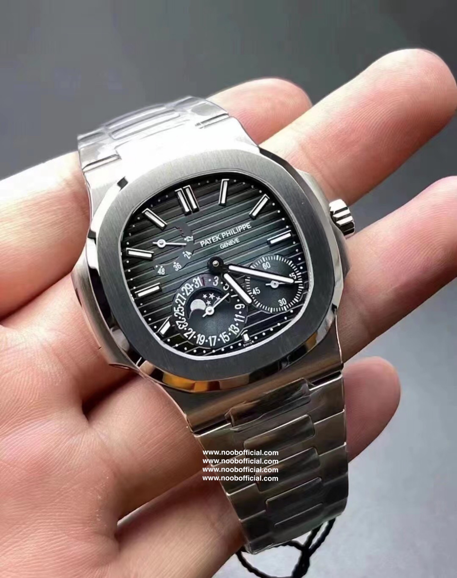 Noob潜心三年 真"芯"之作!百达翡丽PP5712GR"钢王之王"巅峰出道了!这是真正具有里程碑意义的超级一体机芯Cal.240 PS IRM C LU。全机芯零件数265个,平面游丝,21600每小时振荡次数 Gyromax带调节砝码的摆轮,稳定无误差。(不同于市面上现有的假机芯盖甲板,假珍珠陀) 全新修正的不锈钢表带,铰链部分根据真正的百达翡丽鹦鹉螺不锈钢表带拆解开发,和正品一致的贴合效果,逆袭市面上所有副本,铰链开合角度和正品一致,锁毕声音和正品相同。而PPF厂独家的"蓝魅"面无限接近接近原版,更是傲视群雄!