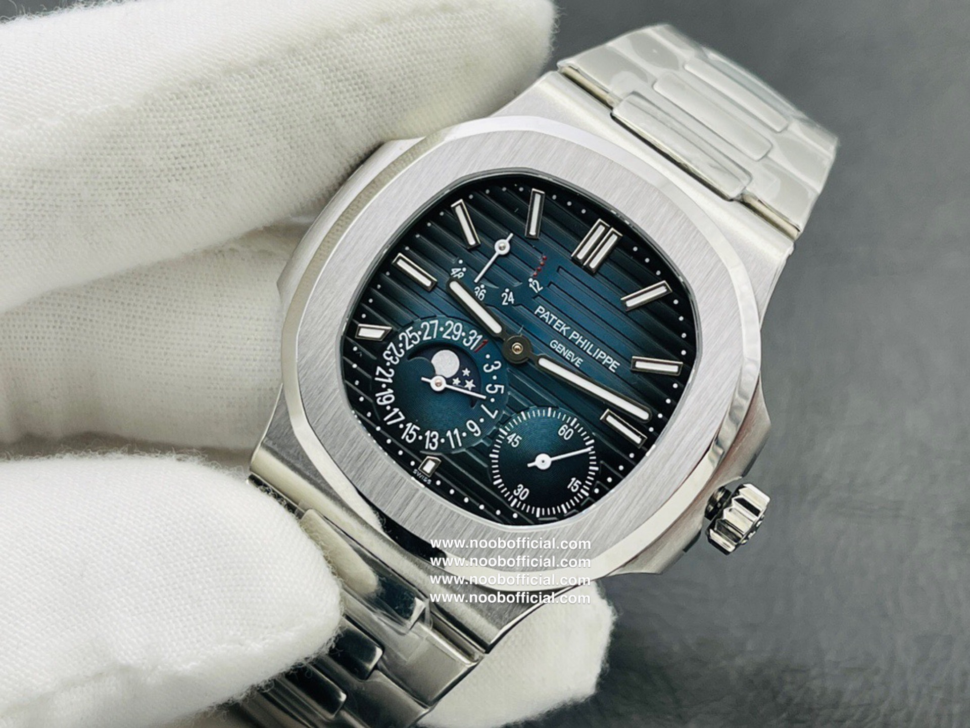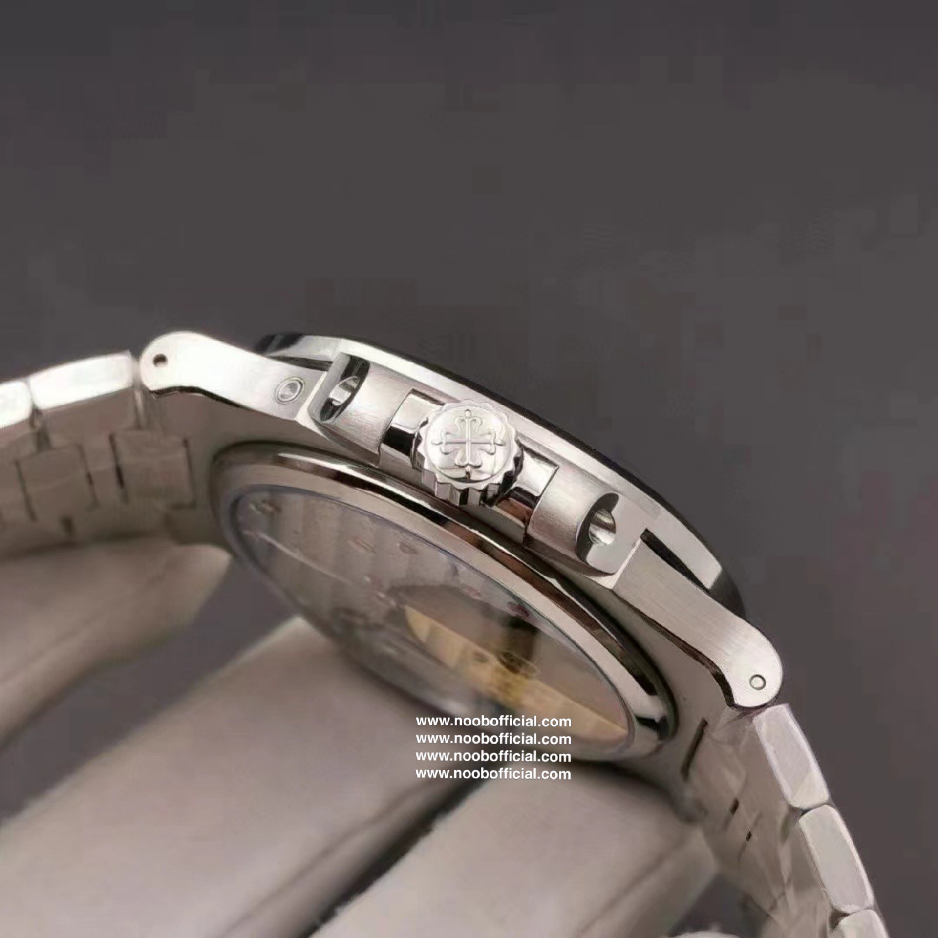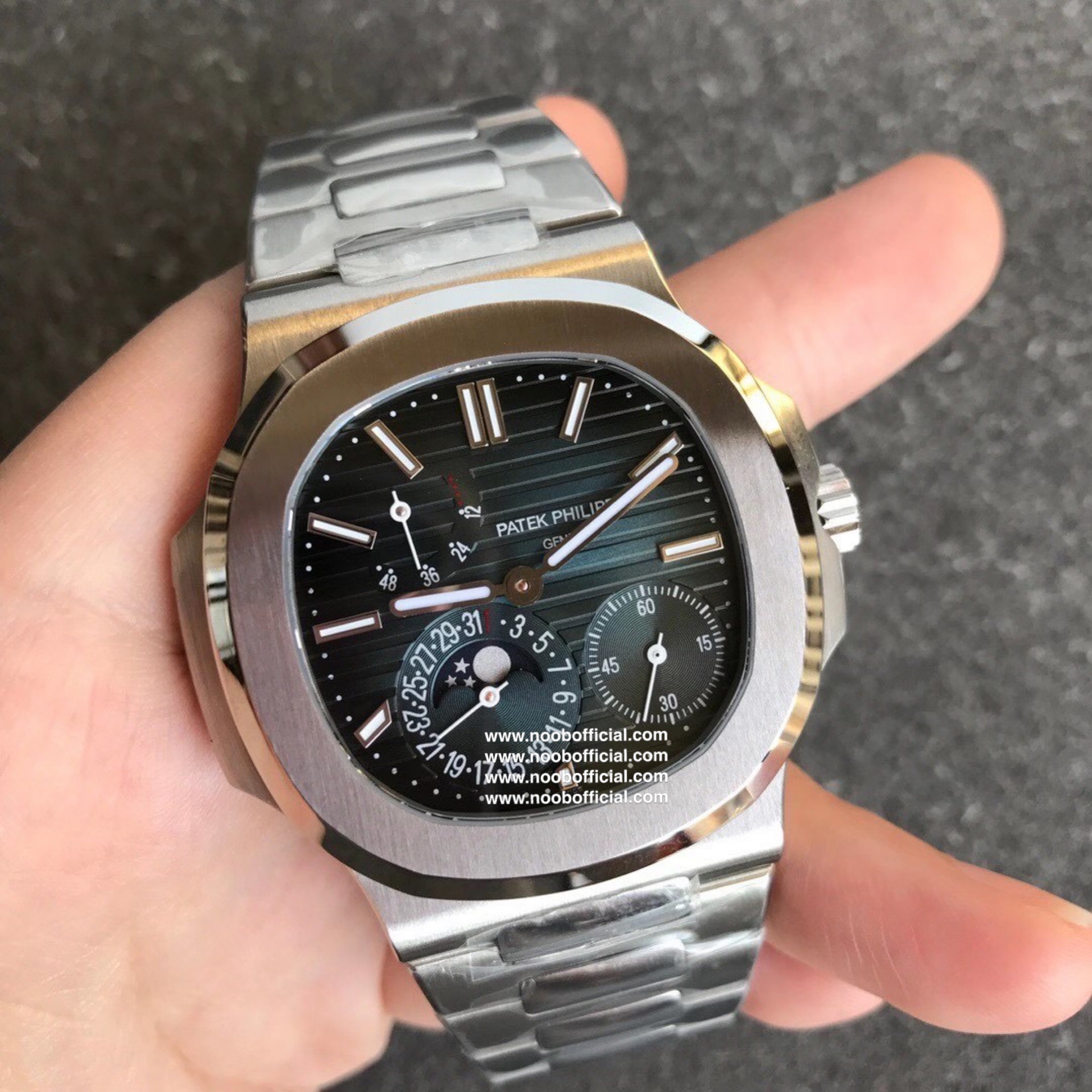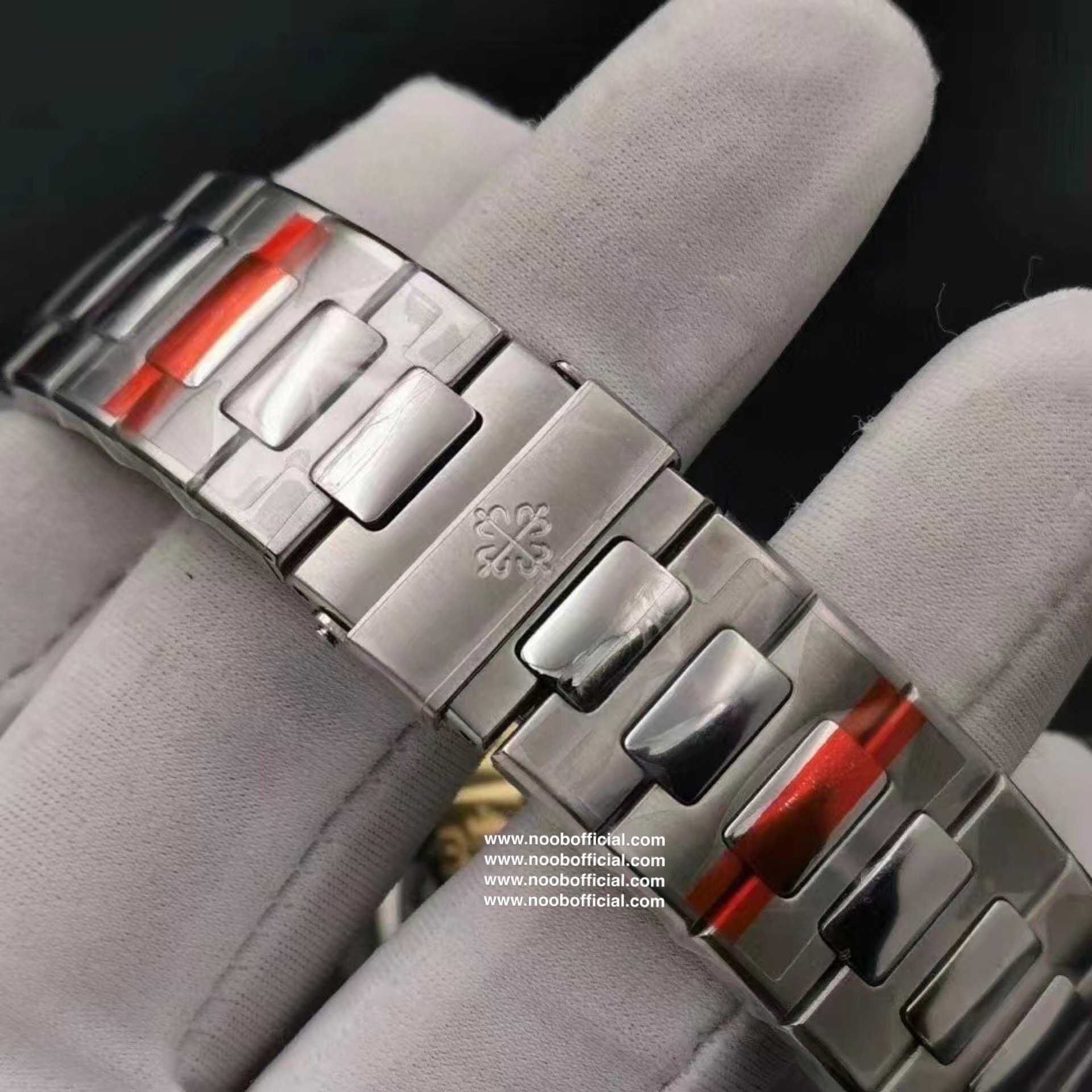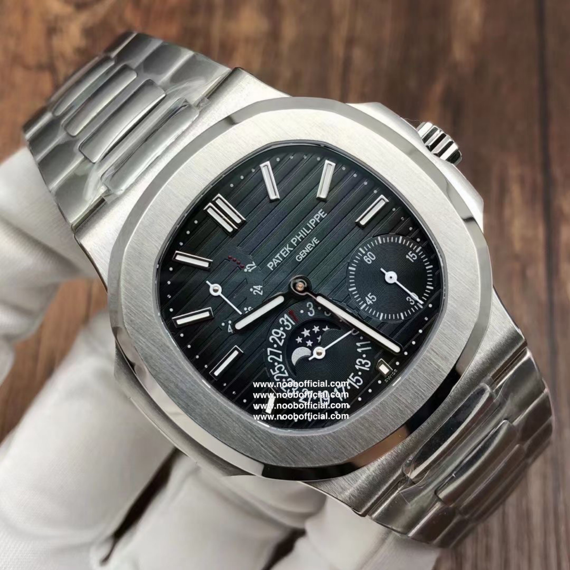 Noob潜心三年 真"芯"之作!百达翡丽PP5712GR"钢王之王"巅峰出道了!这是真正具有里程碑意义的超级一体机芯Cal.240 PS IRM C LU。全机芯零件数265个,平面游丝,21600每小时振荡次数 Gyromax带调节砝码的摆轮,稳定无误差。(不同于市面上现有的假机芯盖甲板,假珍珠陀) 全新修正的不锈钢表带,铰链部分根据真正的百达翡丽鹦鹉螺不锈钢表带拆解开发,和正品一致的贴合效果,逆袭市面上所有副本,铰链开合角度和正品一致,锁毕声音和正品相同。而PPF厂独家的"蓝魅"面无限接近接近原版,更是傲视群雄!