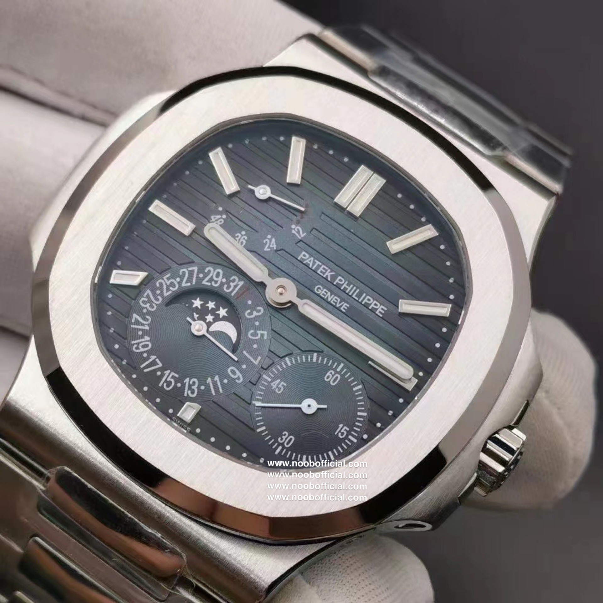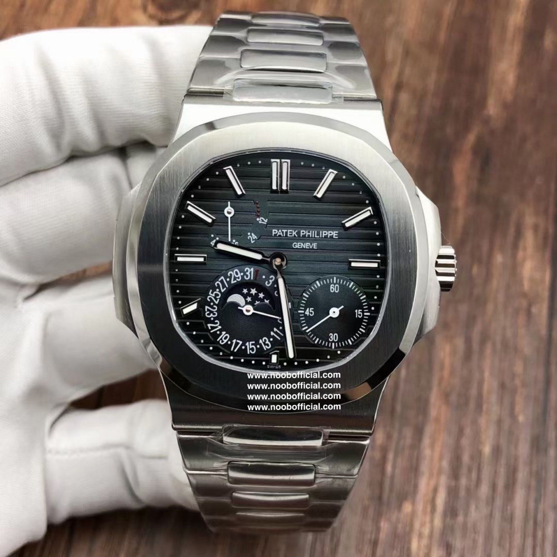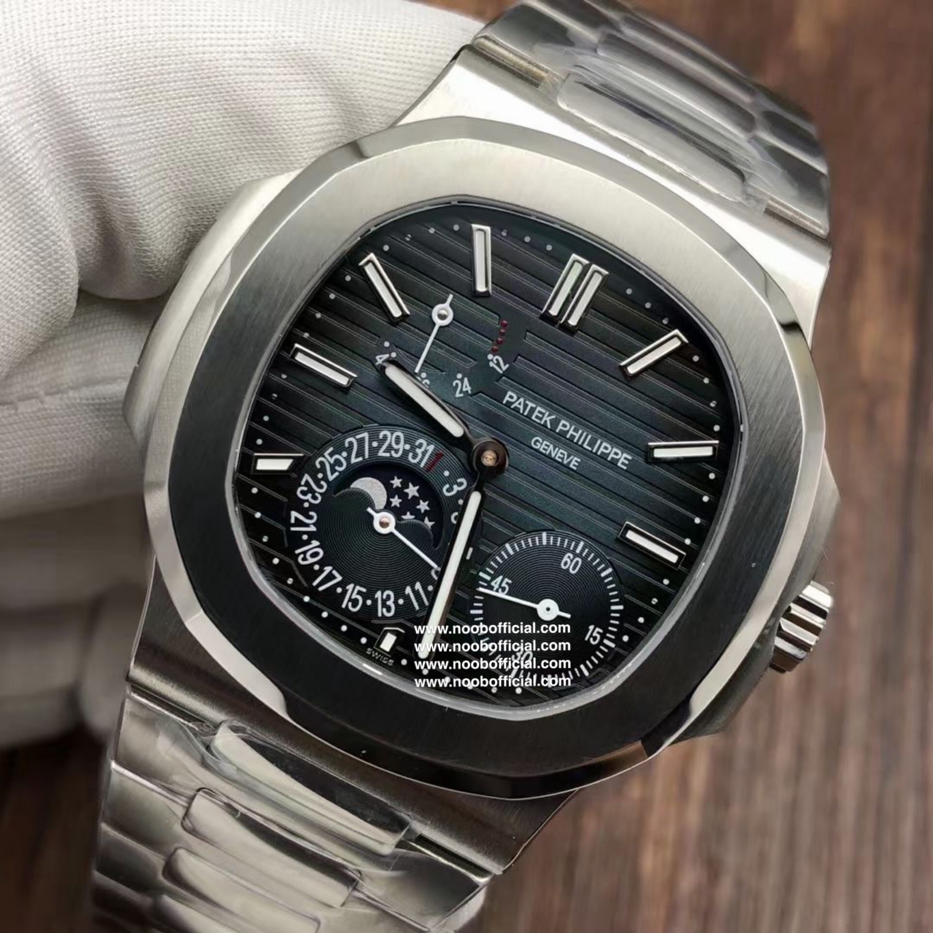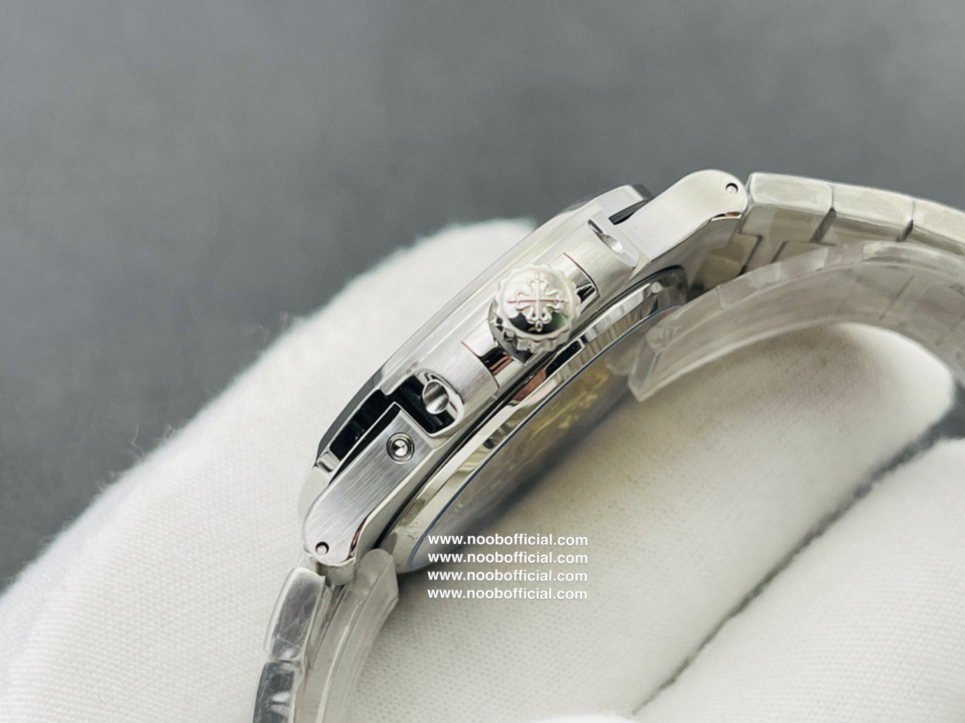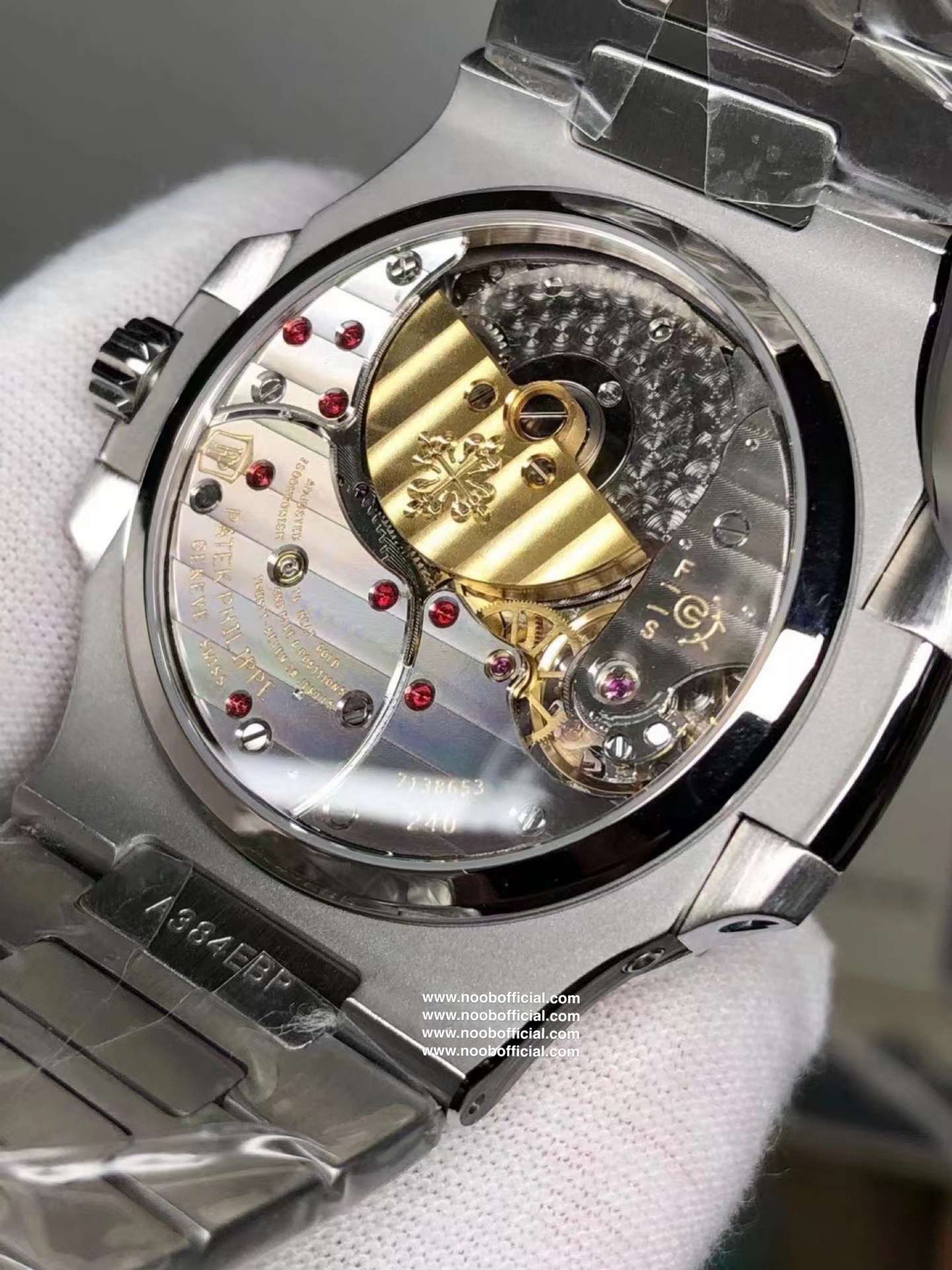 Noob潜心三年 真"芯"之作!百达翡丽PP5712GR"钢王之王"巅峰出道了!这是真正具有里程碑意义的超级一体机芯Cal.240 PS IRM C LU。全机芯零件数265个,平面游丝,21600每小时振荡次数 Gyromax带调节砝码的摆轮,稳定无误差。(不同于市面上现有的假机芯盖甲板,假珍珠陀) 全新修正的不锈钢表带,铰链部分根据真正的百达翡丽鹦鹉螺不锈钢表带拆解开发,和正品一致的贴合效果,逆袭市面上所有副本,铰链开合角度和正品一致,锁毕声音和正品相同。而PPF厂独家的"蓝魅"面无限接近接近原版,更是傲视群雄!