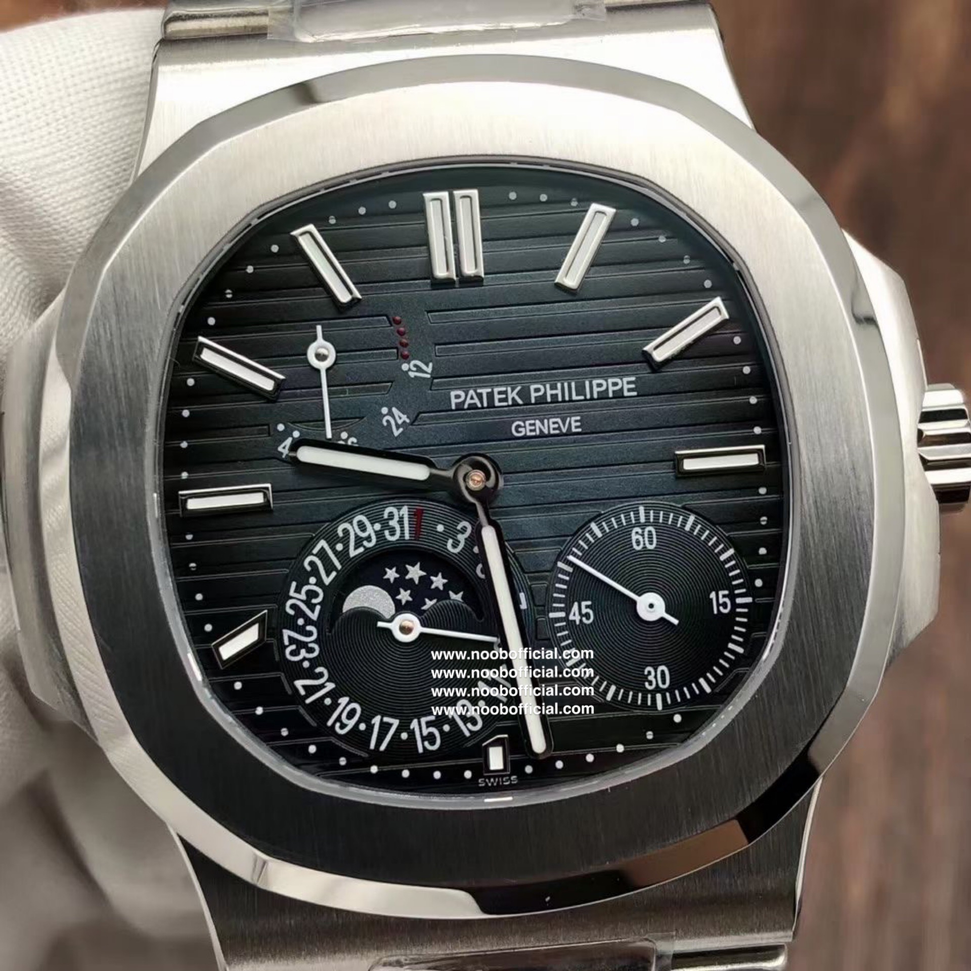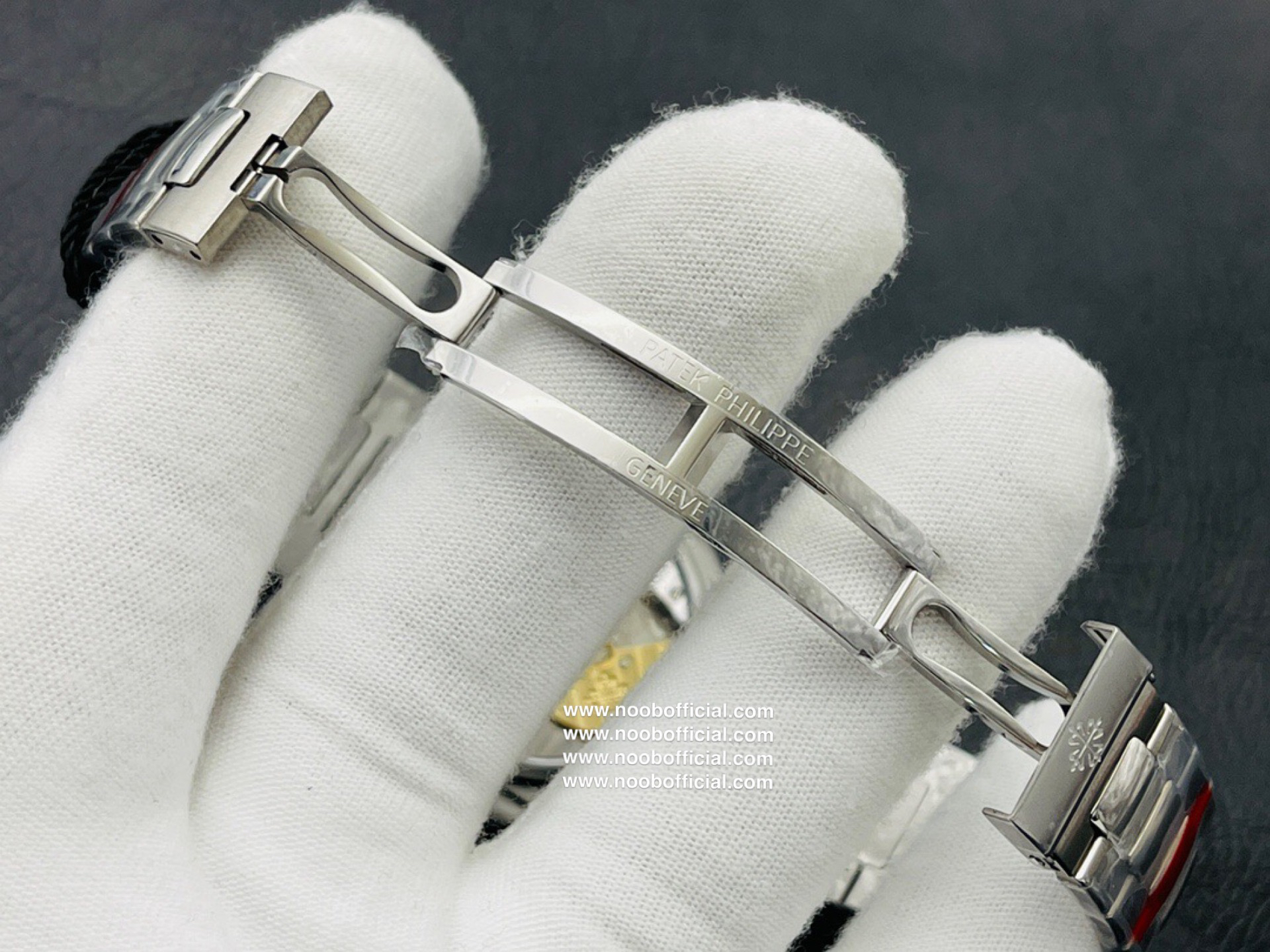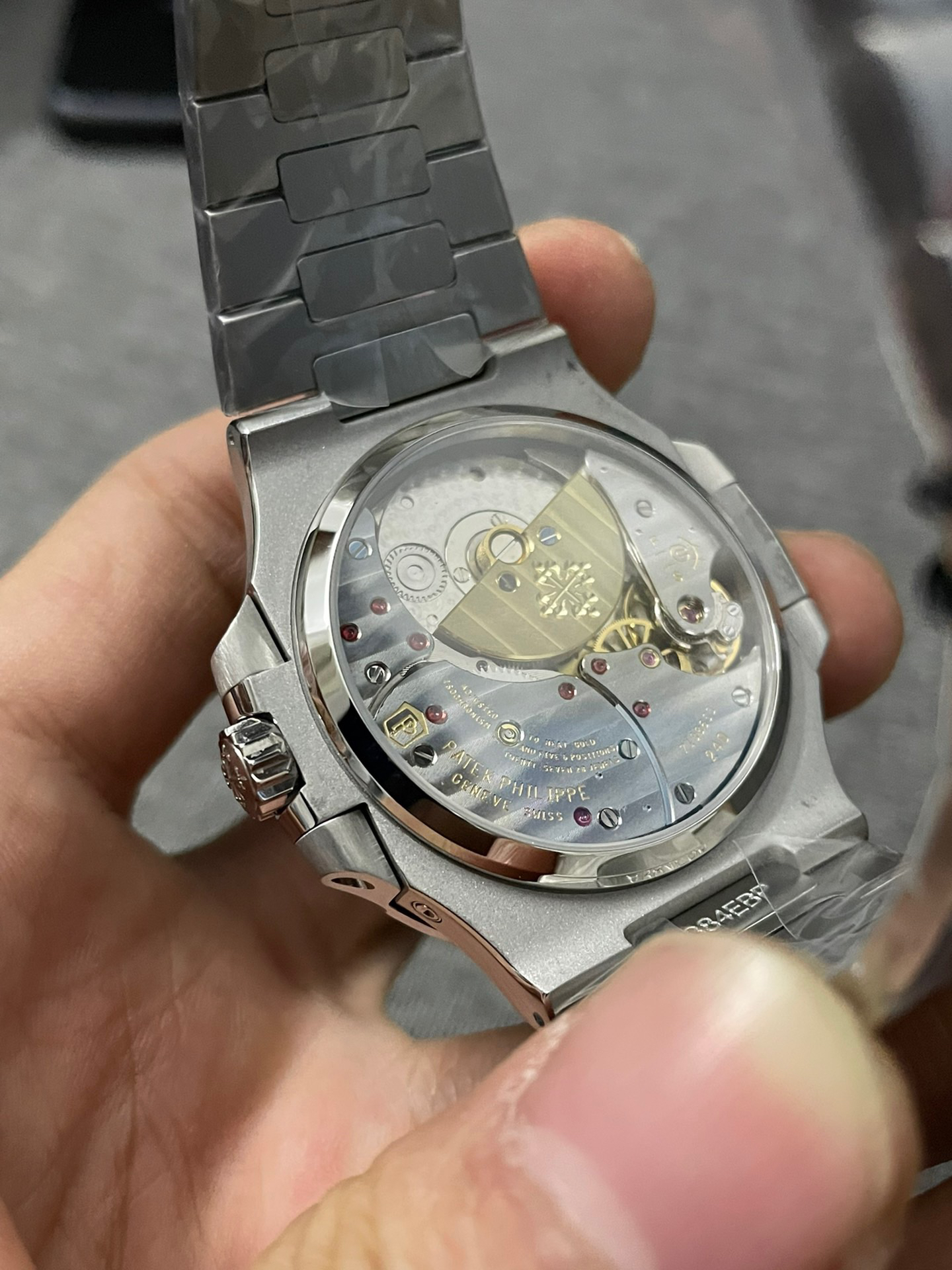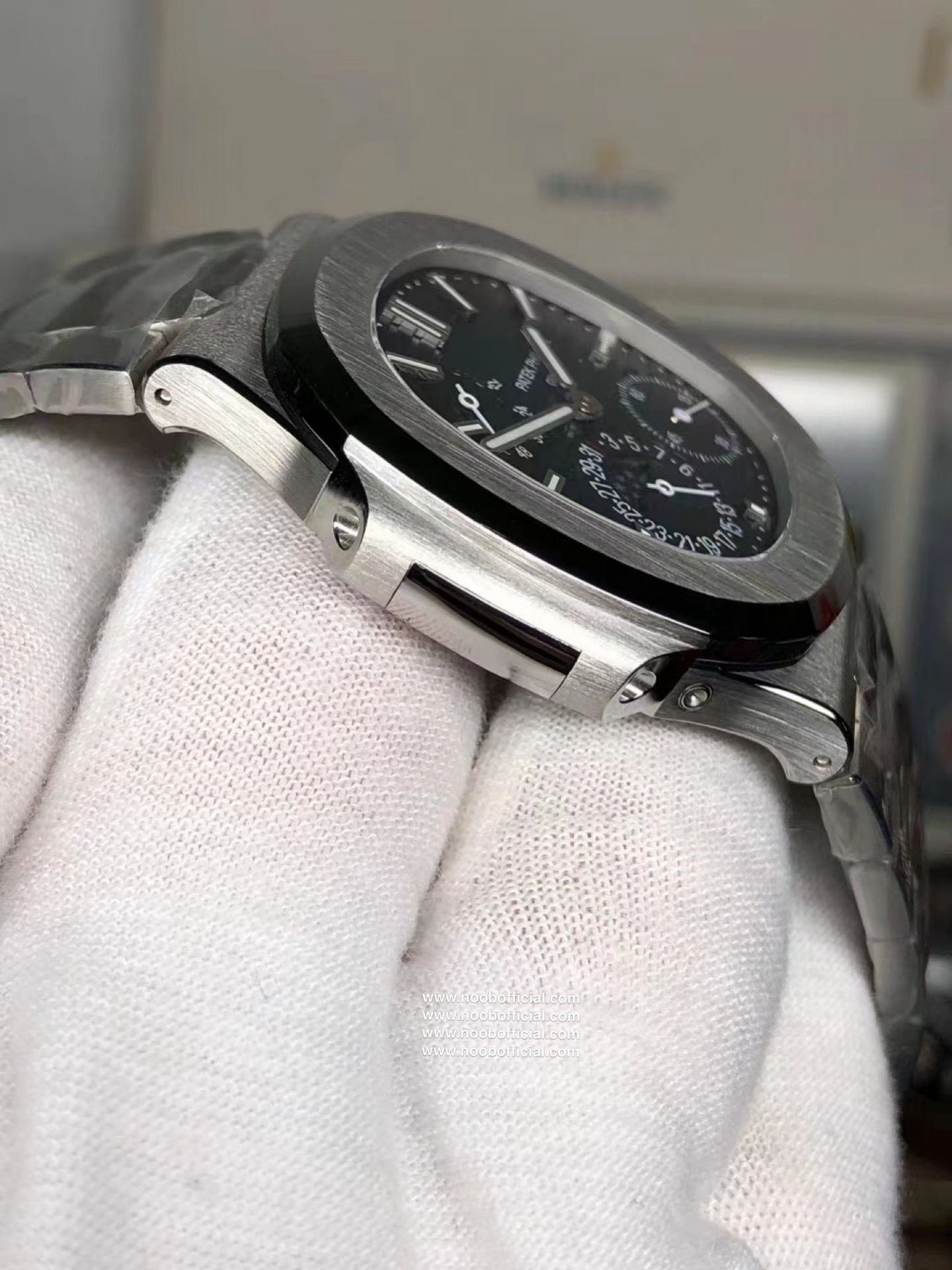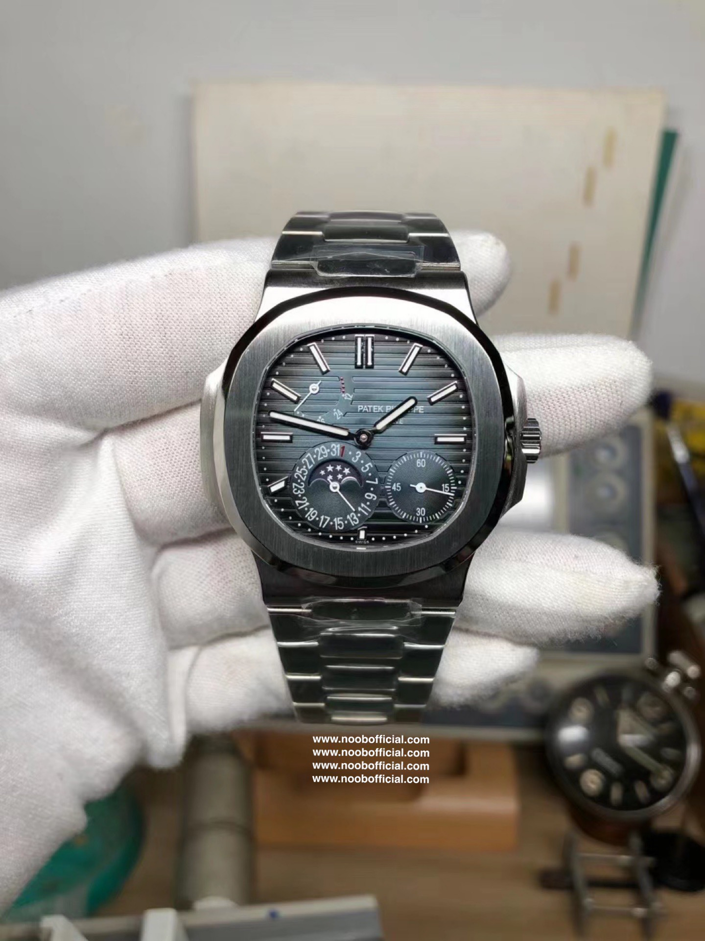 Noob潜心三年 真"芯"之作!百达翡丽PP5712GR"钢王之王"巅峰出道了!这是真正具有里程碑意义的超级一体机芯Cal.240 PS IRM C LU。全机芯零件数265个,平面游丝,21600每小时振荡次数 Gyromax带调节砝码的摆轮,稳定无误差。(不同于市面上现有的假机芯盖甲板,假珍珠陀) 全新修正的不锈钢表带,铰链部分根据真正的百达翡丽鹦鹉螺不锈钢表带拆解开发,和正品一致的贴合效果,逆袭市面上所有副本,铰链开合角度和正品一致,锁毕声音和正品相同。而PPF厂独家的"蓝魅"面无限接近接近原版,更是傲视群雄!