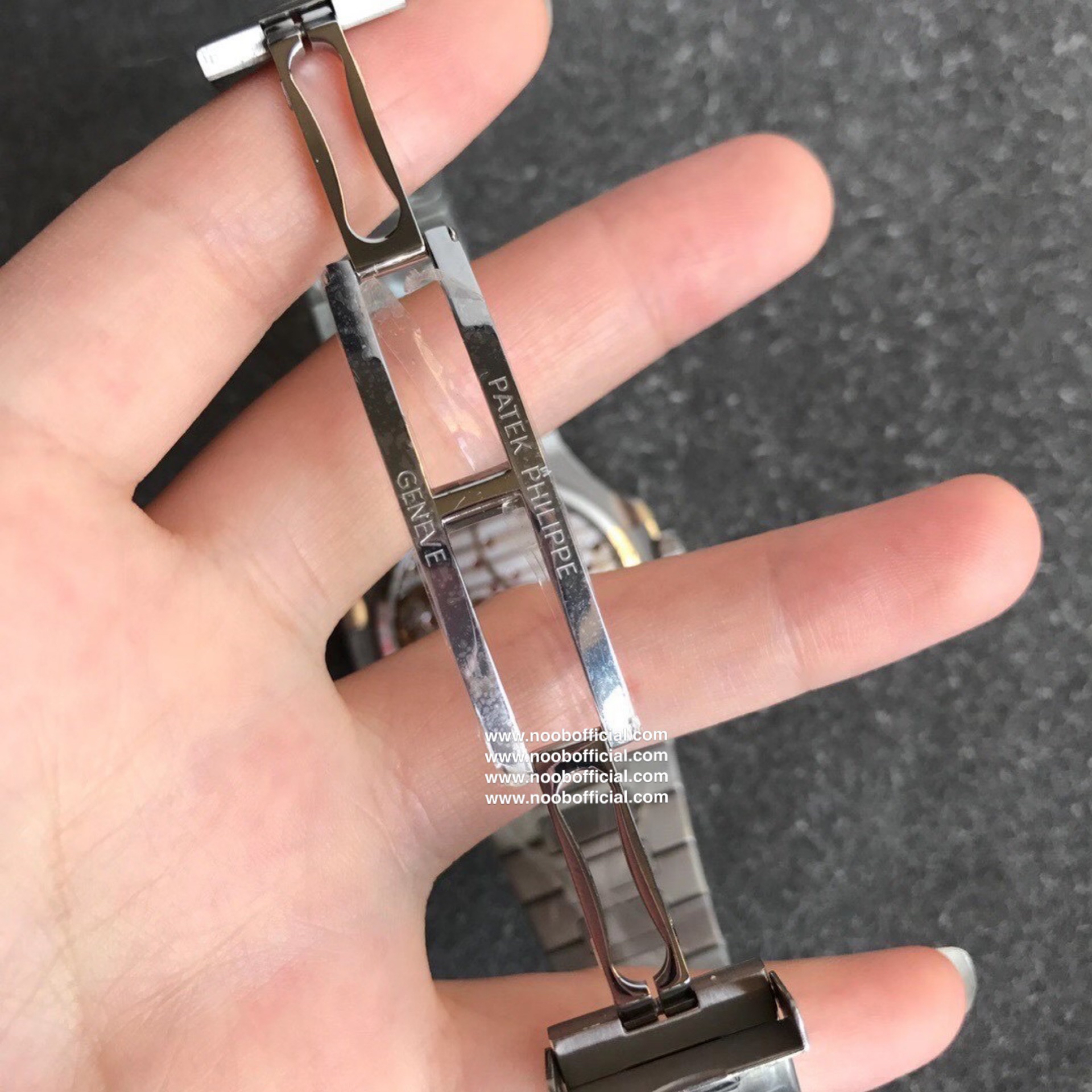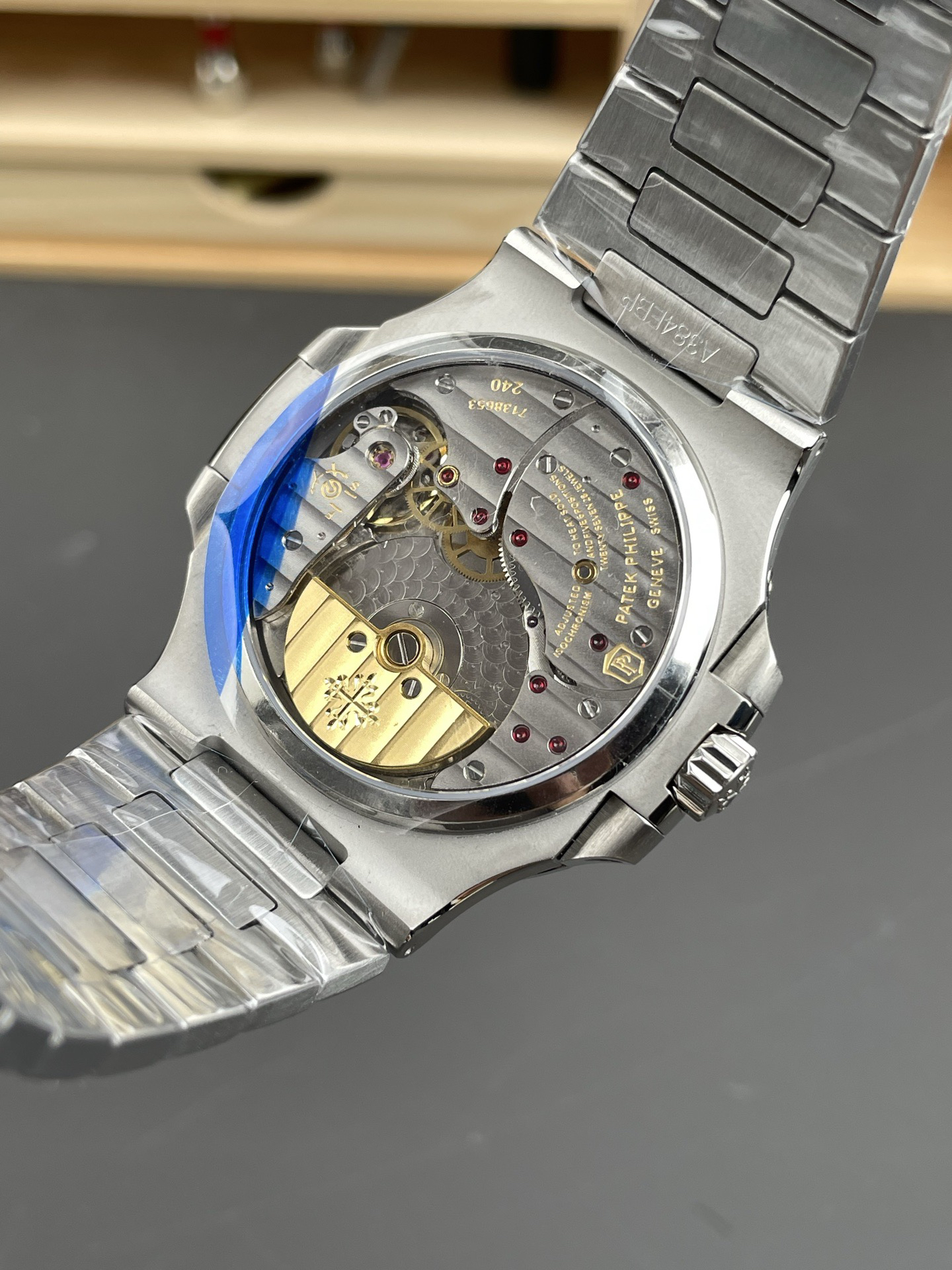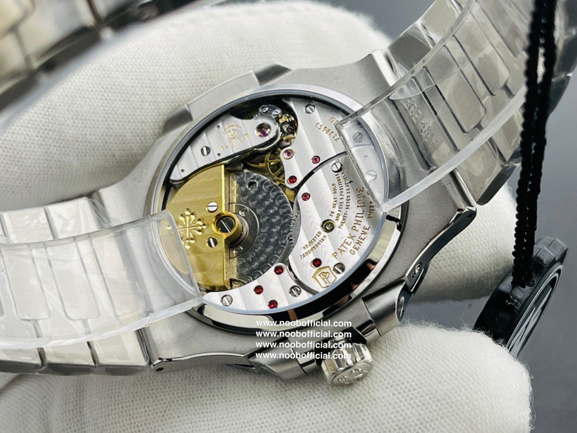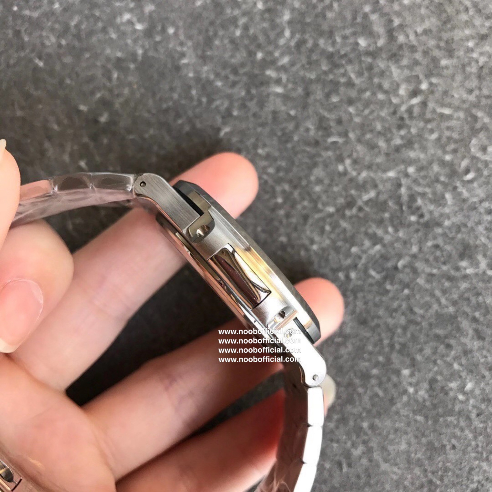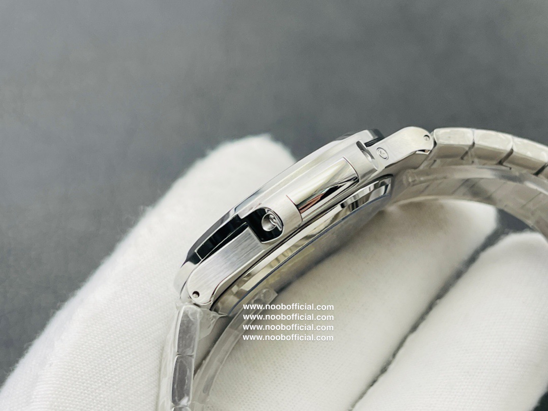 Noob潜心三年 真"芯"之作!百达翡丽PP5712GR"钢王之王"巅峰出道了!这是真正具有里程碑意义的超级一体机芯Cal.240 PS IRM C LU。全机芯零件数265个,平面游丝,21600每小时振荡次数 Gyromax带调节砝码的摆轮,稳定无误差。(不同于市面上现有的假机芯盖甲板,假珍珠陀) 全新修正的不锈钢表带,铰链部分根据真正的百达翡丽鹦鹉螺不锈钢表带拆解开发,和正品一致的贴合效果,逆袭市面上所有副本,铰链开合角度和正品一致,锁毕声音和正品相同。而PPF厂独家的"蓝魅"面无限接近接近原版,更是傲视群雄!