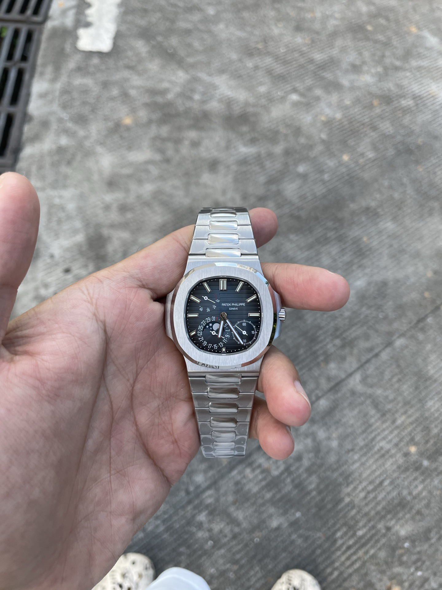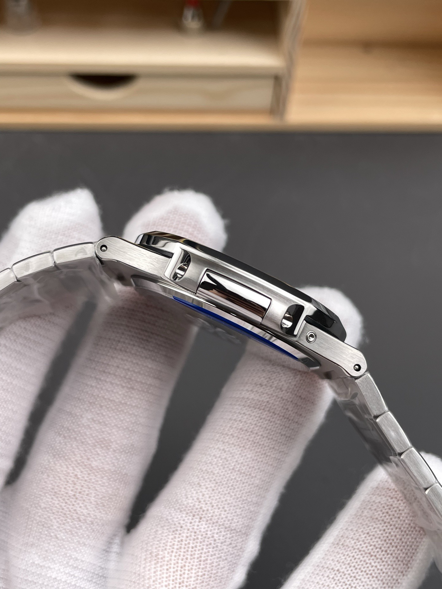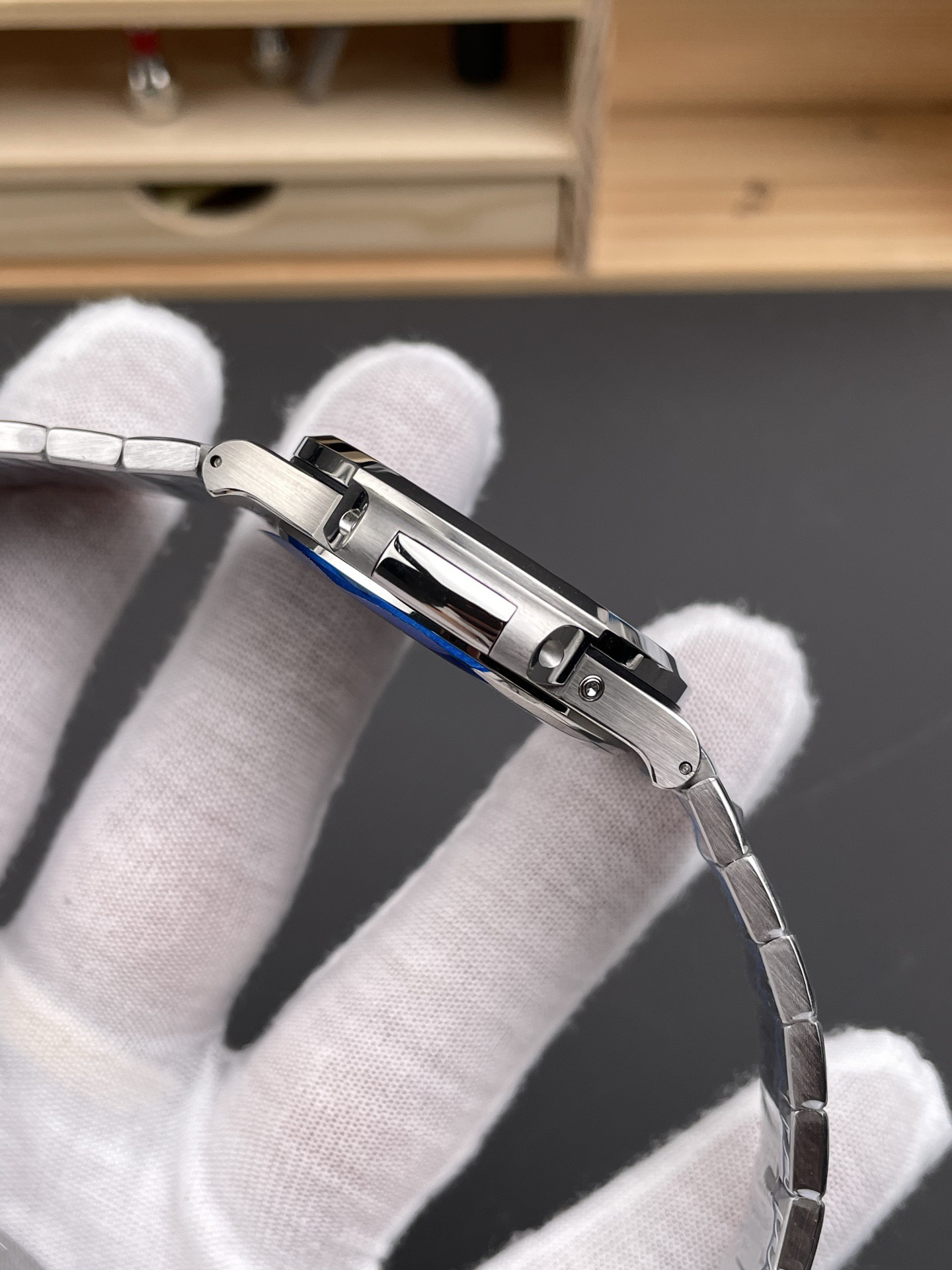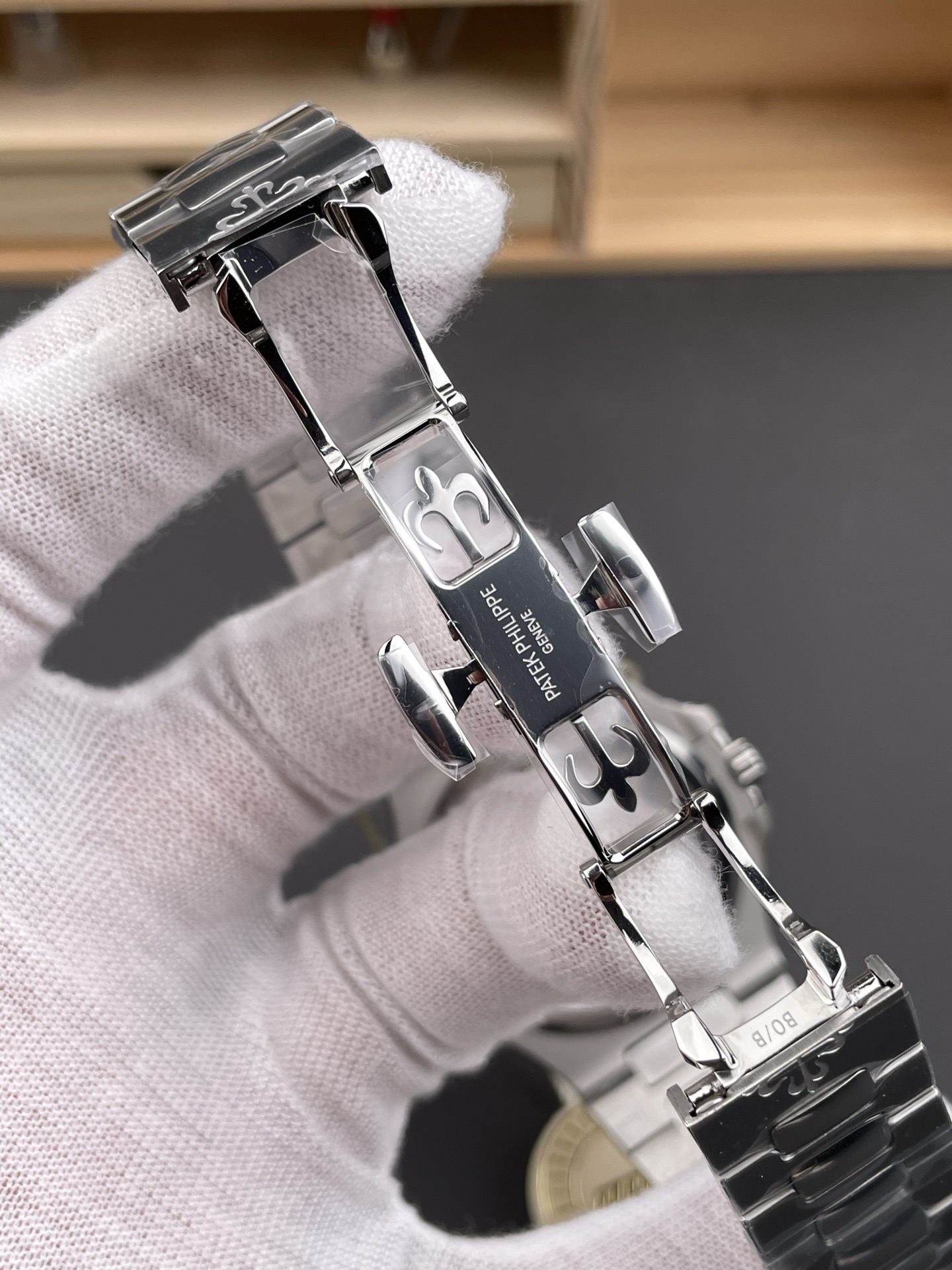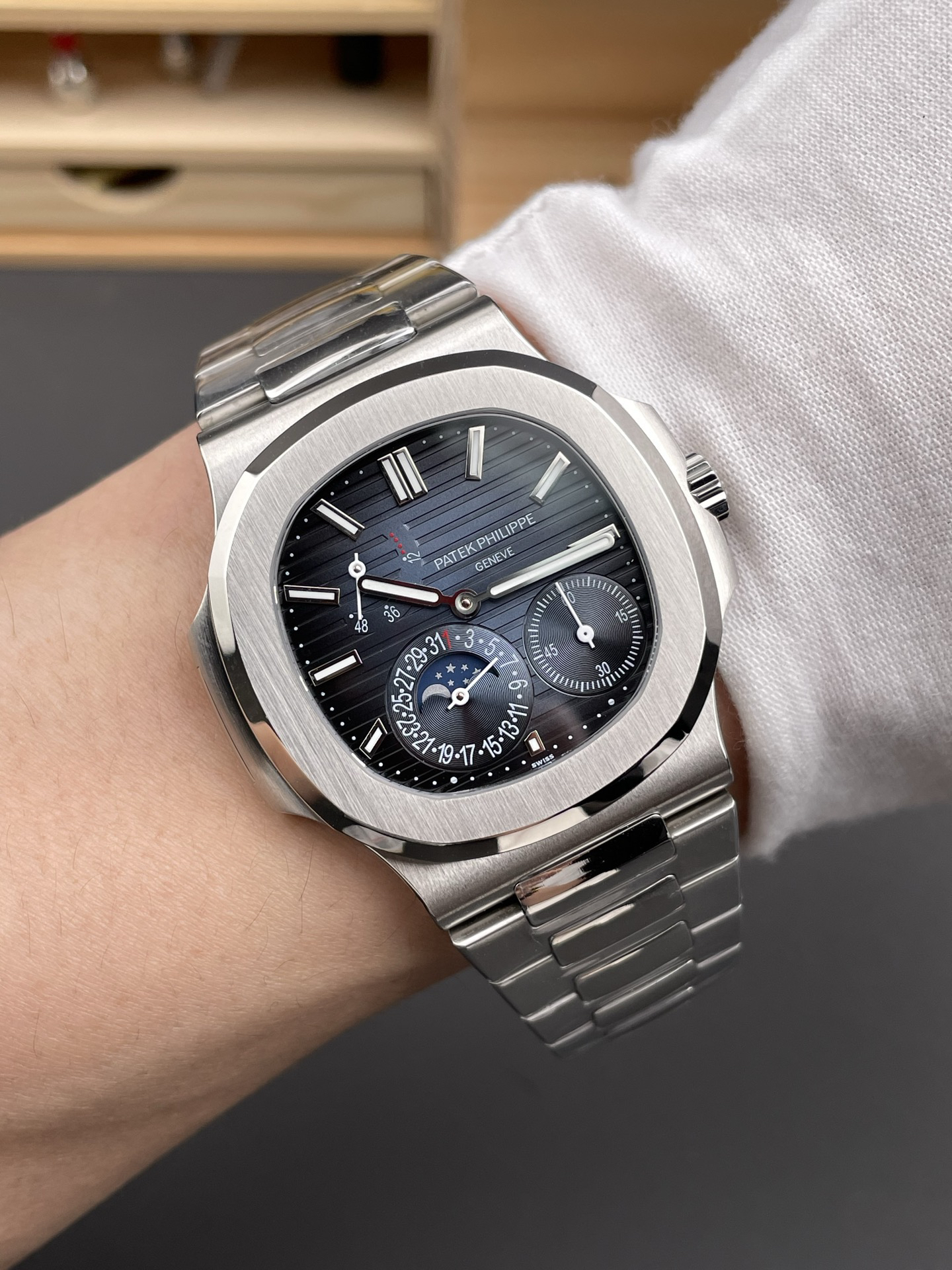 Noob潜心三年 真"芯"之作!百达翡丽PP5712GR"钢王之王"巅峰出道了!这是真正具有里程碑意义的超级一体机芯Cal.240 PS IRM C LU。全机芯零件数265个,平面游丝,21600每小时振荡次数 Gyromax带调节砝码的摆轮,稳定无误差。(不同于市面上现有的假机芯盖甲板,假珍珠陀) 全新修正的不锈钢表带,铰链部分根据真正的百达翡丽鹦鹉螺不锈钢表带拆解开发,和正品一致的贴合效果,逆袭市面上所有副本,铰链开合角度和正品一致,锁毕声音和正品相同。而PPF厂独家的"蓝魅"面无限接近接近原版,更是傲视群雄!