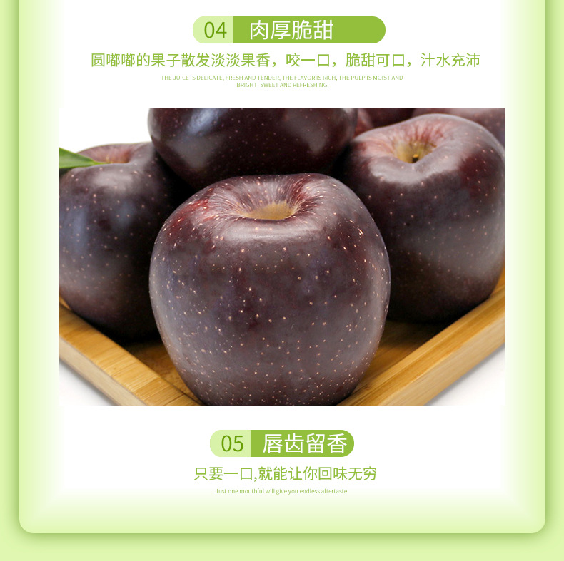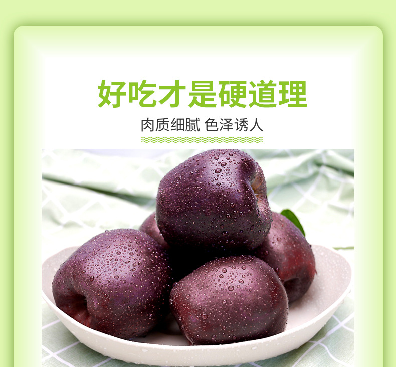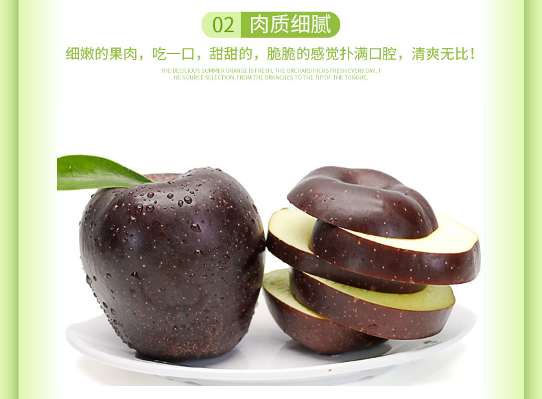 黑卡苹果产自昭通高原地区,因昼夜温差大果子颜色表现为黑红色,外表自然形成的一层果粉,让果子颜色看起来深暗接近黑色,果子采摘入库经过机器自动清洗,把果粉清洗掉后外表颜色有深有浅越放颜色越深趋近于紫黑色,果肉黄白色,肉质脆(会慢慢变粉)