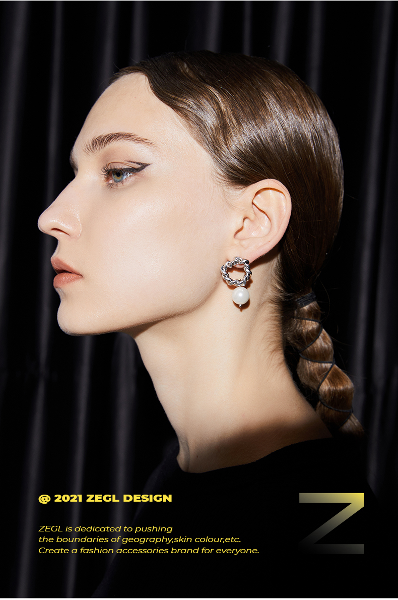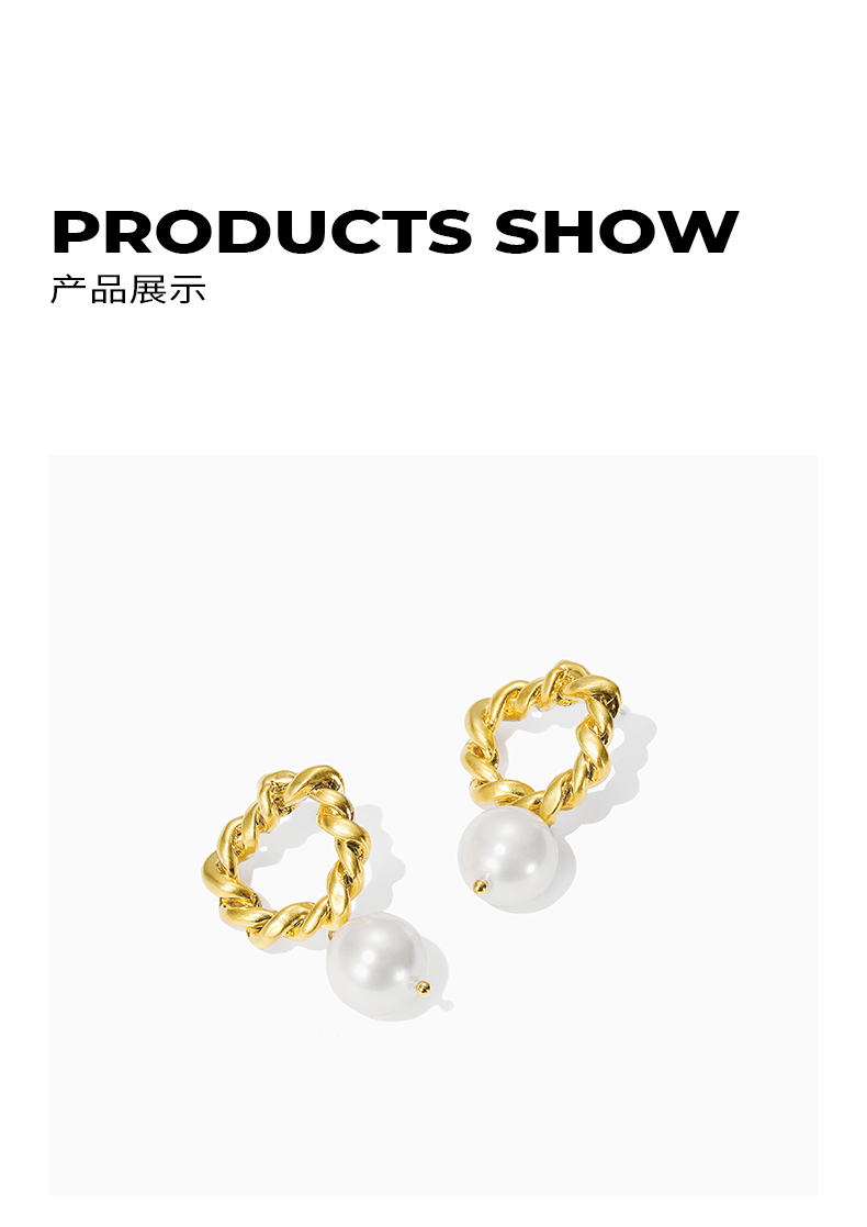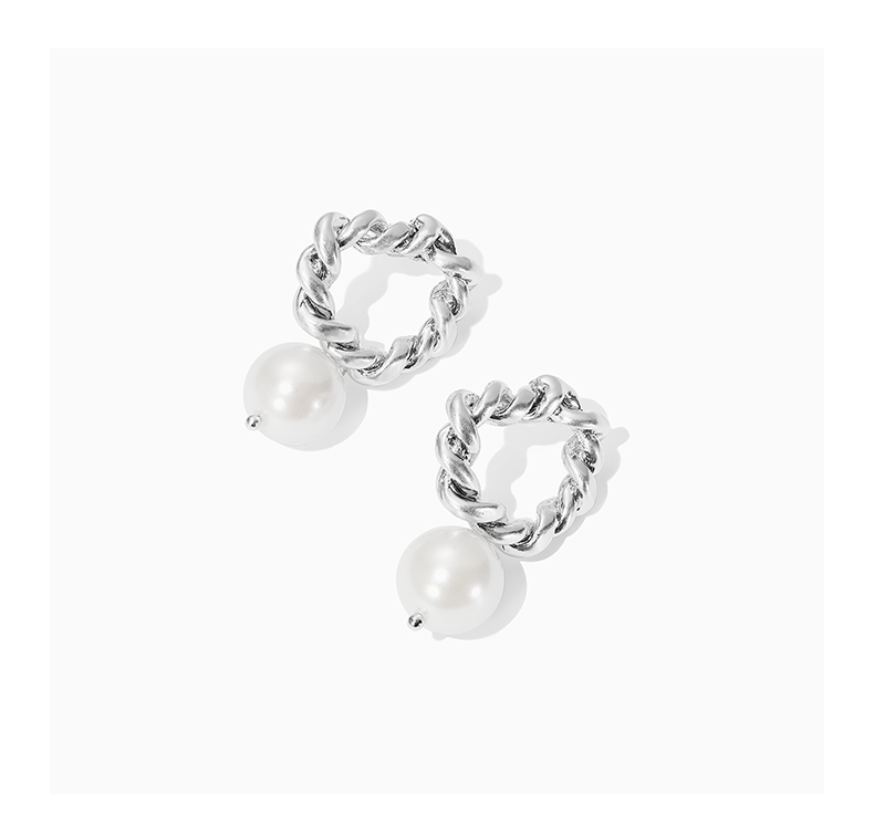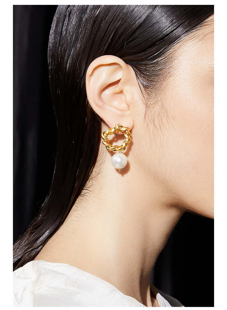 ZEGL复古素圈麻花人工珍珠耳环女小众设计感耳钉韩国气质网红耳饰