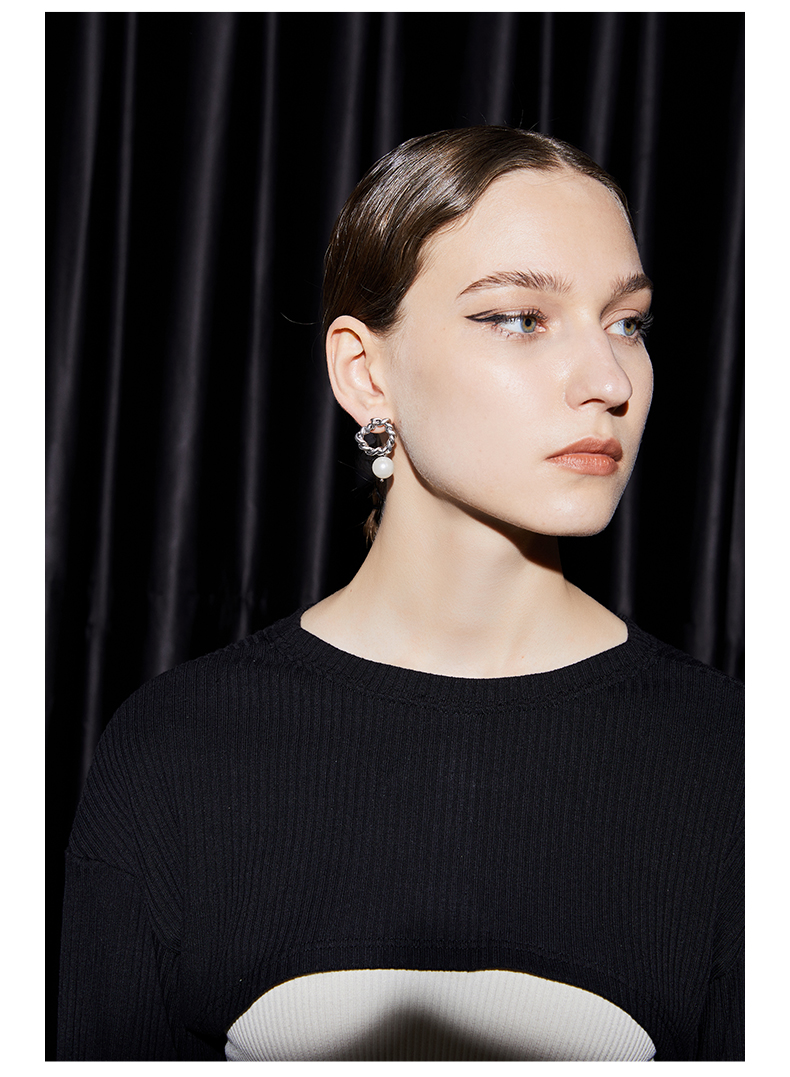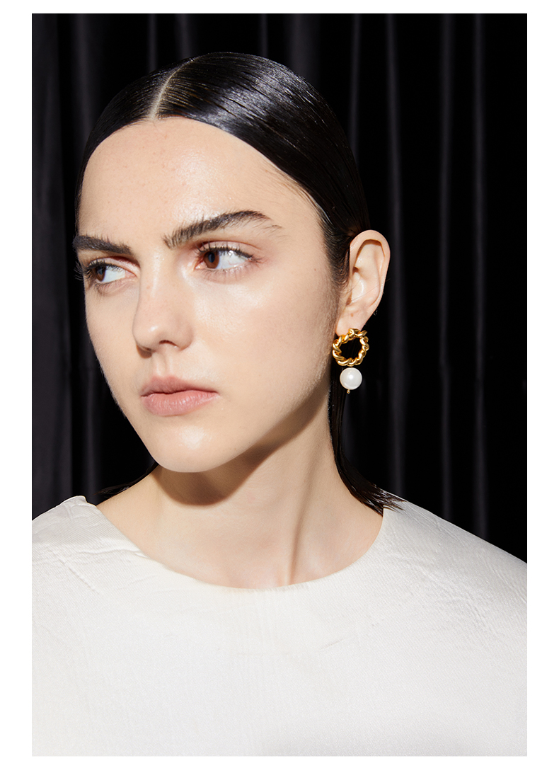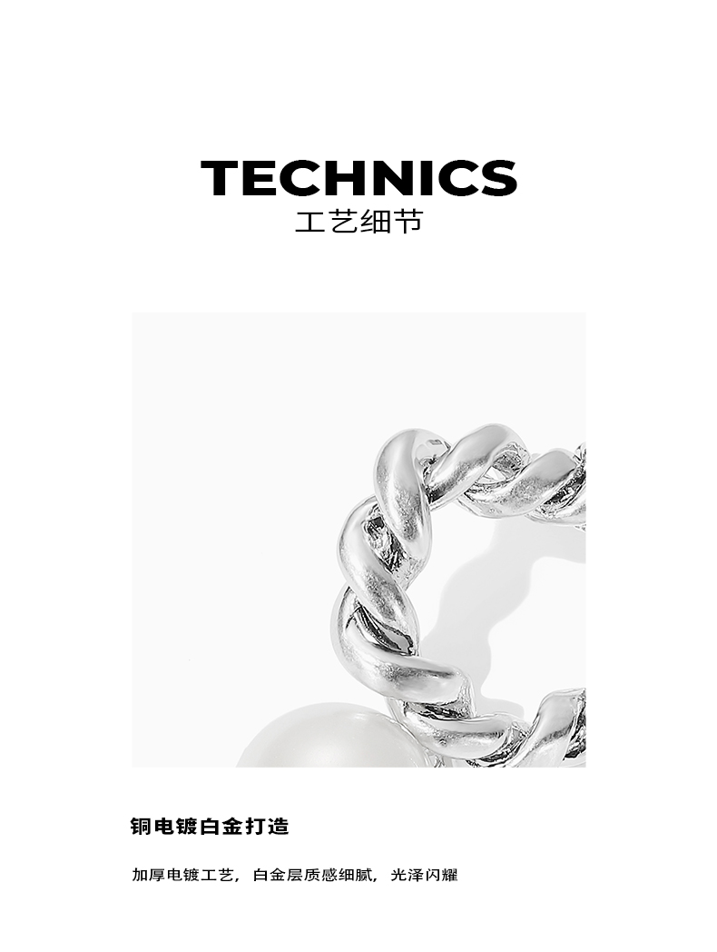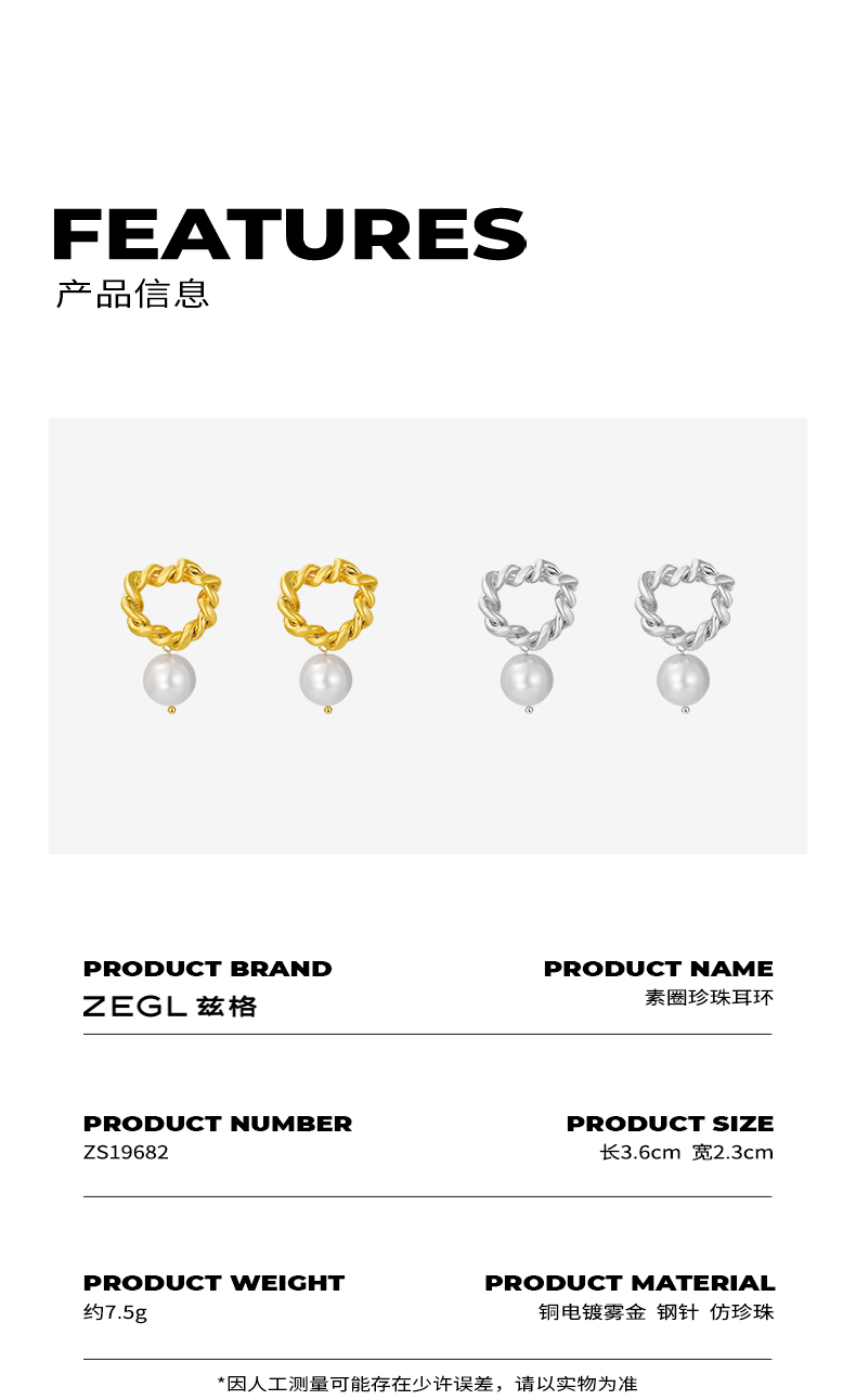 ZEGL复古素圈麻花人工珍珠耳环女小众设计感耳钉韩国气质网红耳饰