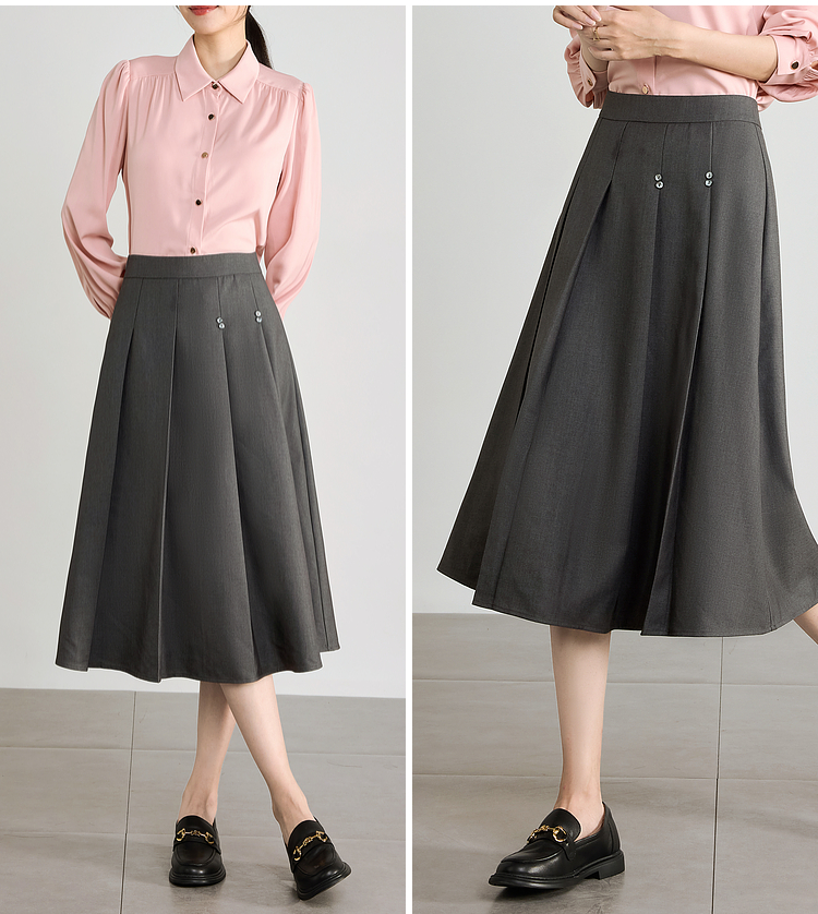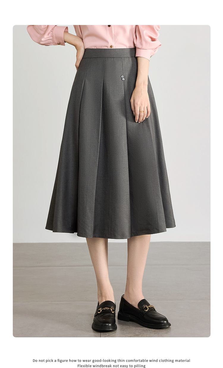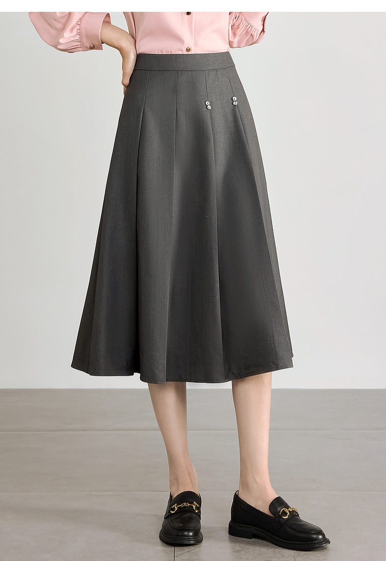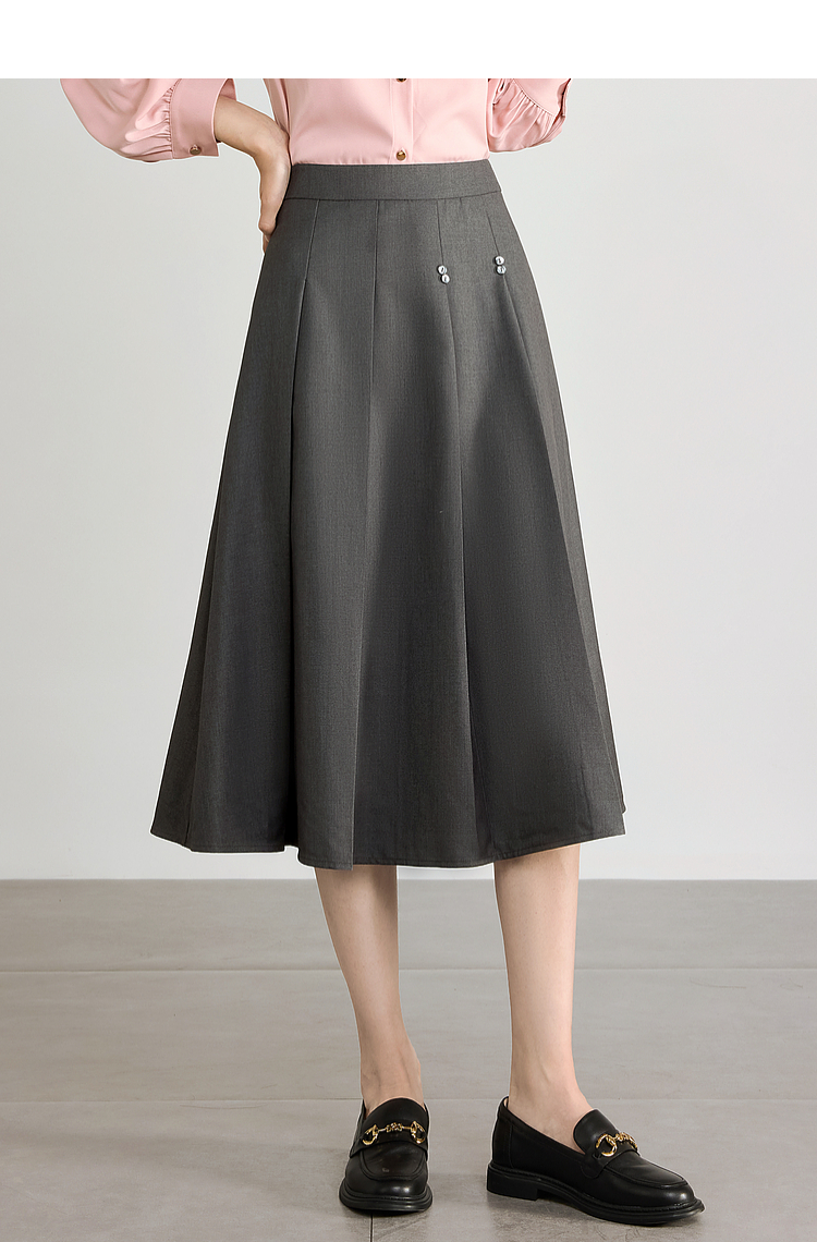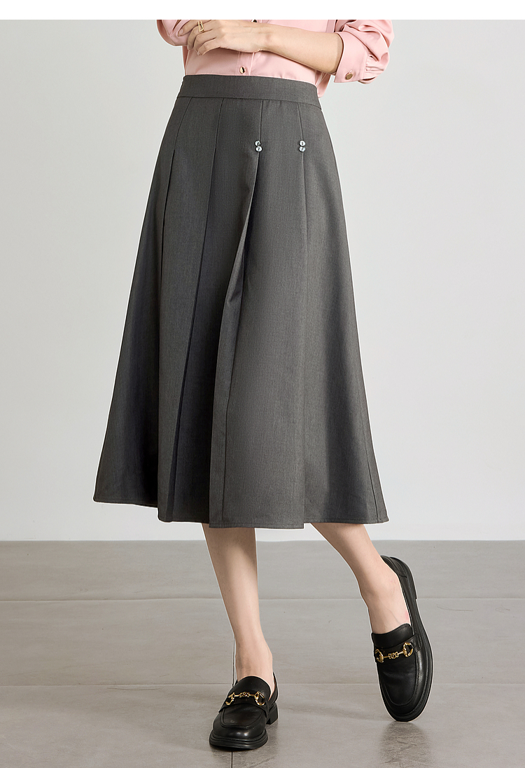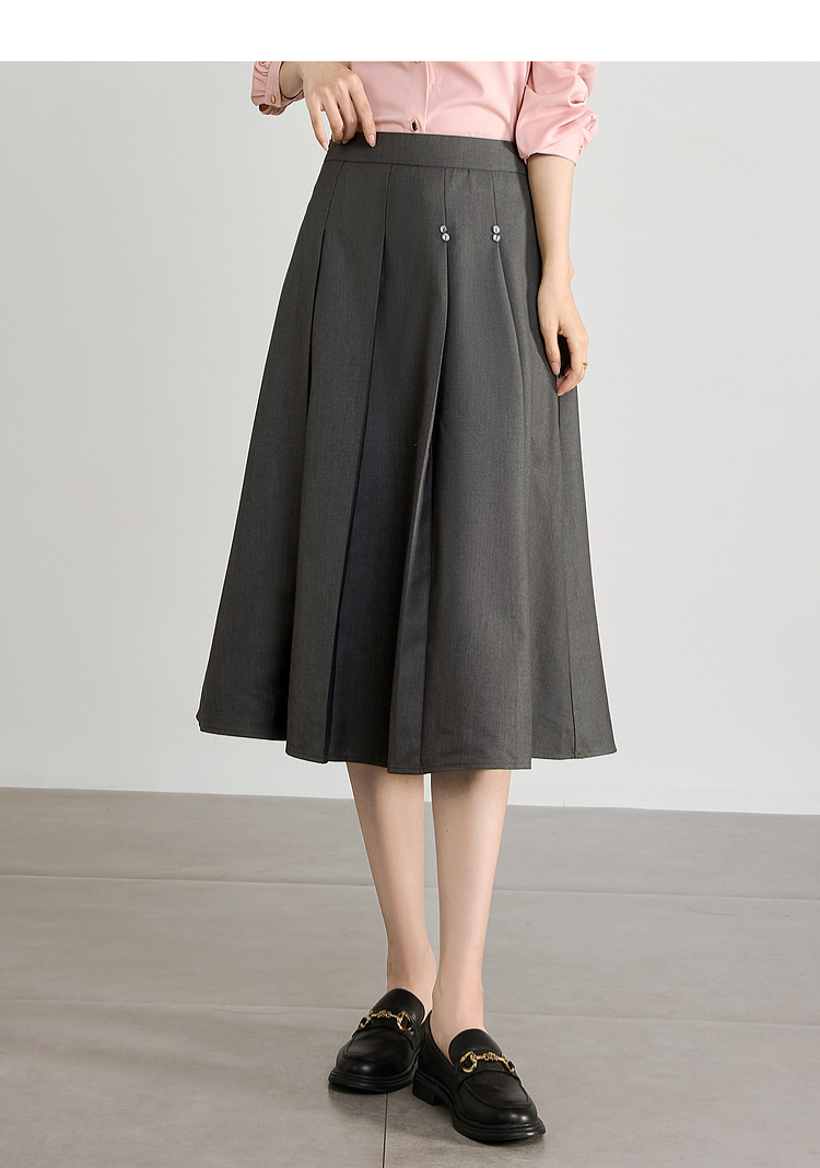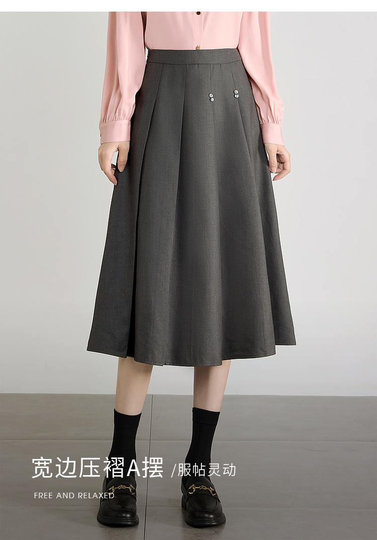 【五折购】熙世界灰色百褶a字半身裙2025秋季新款西装裙子中长款显瘦伞裙