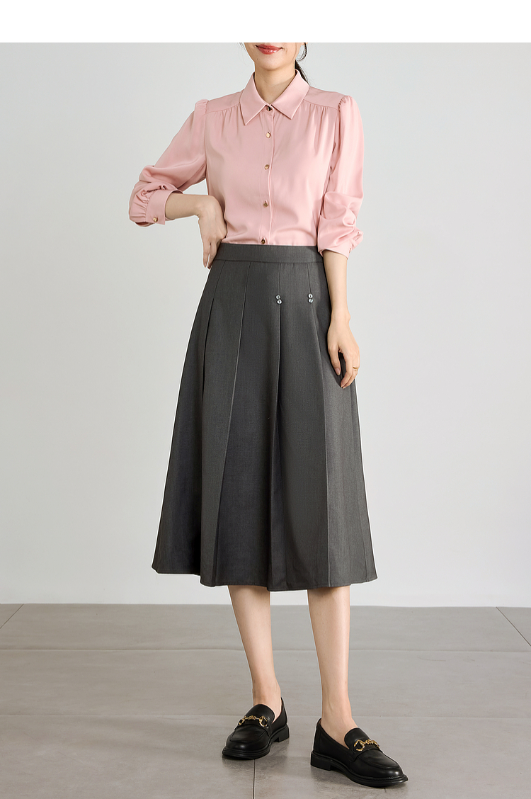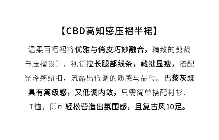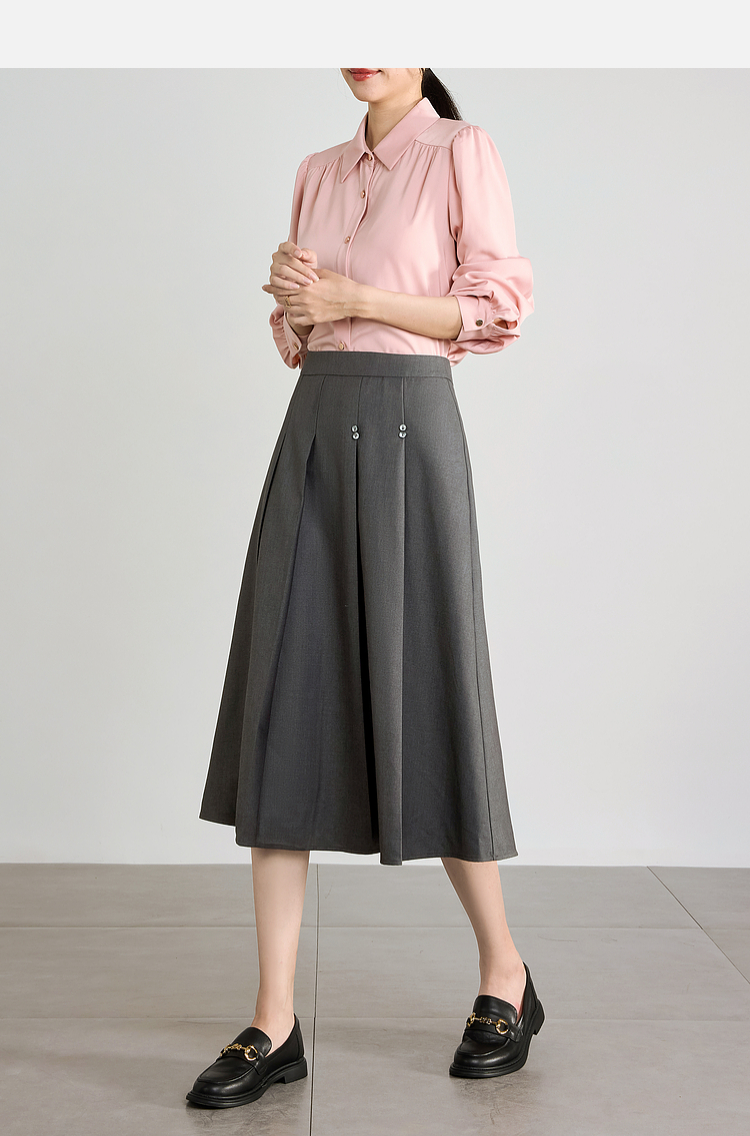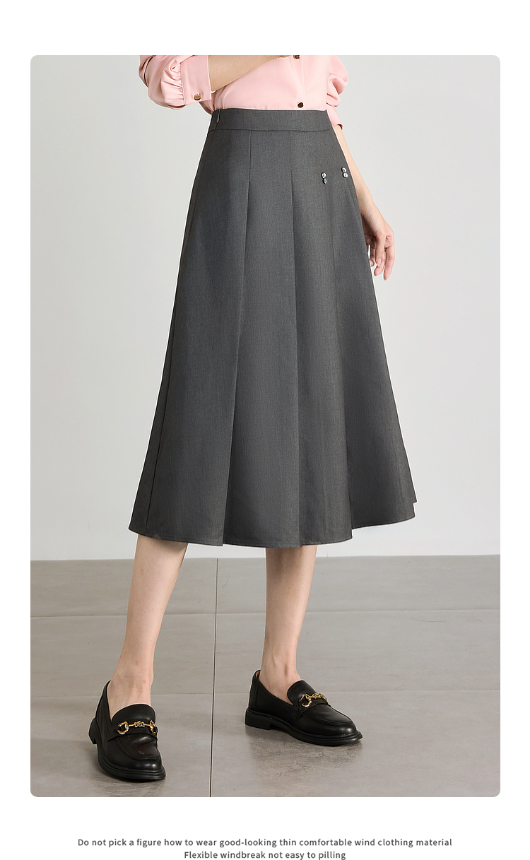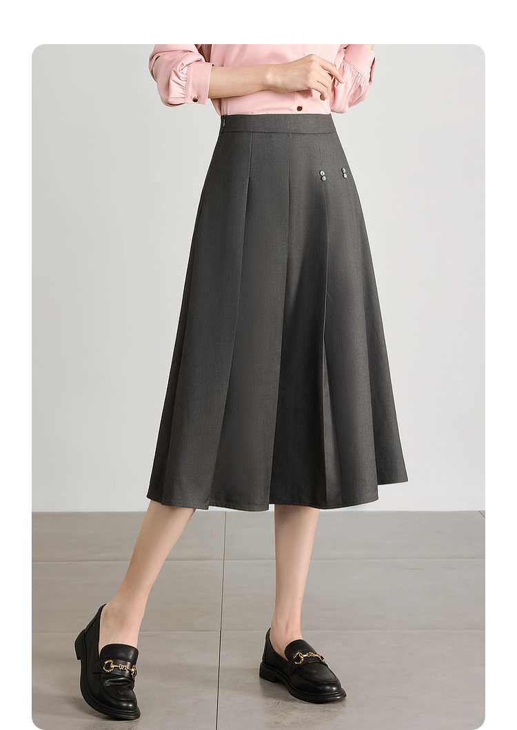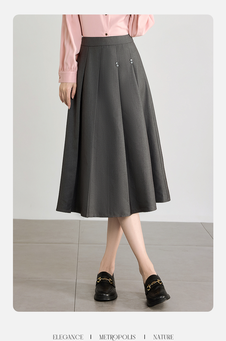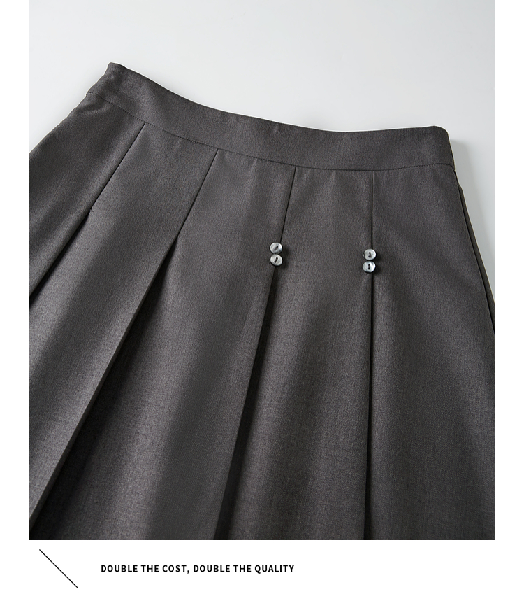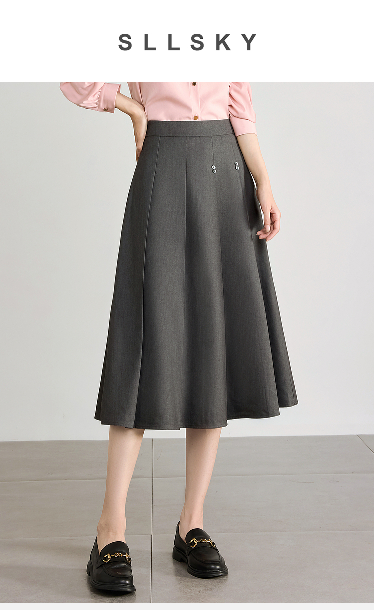 【五折购】熙世界灰色百褶a字半身裙2025秋季新款西装裙子中长款显瘦伞裙