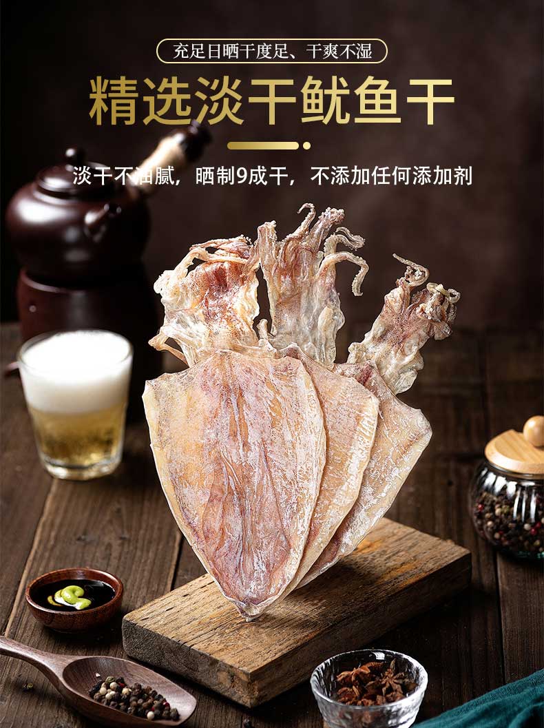 港岛姑娘 鱿鱼干人工晒干手撕鱿鱼干无盐淡干烧烤炖汤 0.5斤/约4-5个