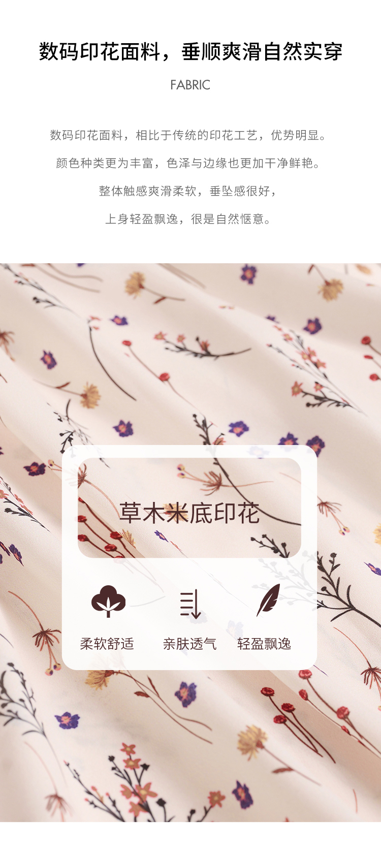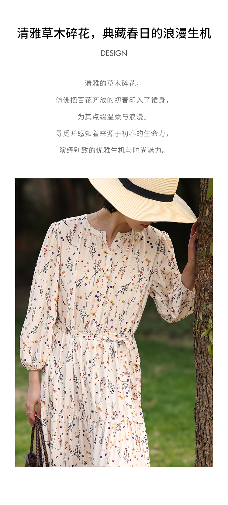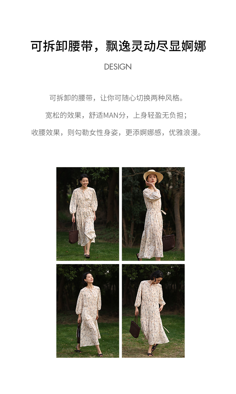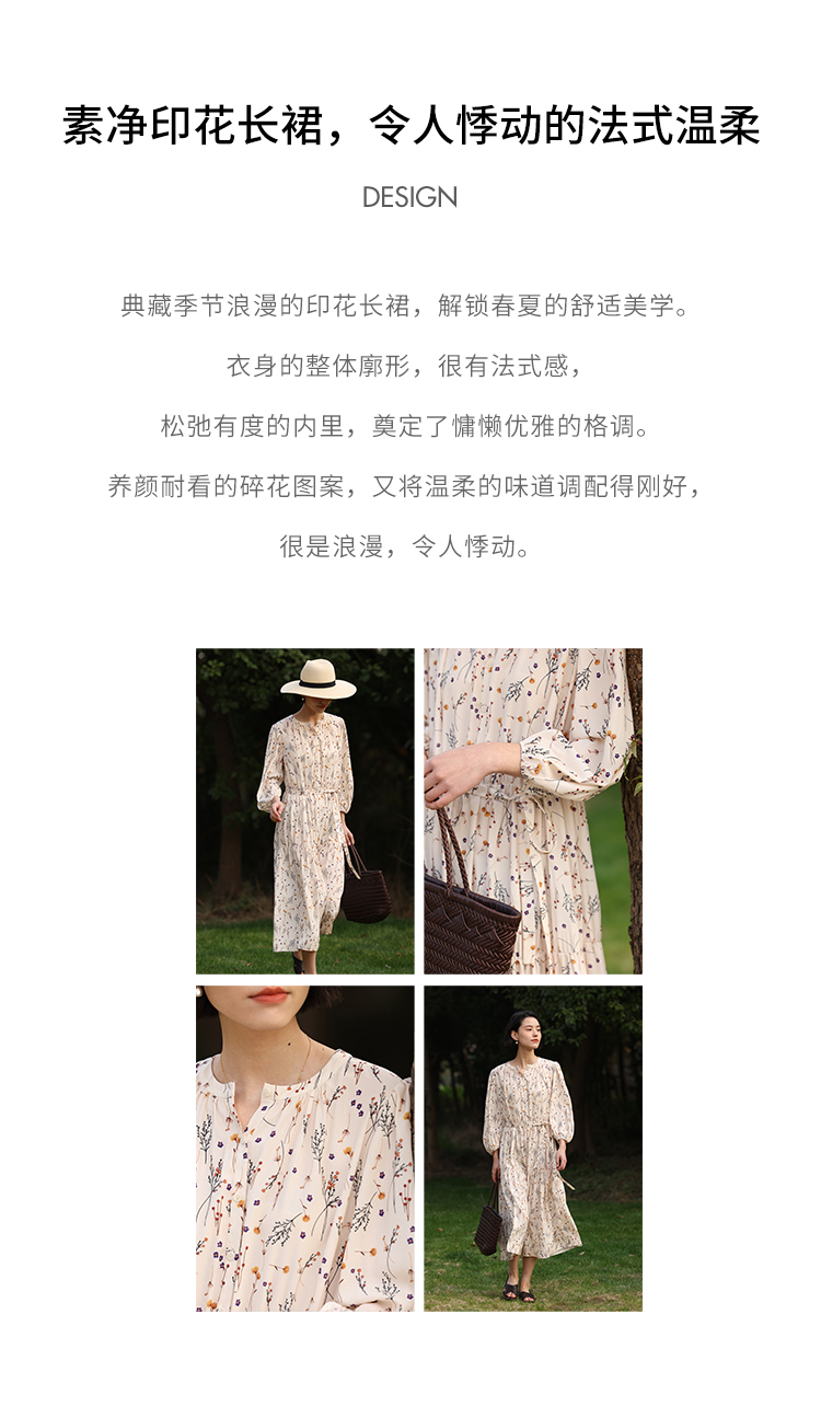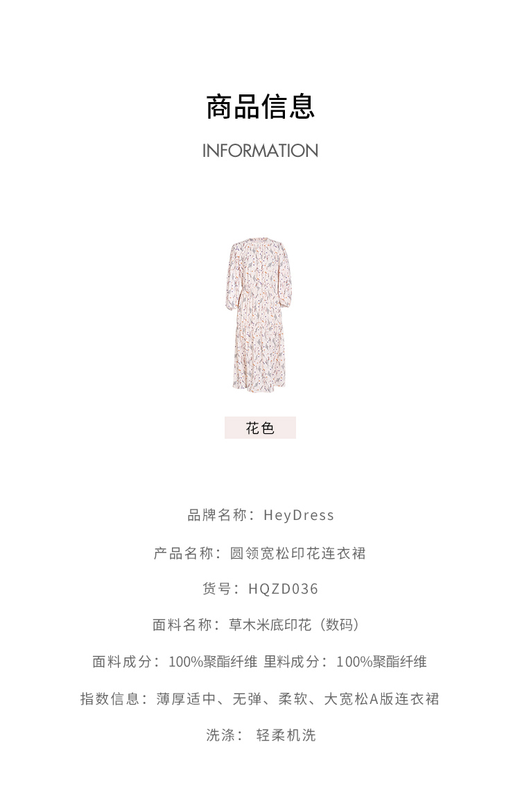 HeyDress法式碎花裙女春夏圆领宽松收腰显瘦印花裙温柔度假风裙子