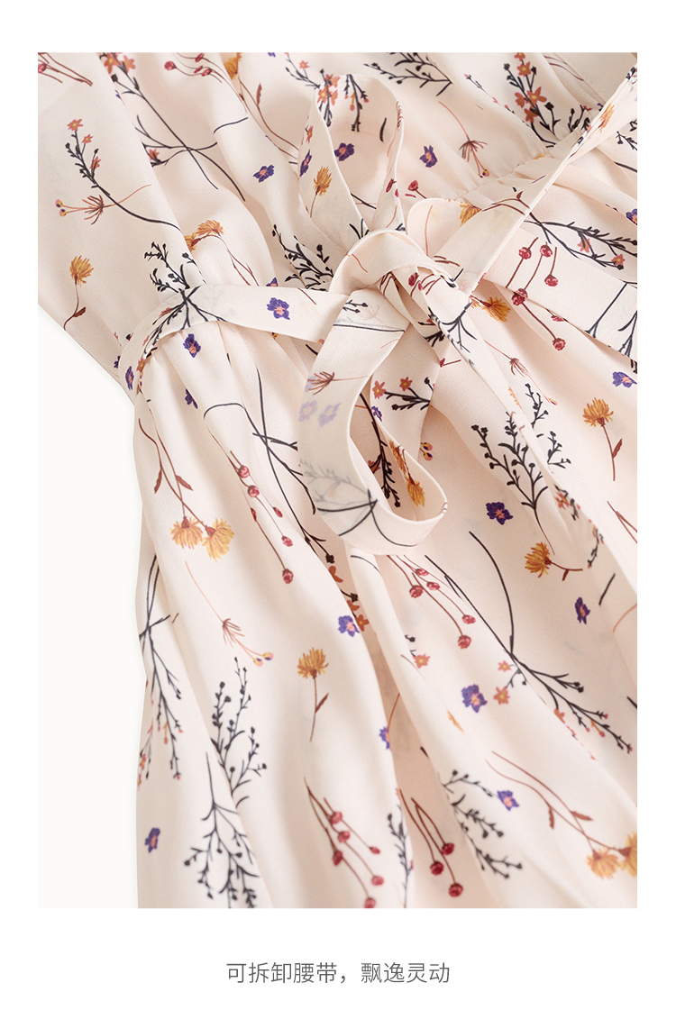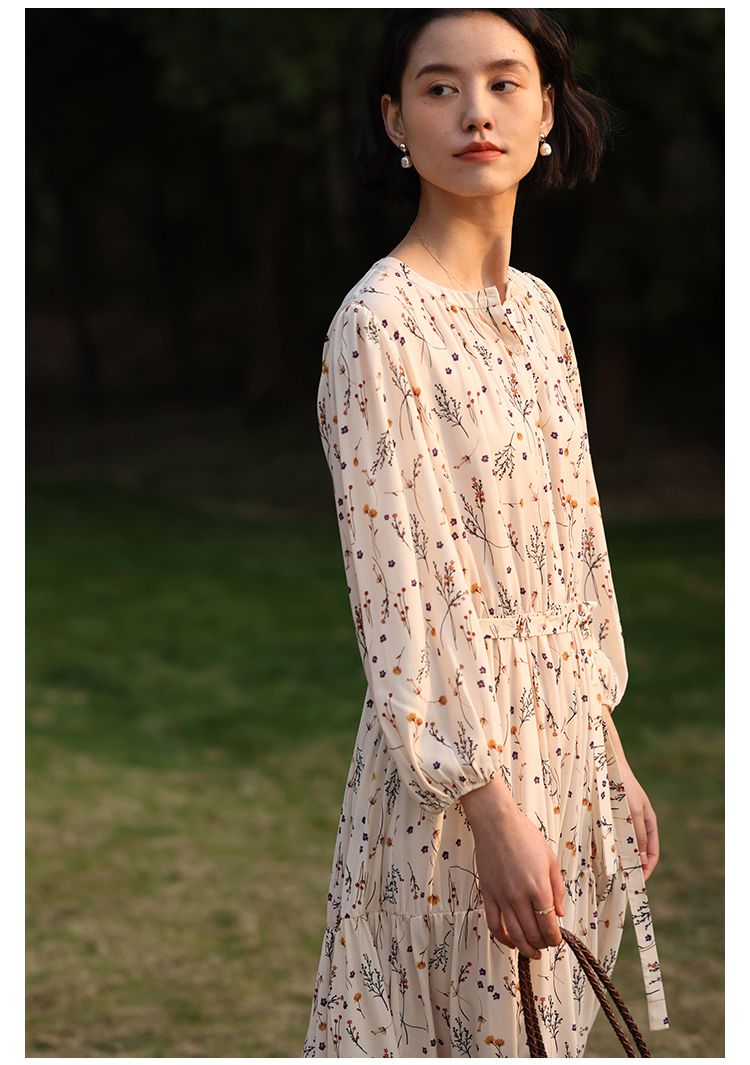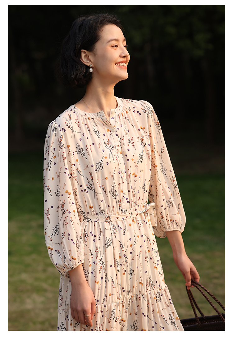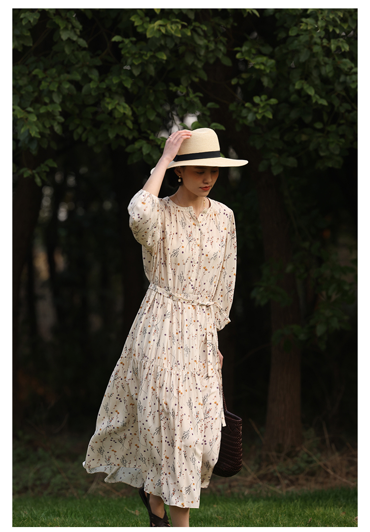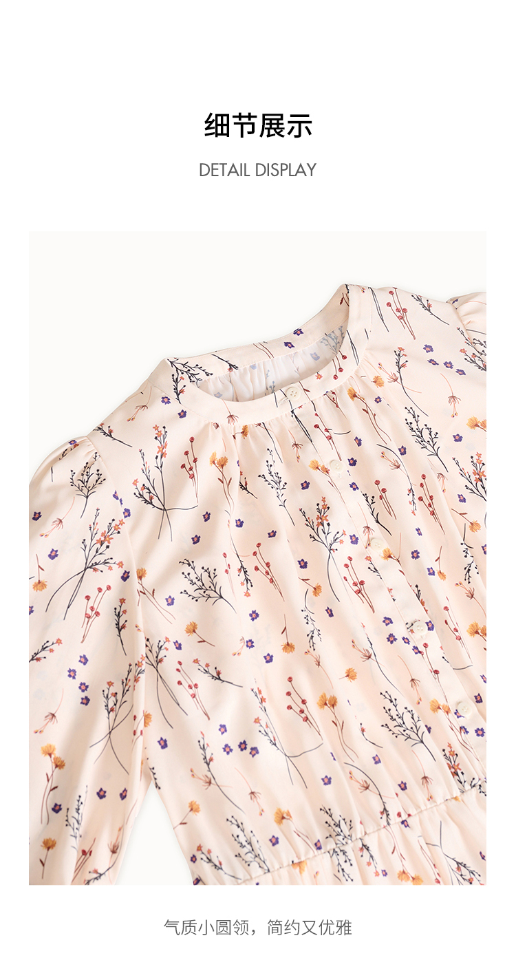 HeyDress法式碎花裙女春夏圆领宽松收腰显瘦印花裙温柔度假风裙子
