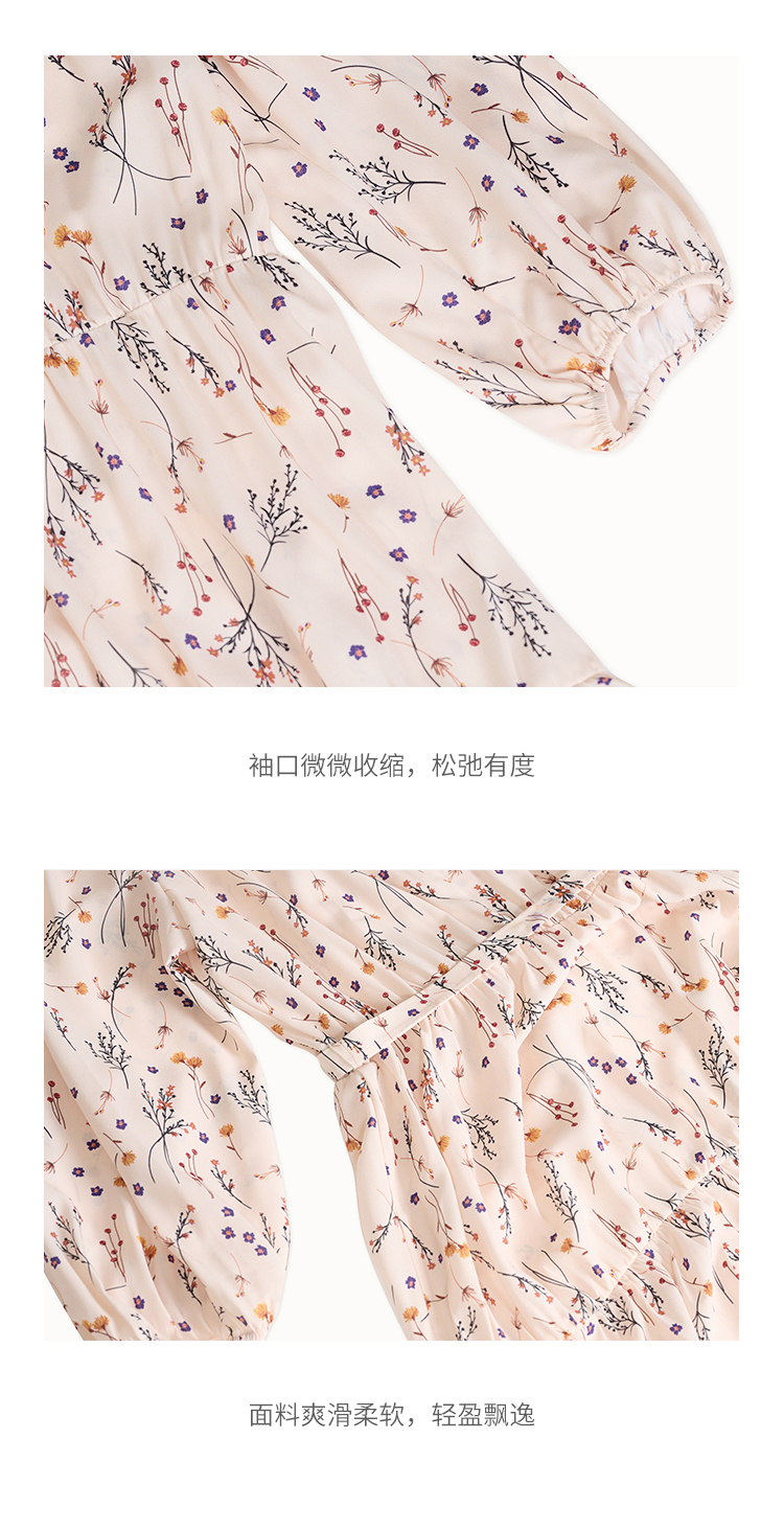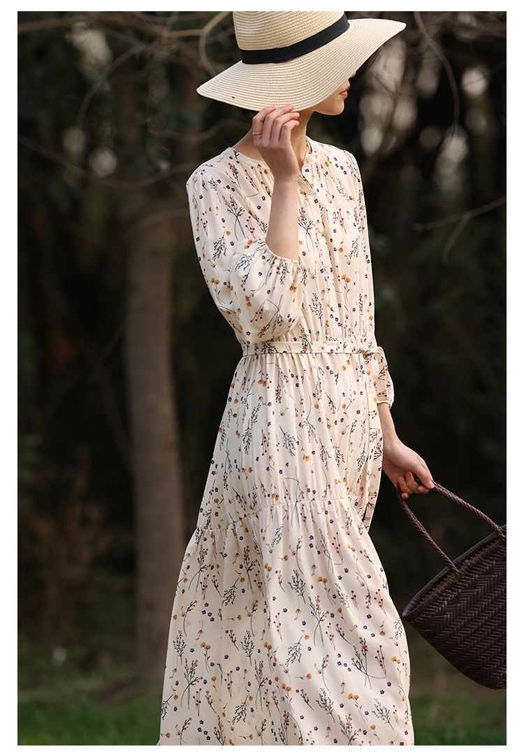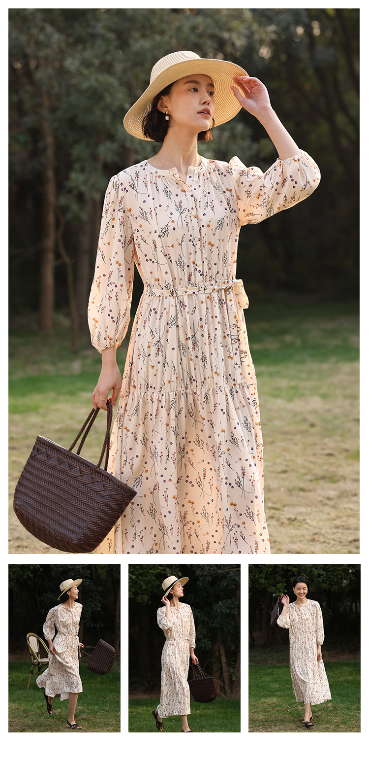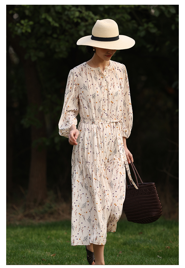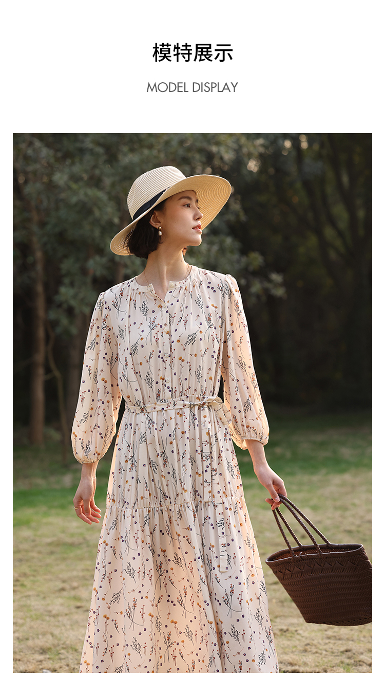 HeyDress法式碎花裙女春夏圆领宽松收腰显瘦印花裙温柔度假风裙子