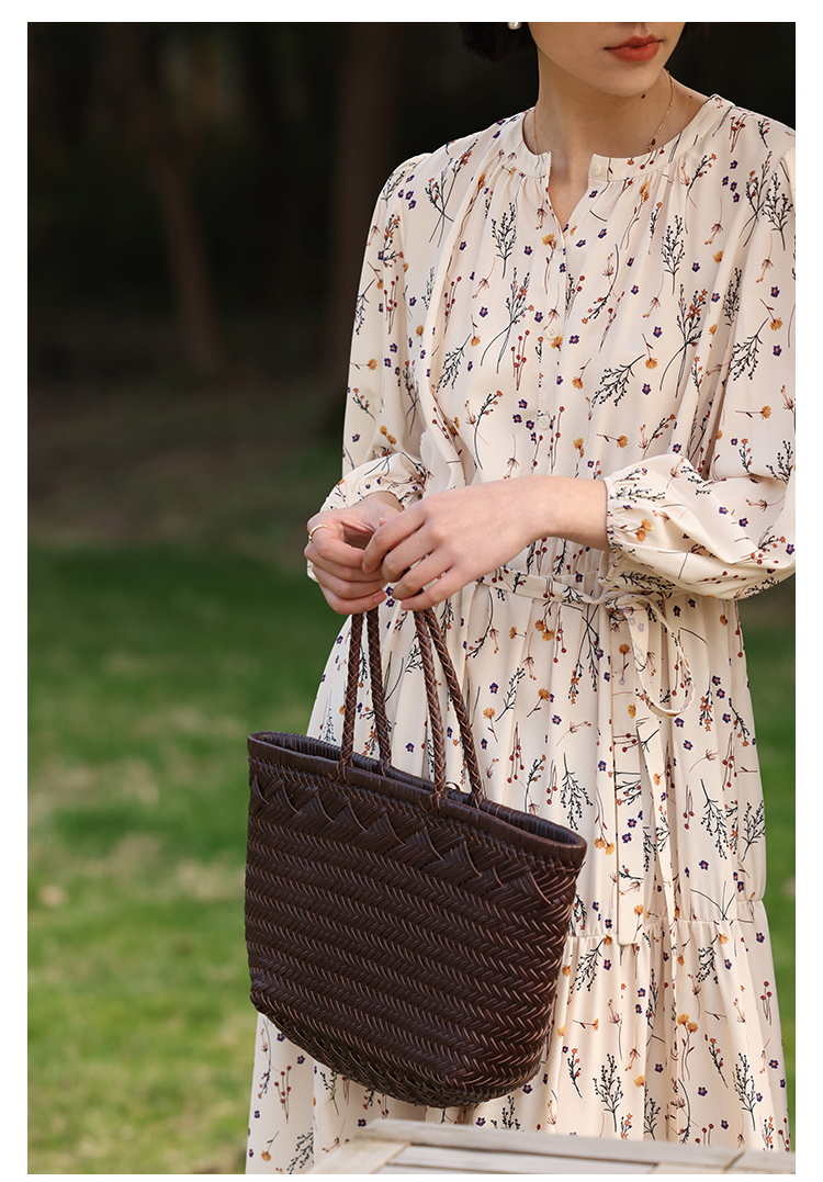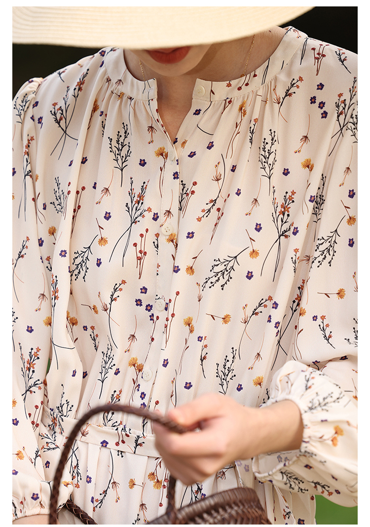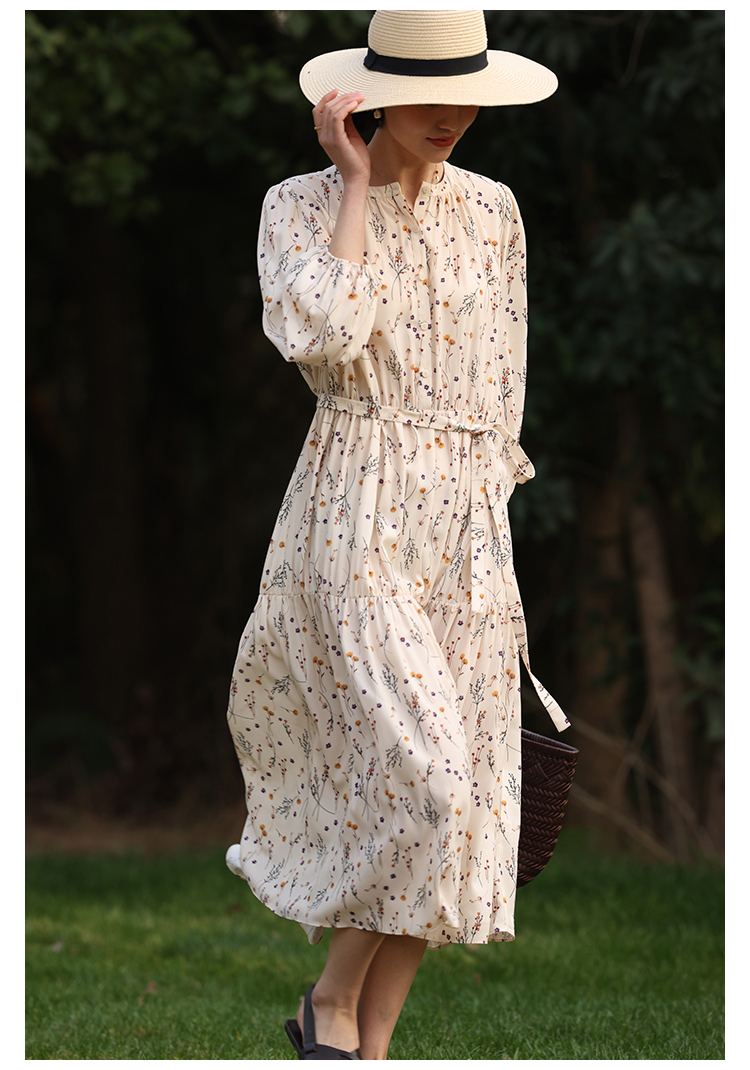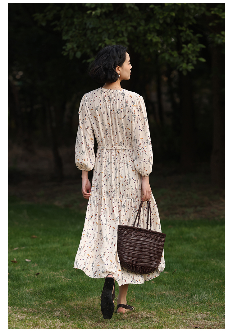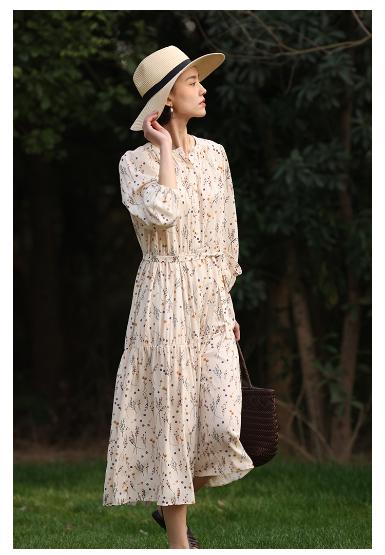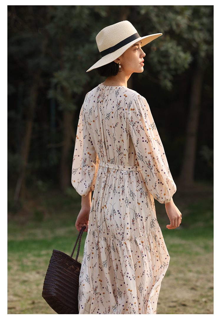 HeyDress法式碎花裙女春夏圆领宽松收腰显瘦印花裙温柔度假风裙子