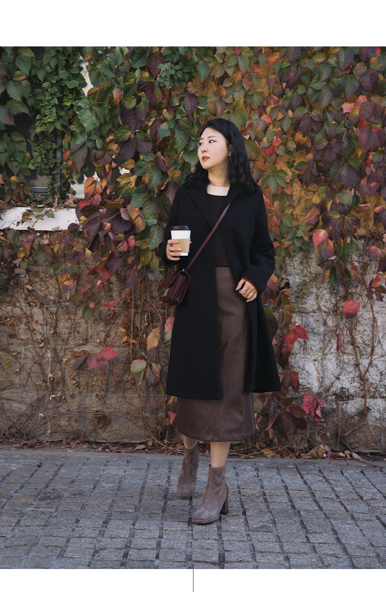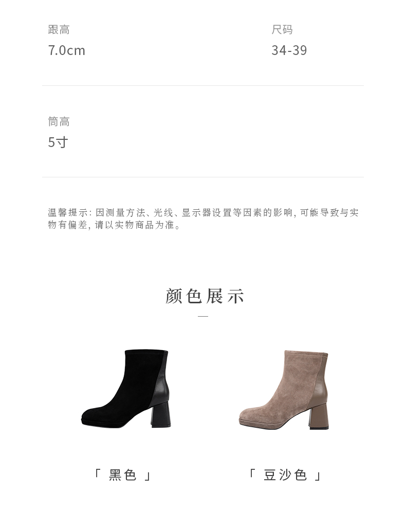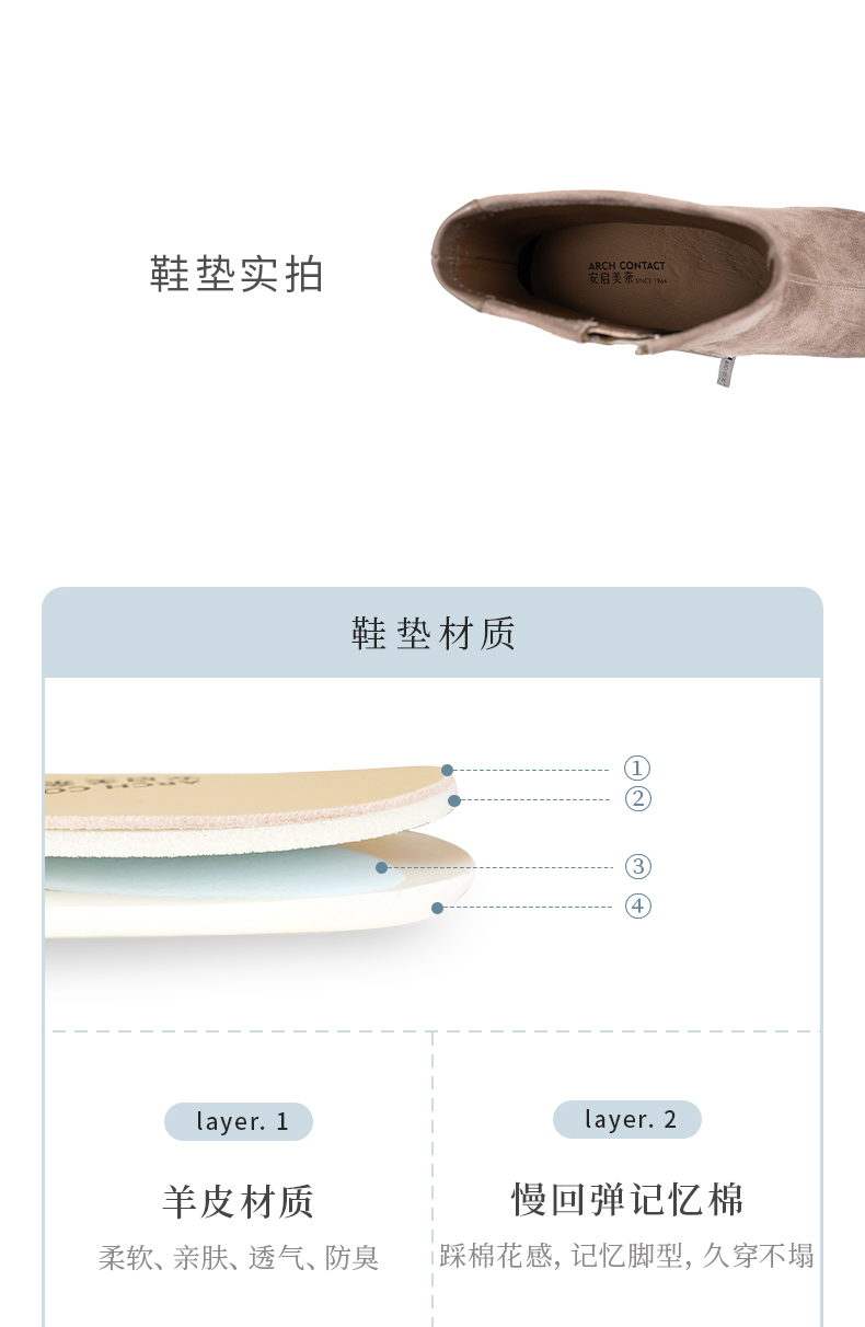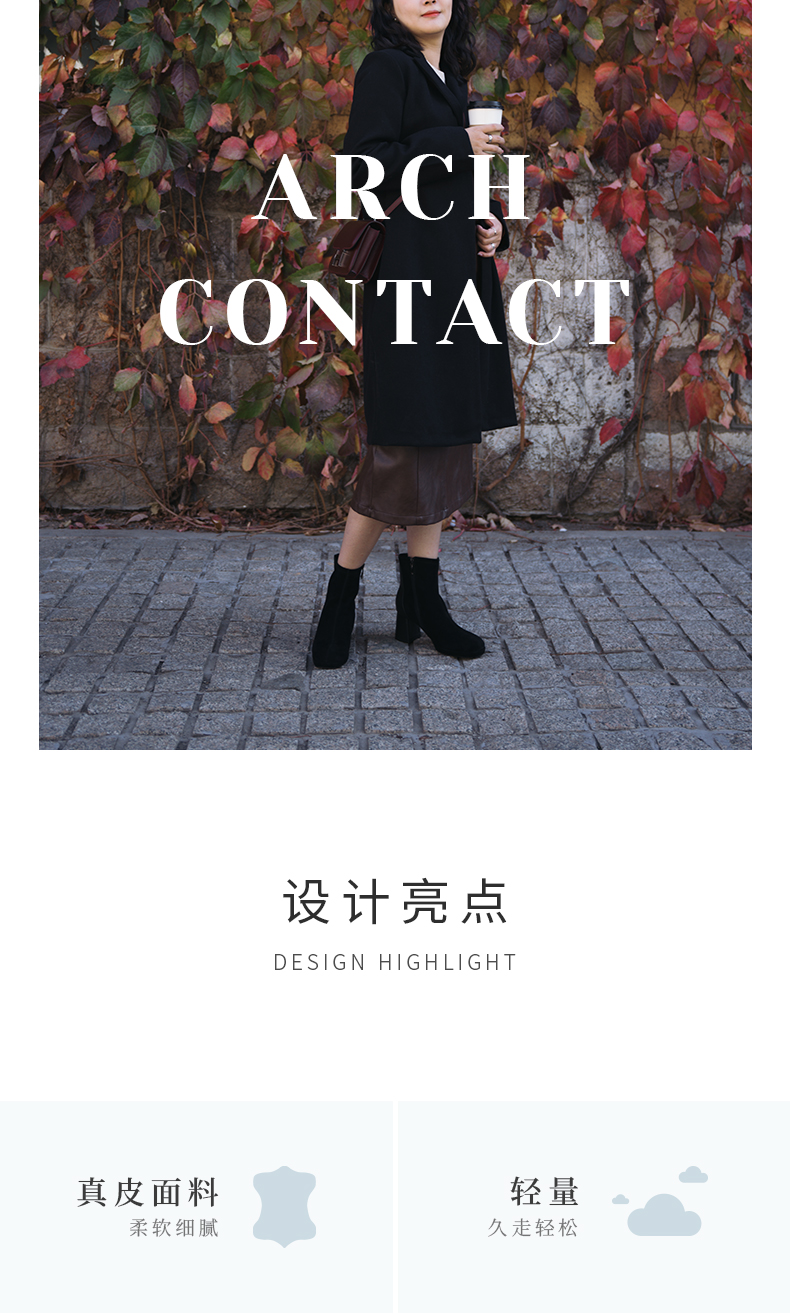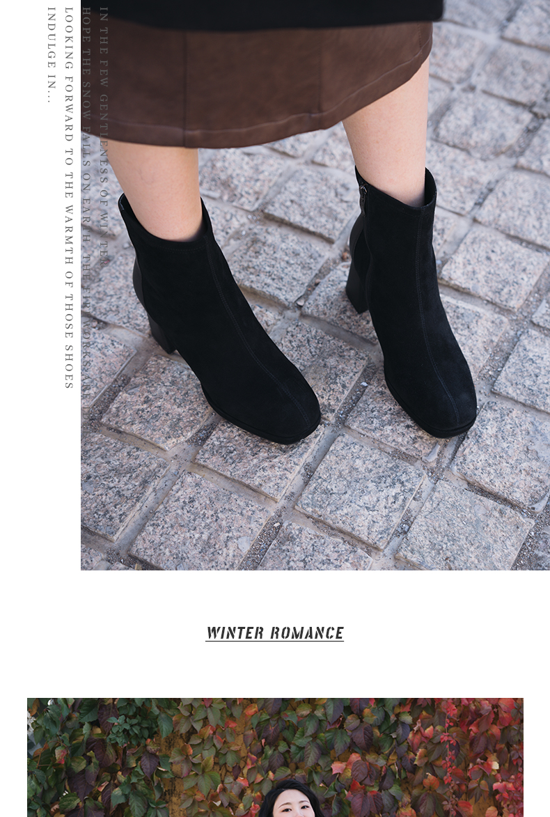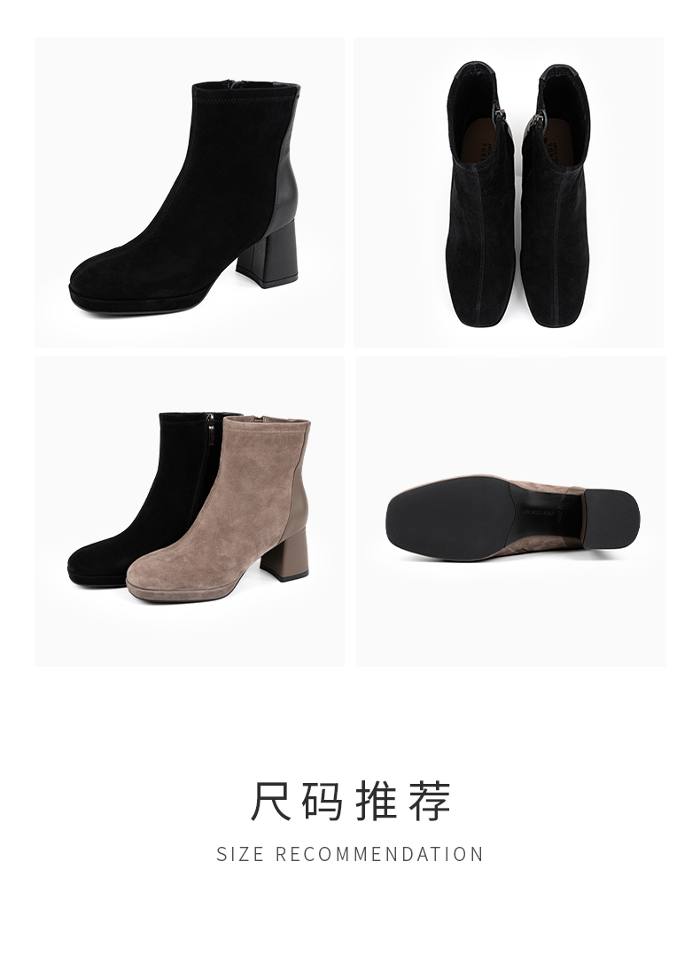 ARCHCONTACT安启美奈复古方头羊皮绒面粗跟弹力女靴52897