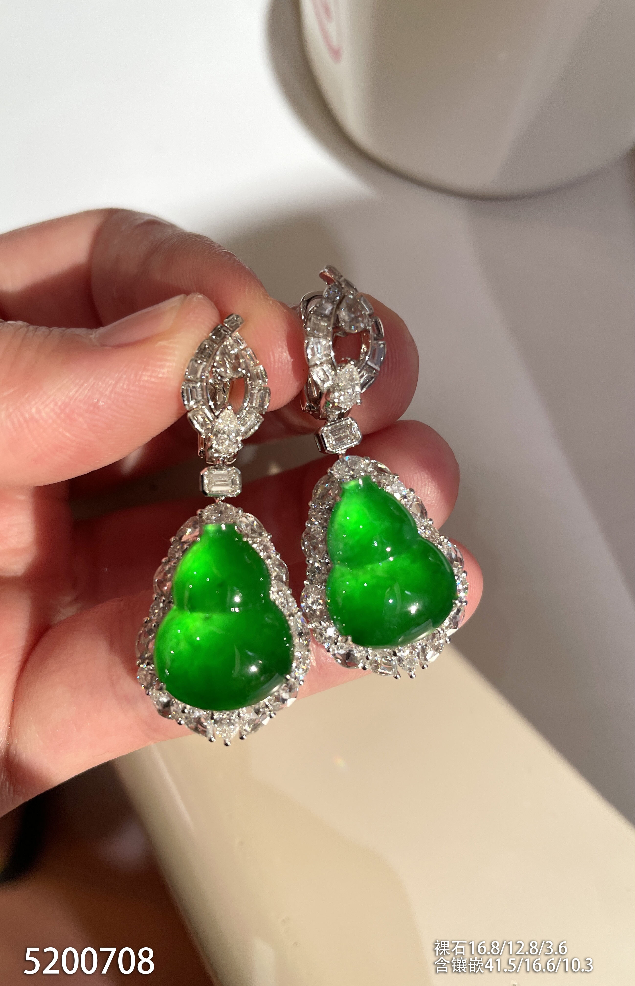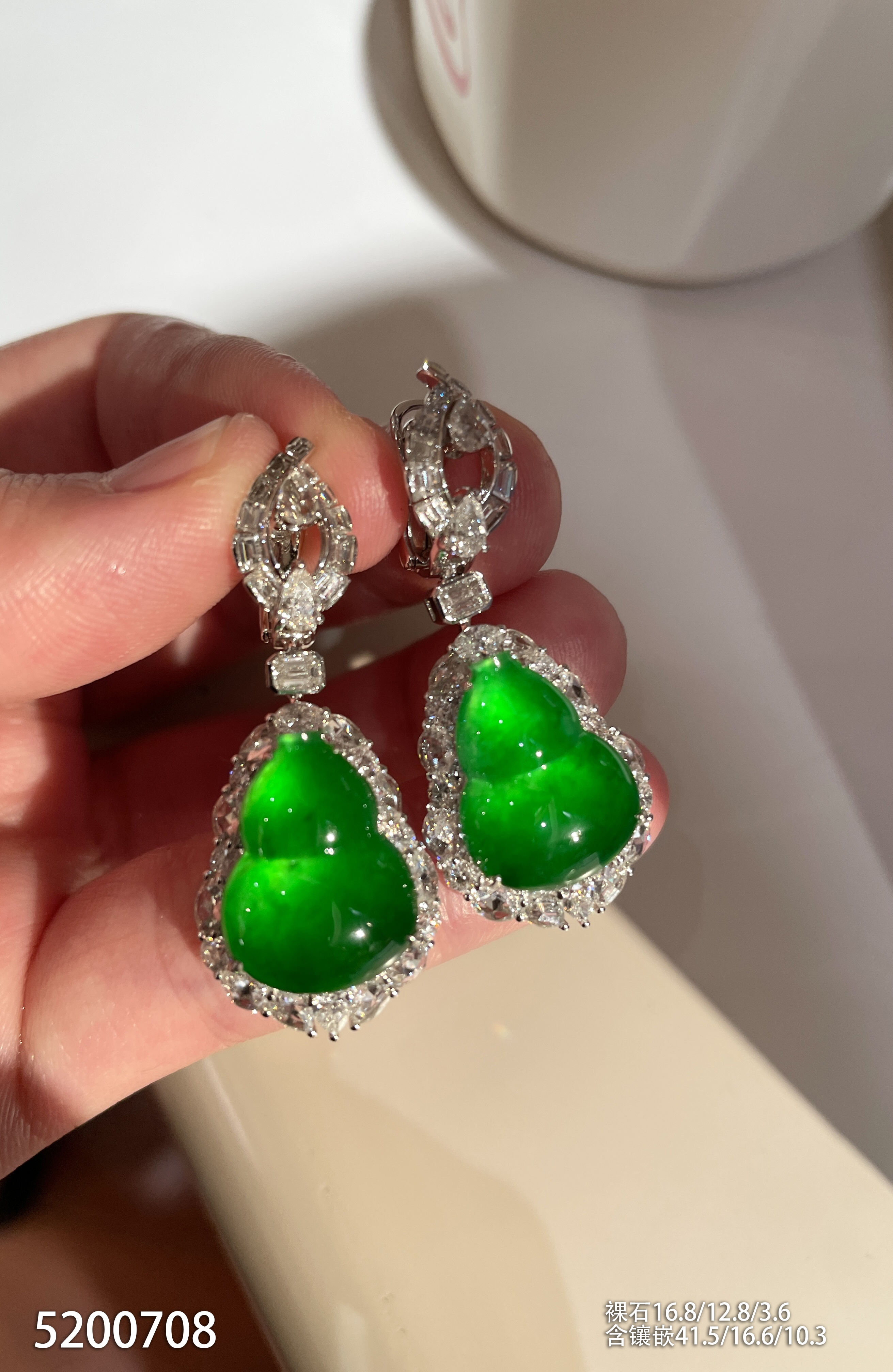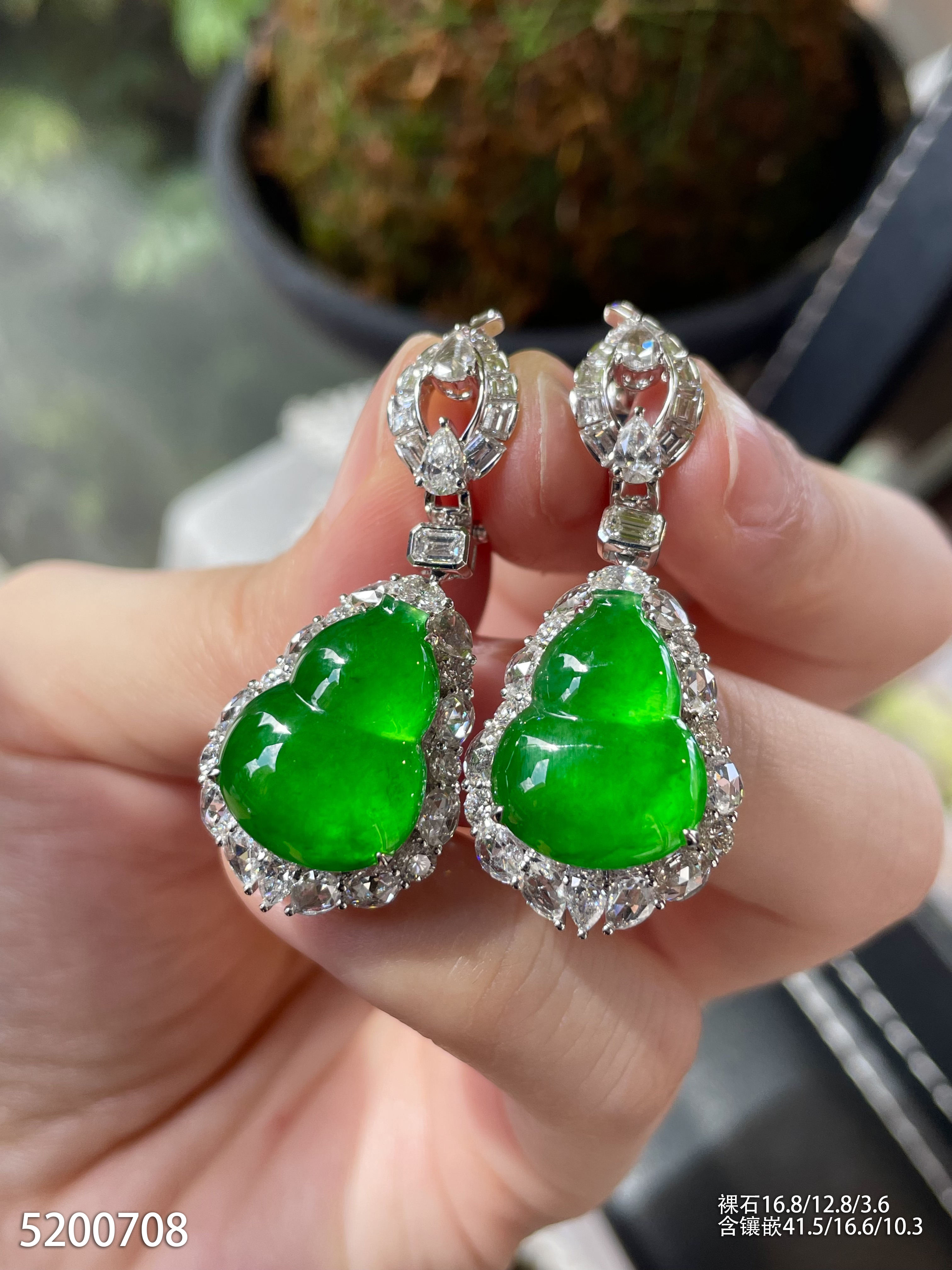 高冰种艳绿葫芦耳坠【5200708】具体价格微信咨询