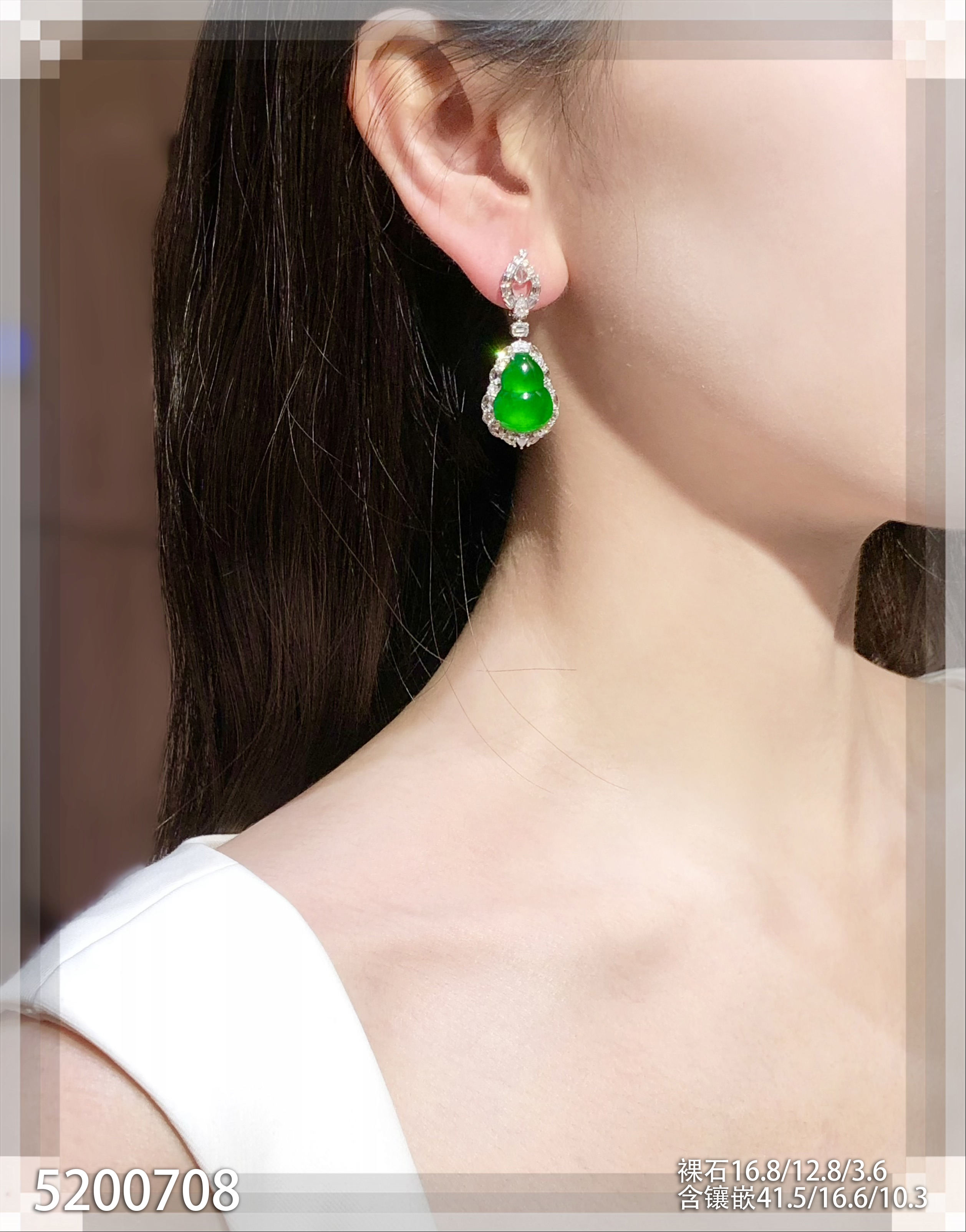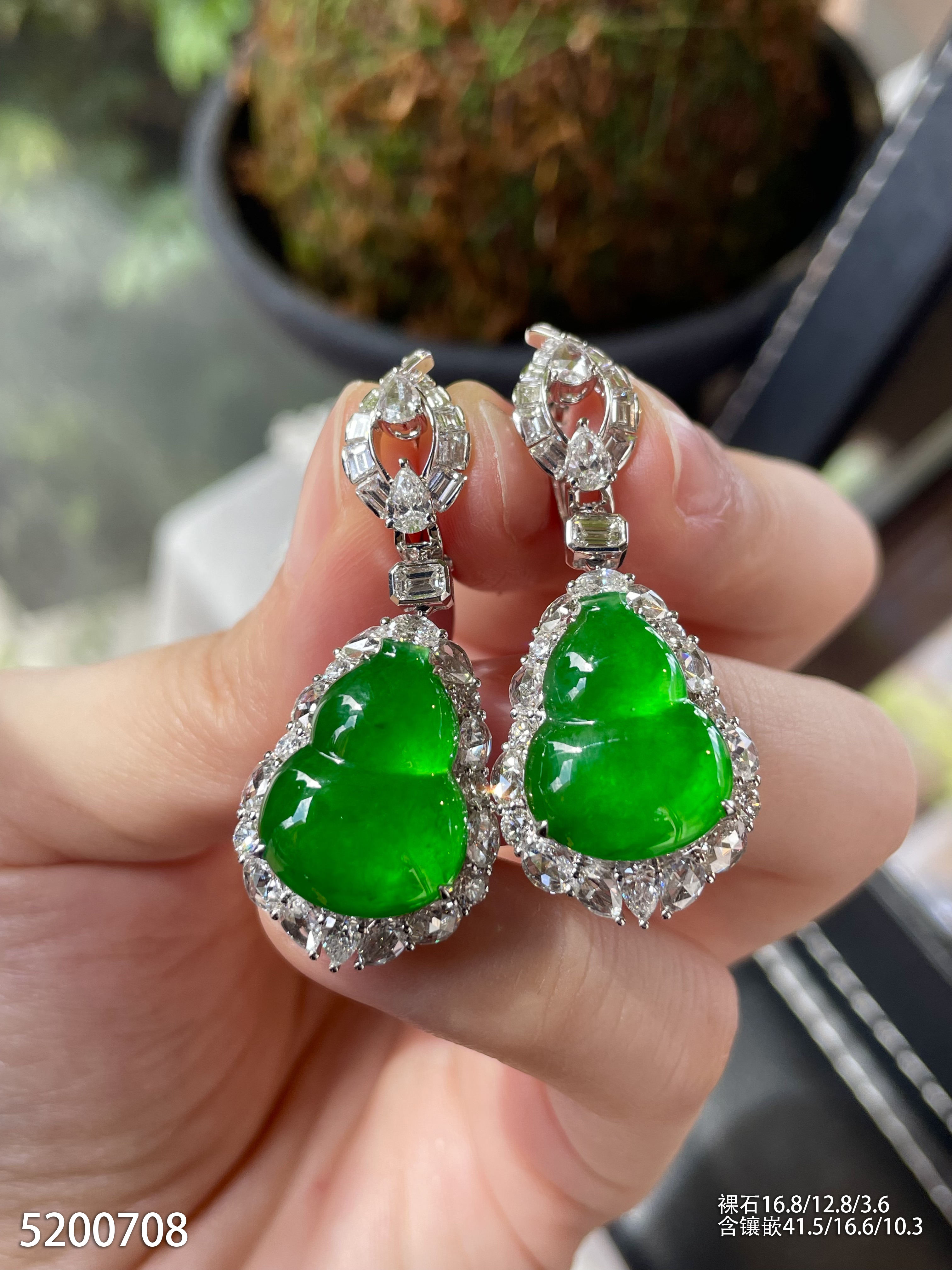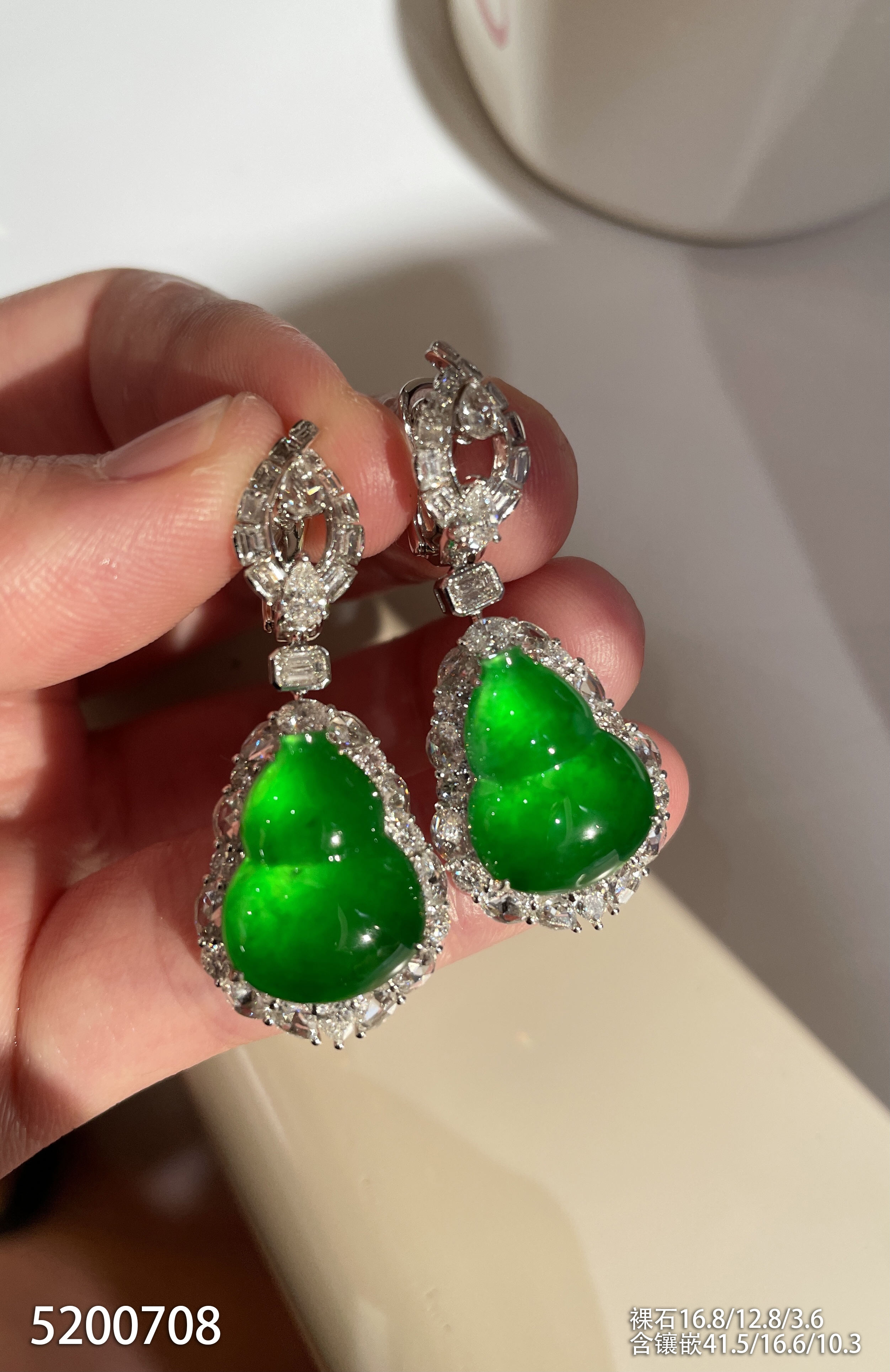 高冰种艳绿葫芦耳坠【5200708】具体价格微信咨询