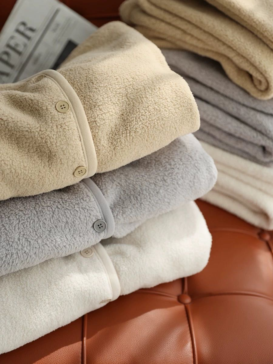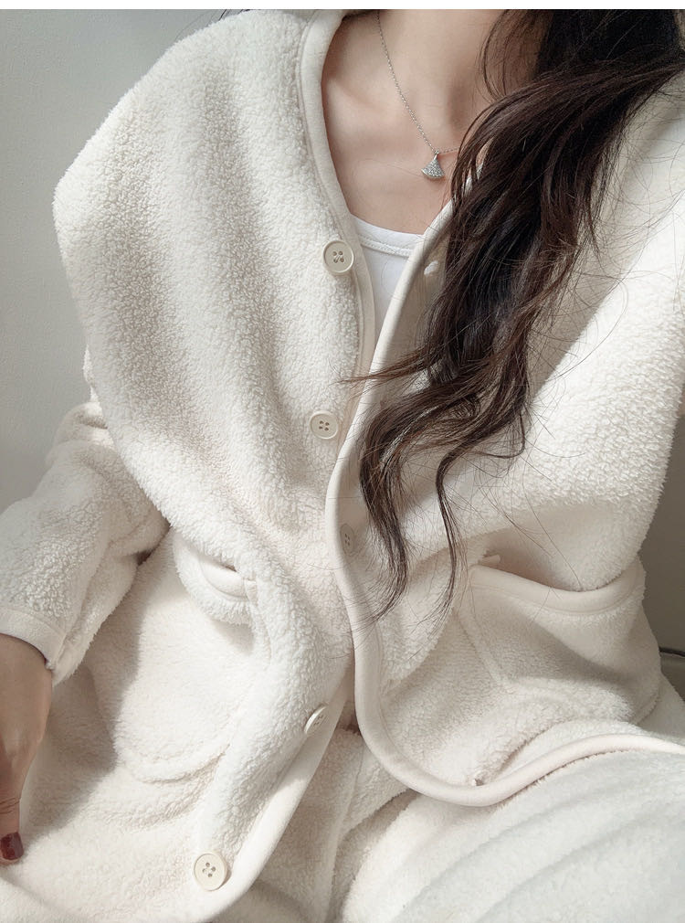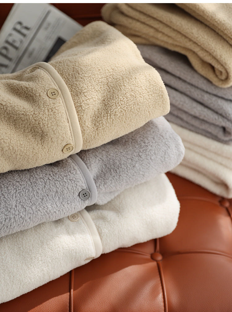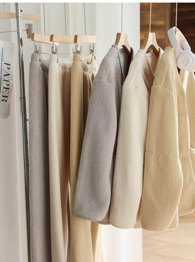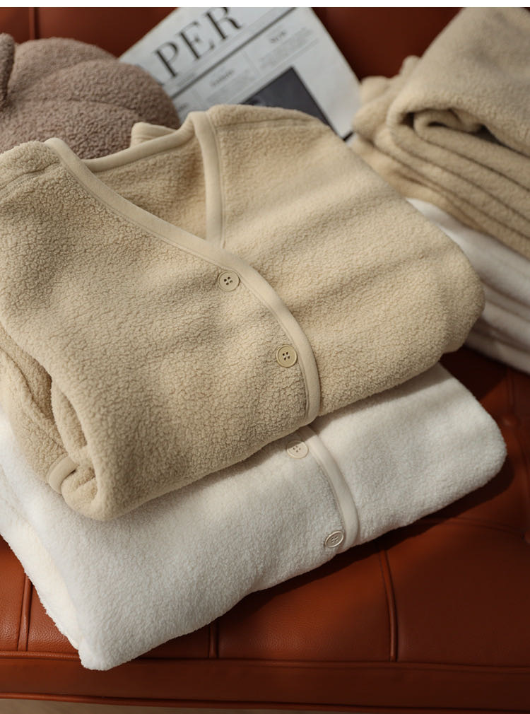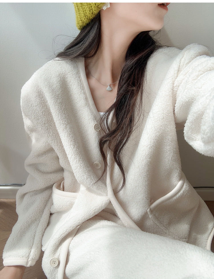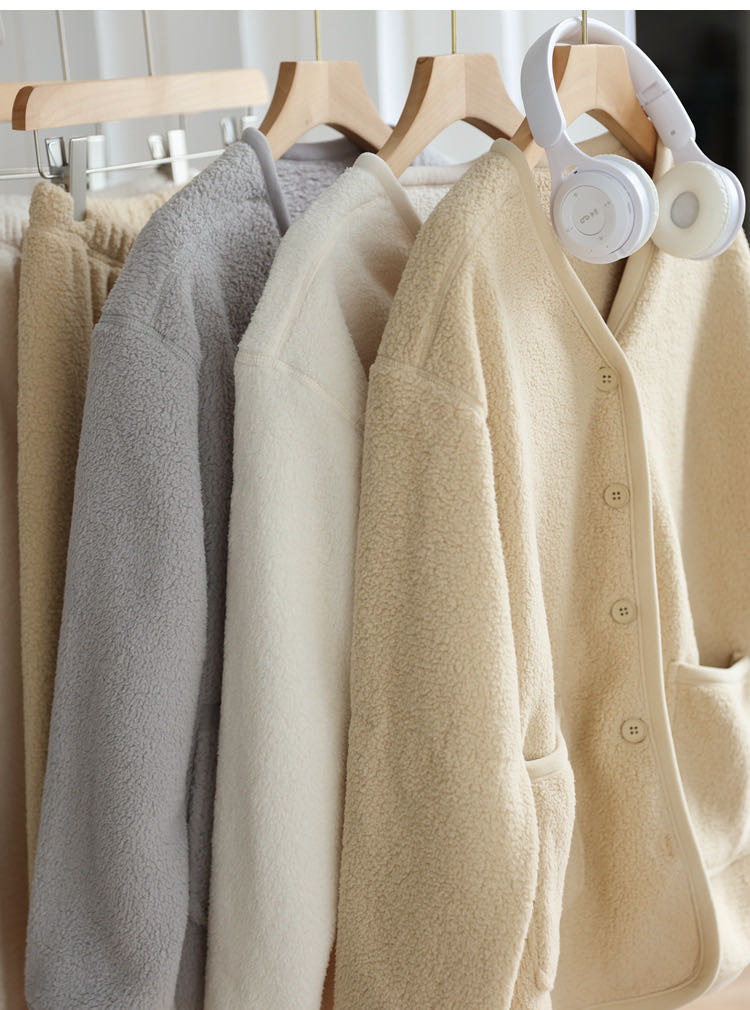 开衫的版型➕睡衣的绒感,打破你对传统睡衣的刻板印象,穿出门毫无违和感;