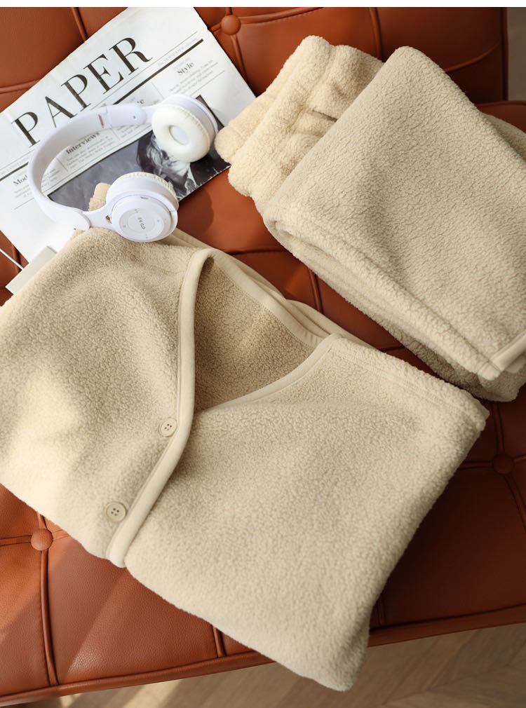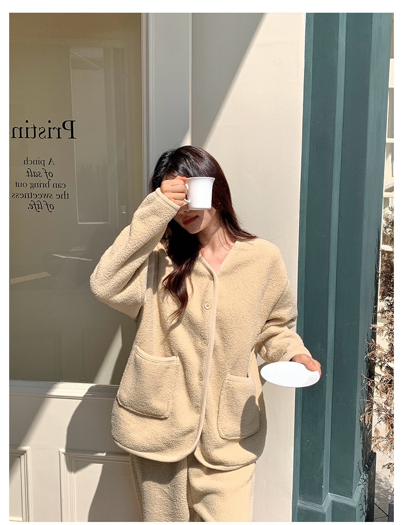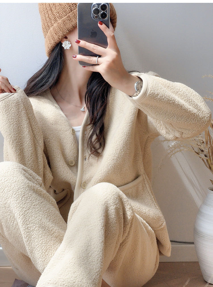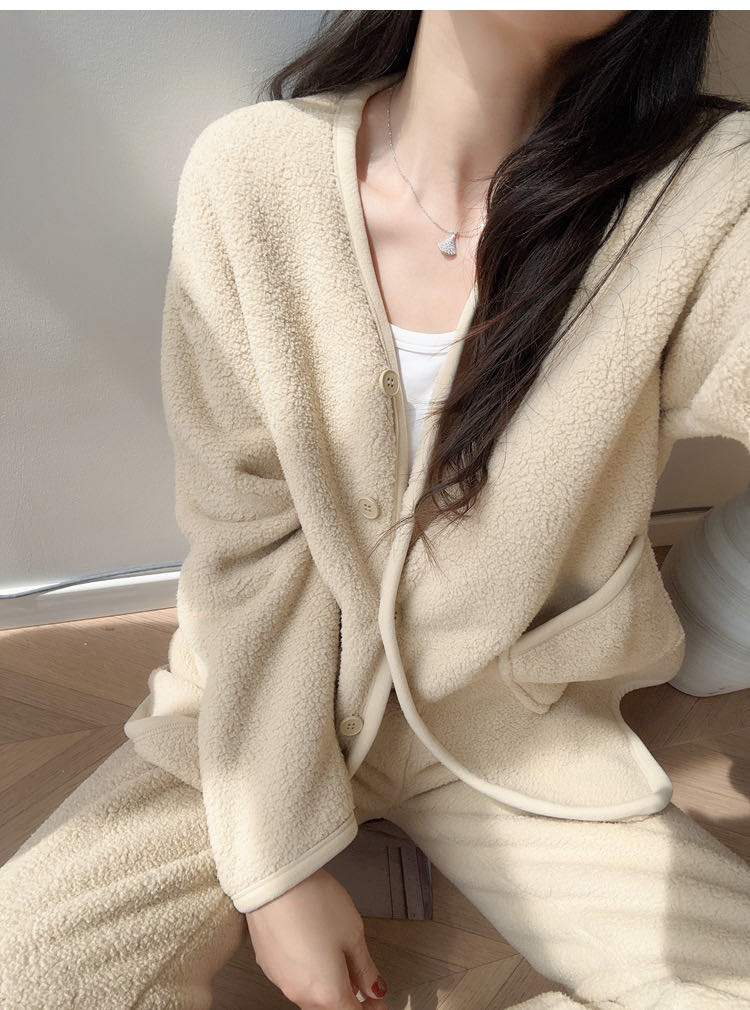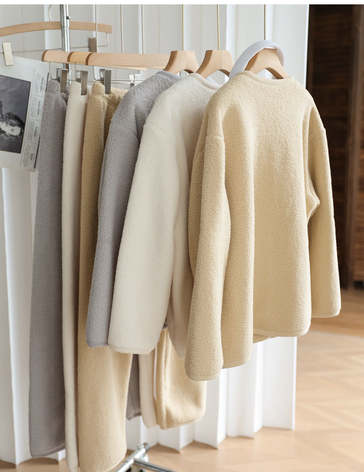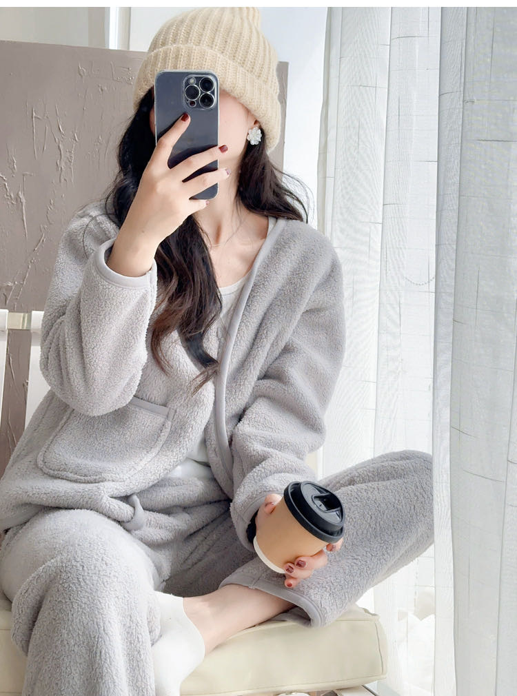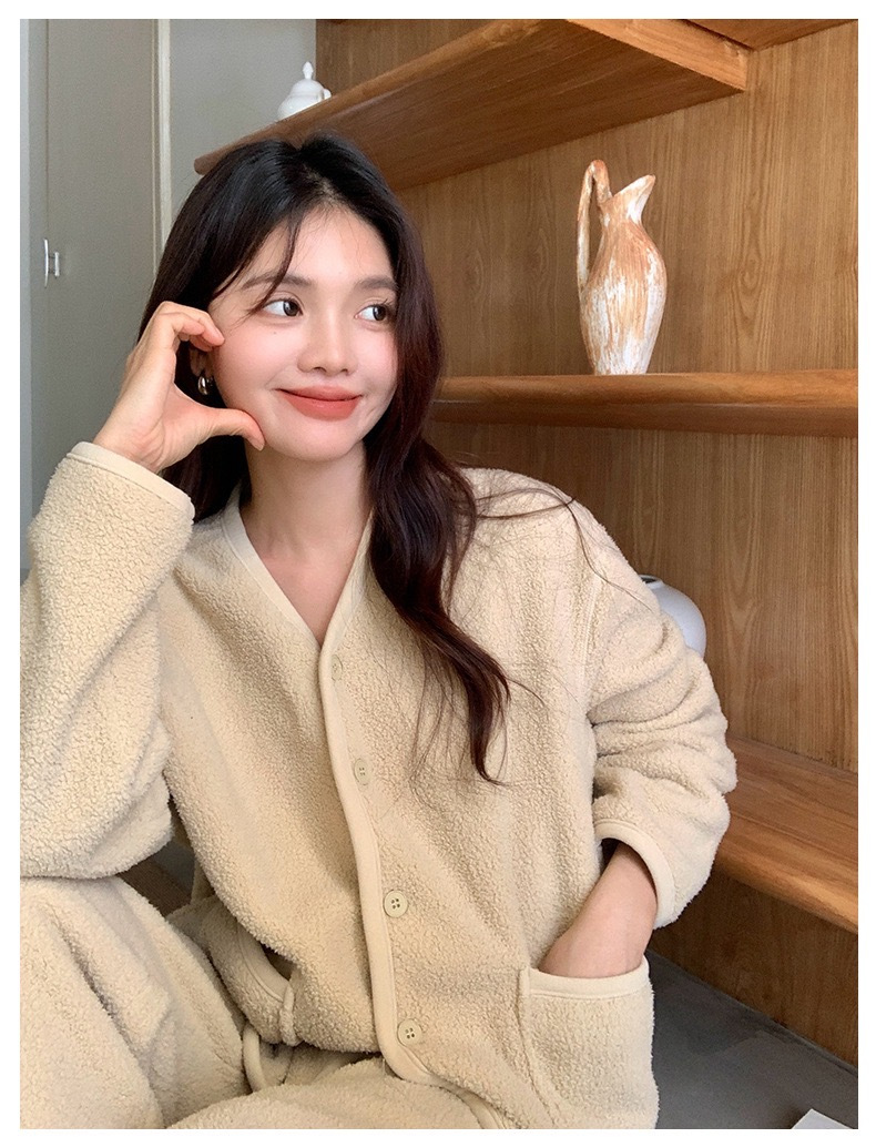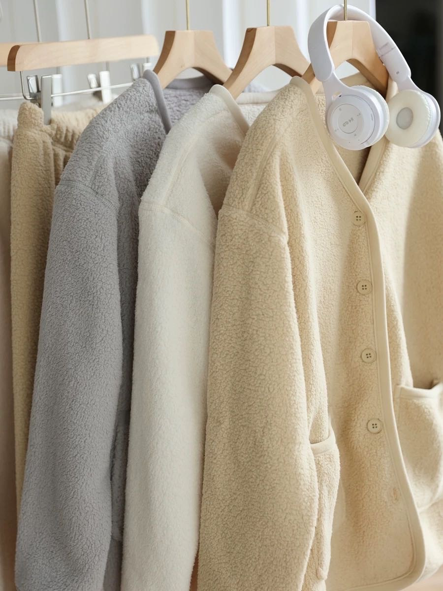 开衫的版型➕睡衣的绒感,打破你对传统睡衣的刻板印象,穿出门毫无违和感;