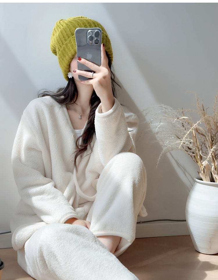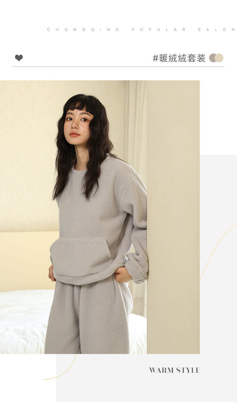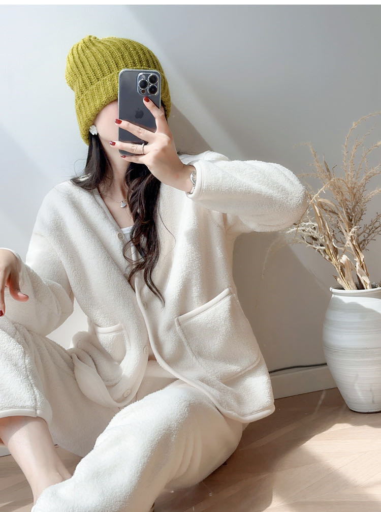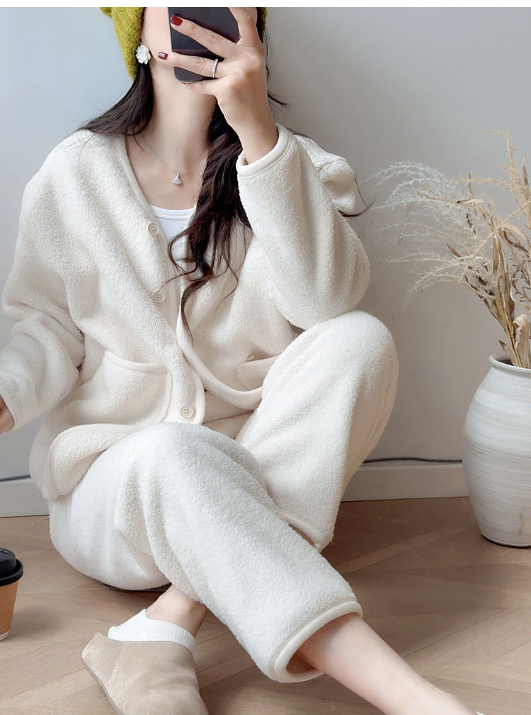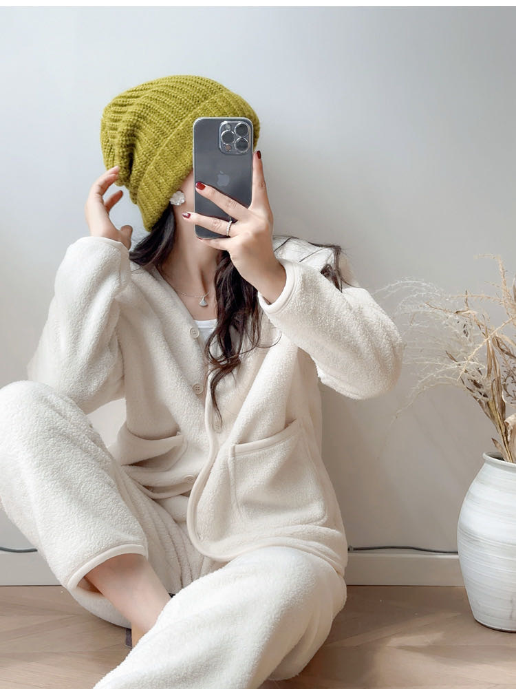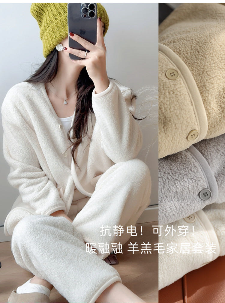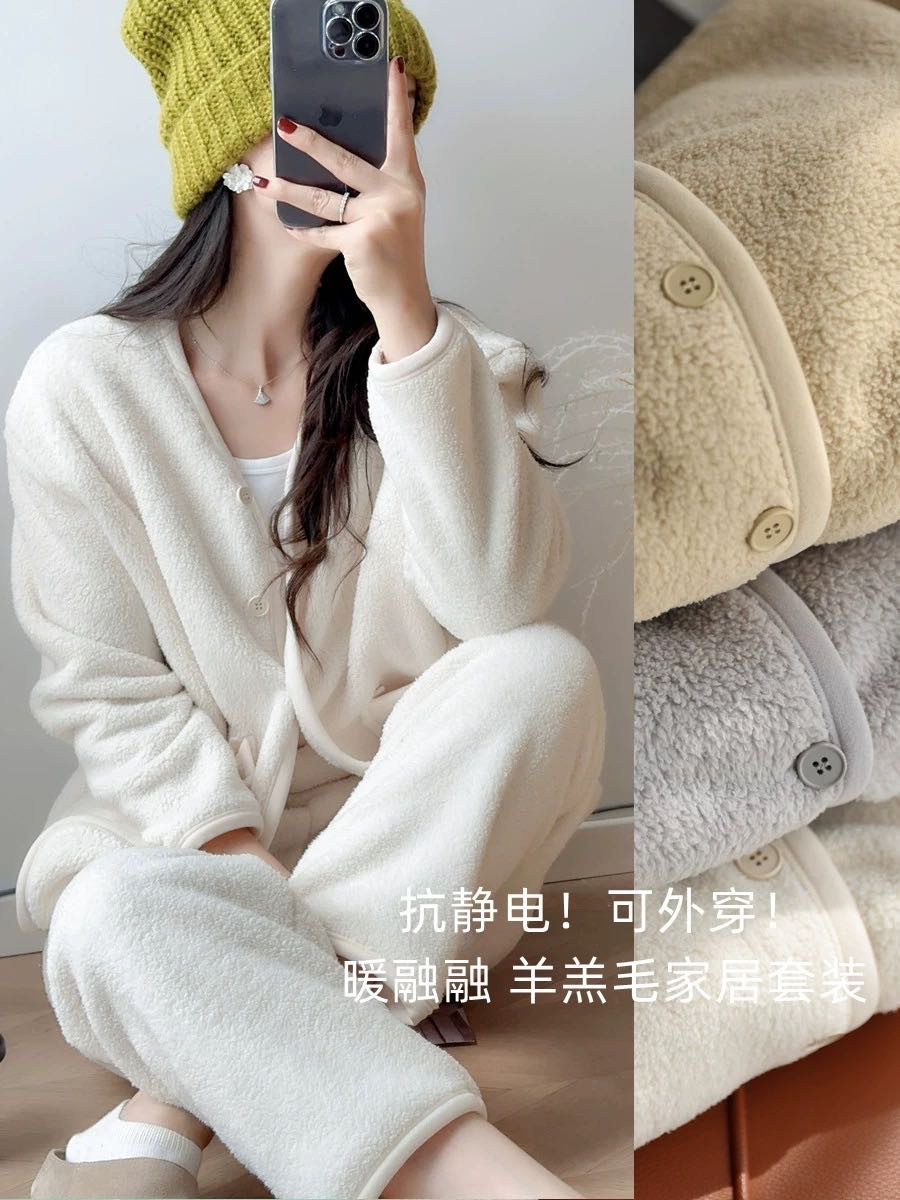 【多妈团购 暖绒绒家居服套装】降温必入!圆领睡衣套装和纽扣开衫版套装,保暖度杠杠的!软软糯糯,厚实保暖,柔软无味-连横