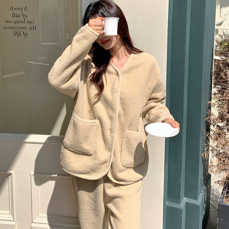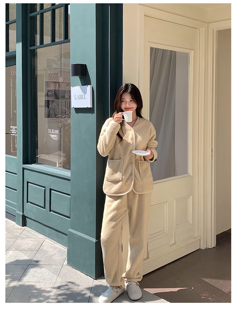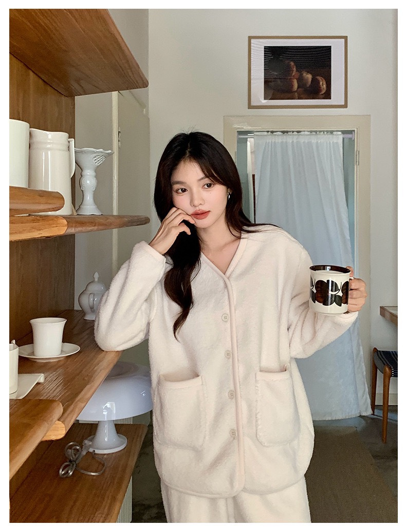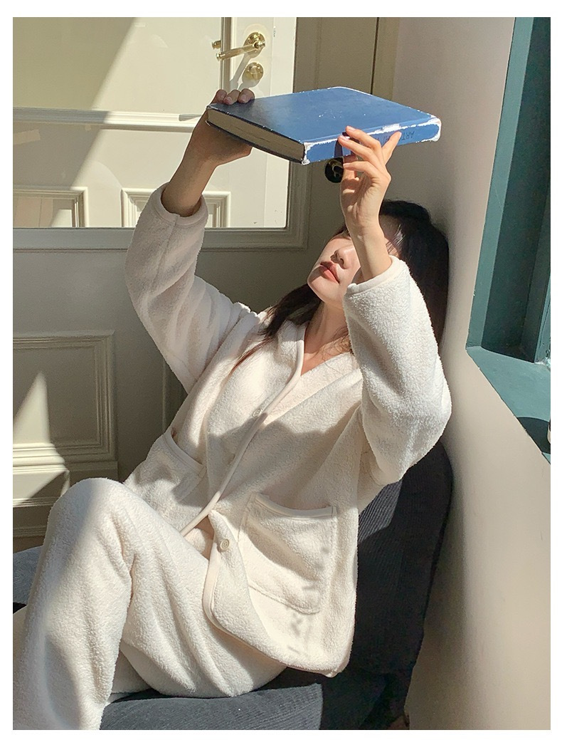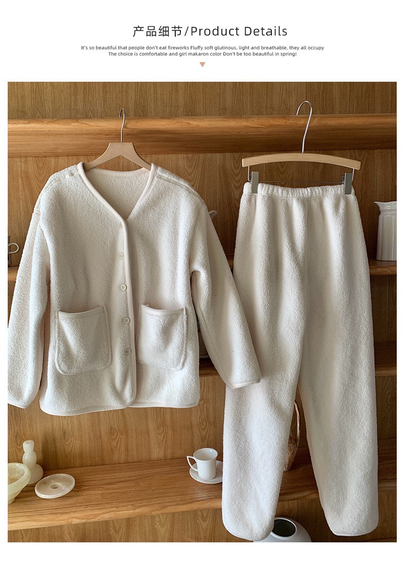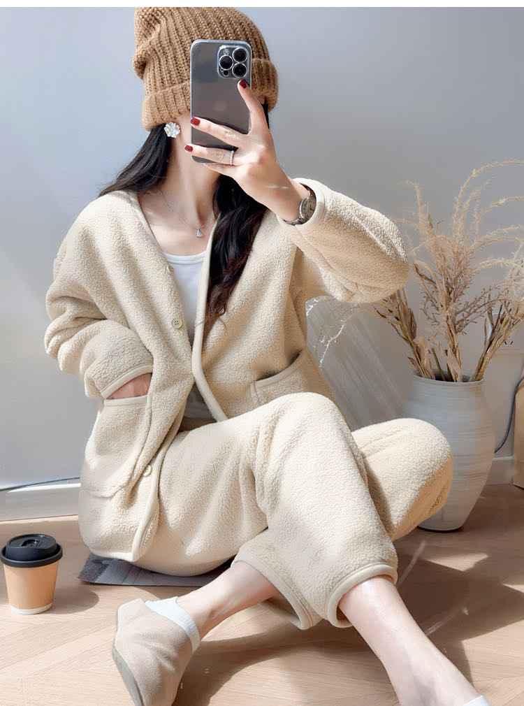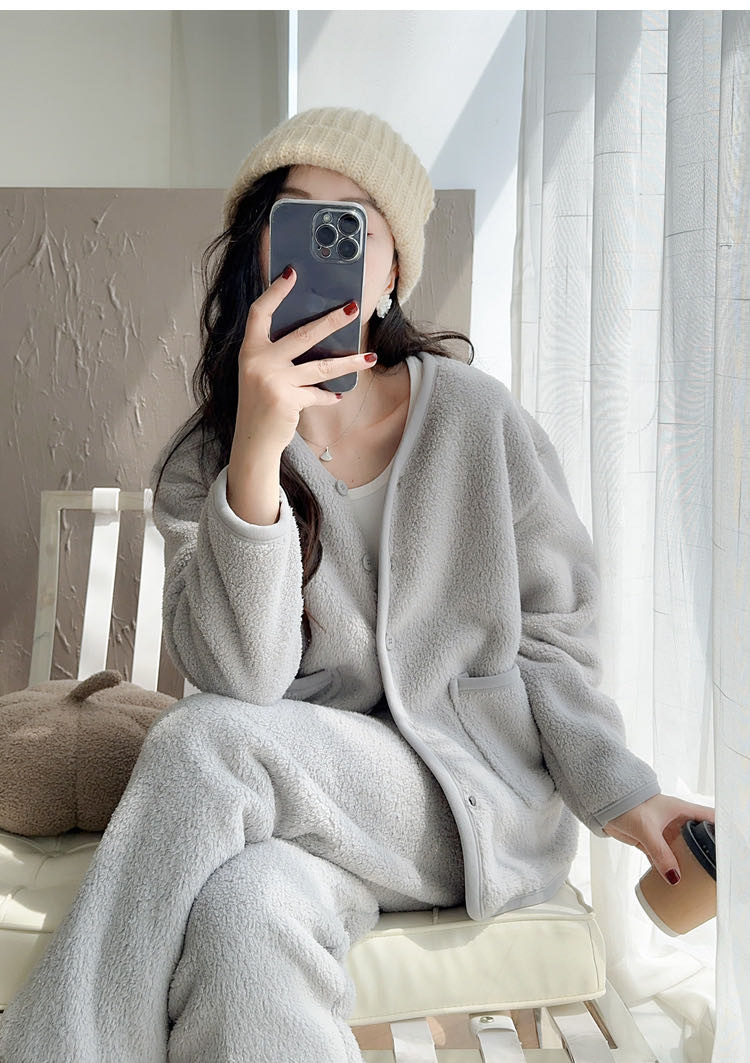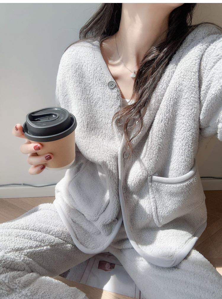 【多妈团购 暖绒绒家居服套装】降温必入!圆领睡衣套装和纽扣开衫版套装,保暖度杠杠的!软软糯糯,厚实保暖,柔软无味-连横