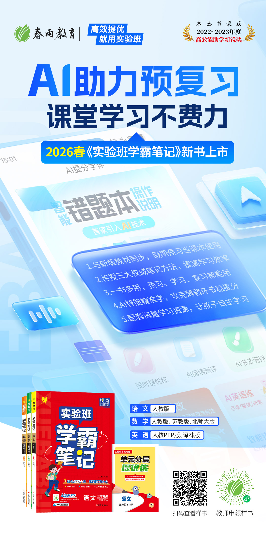 【2026春下册】语文数学英语 人教苏教北师大PEP译林外研 实验班笔记 小学生一二三四五六年级 123456年级下册