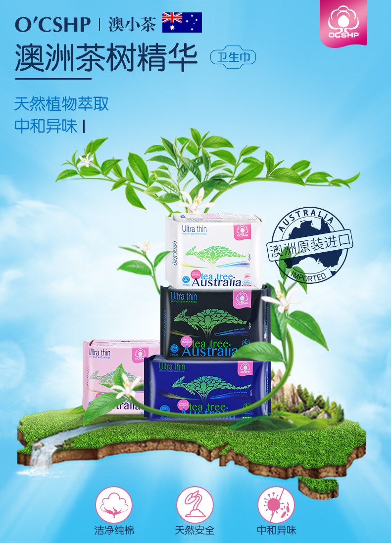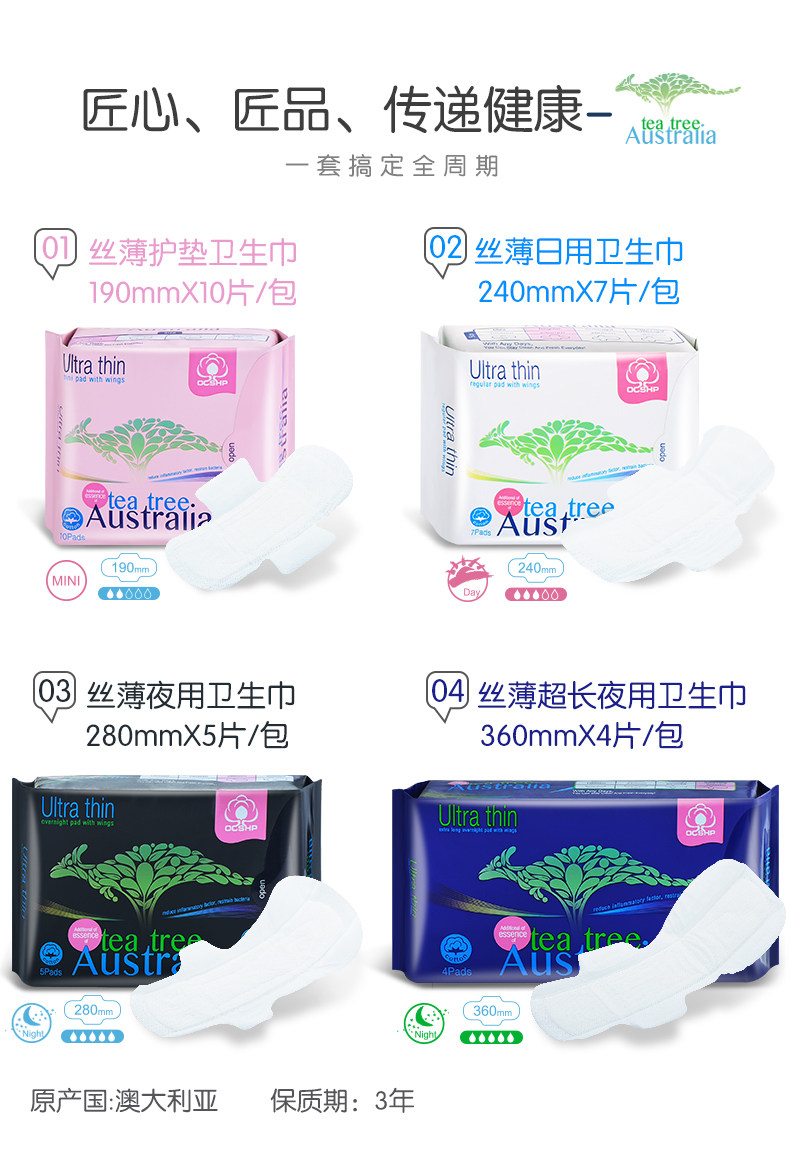 澳小茶 澳洲茶树精华夜用卫生巾280mm*5P