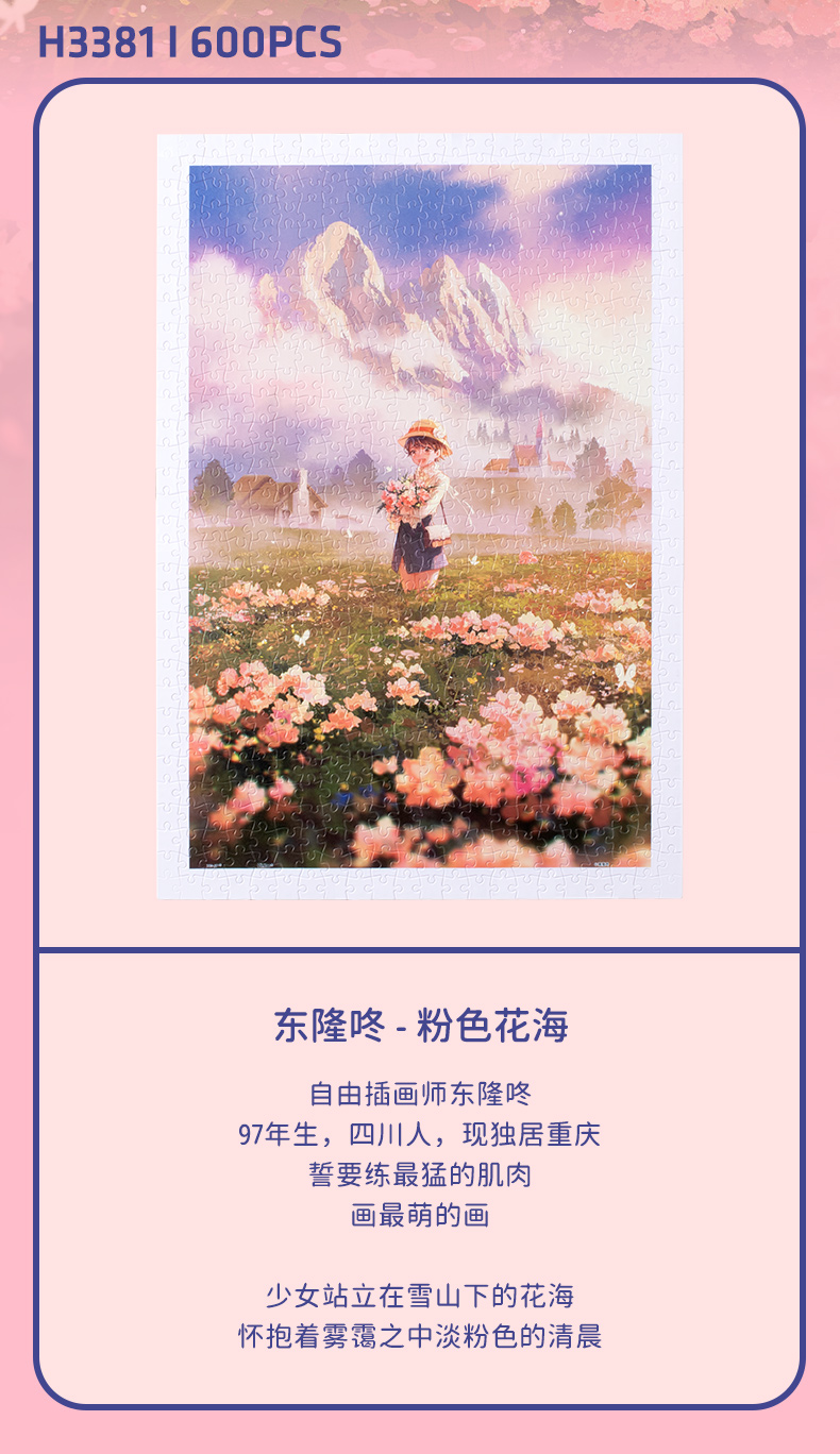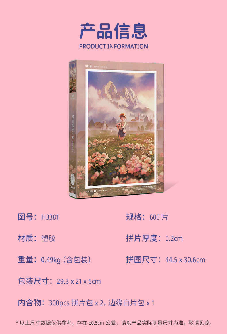 【折扣商品 不退不换】600片 平面塑料拼图 H3381 东隆咚-粉色花海