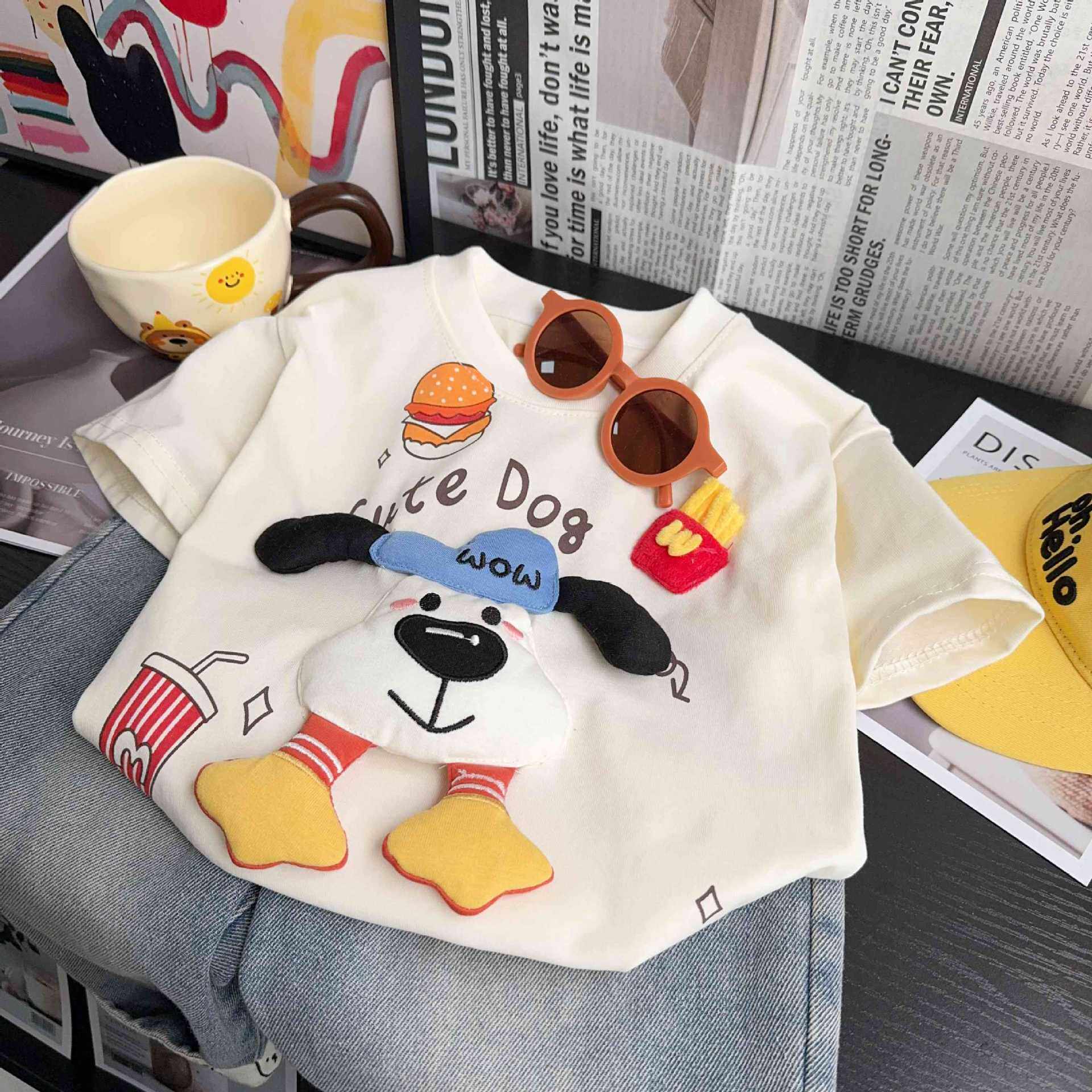 儿童短袖T恤男女童夏季薄款可爱立体玩偶半袖宝亲子纯棉圆领上衣