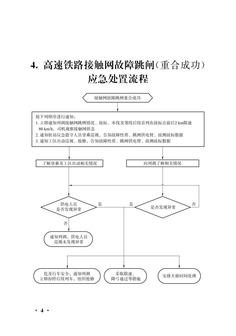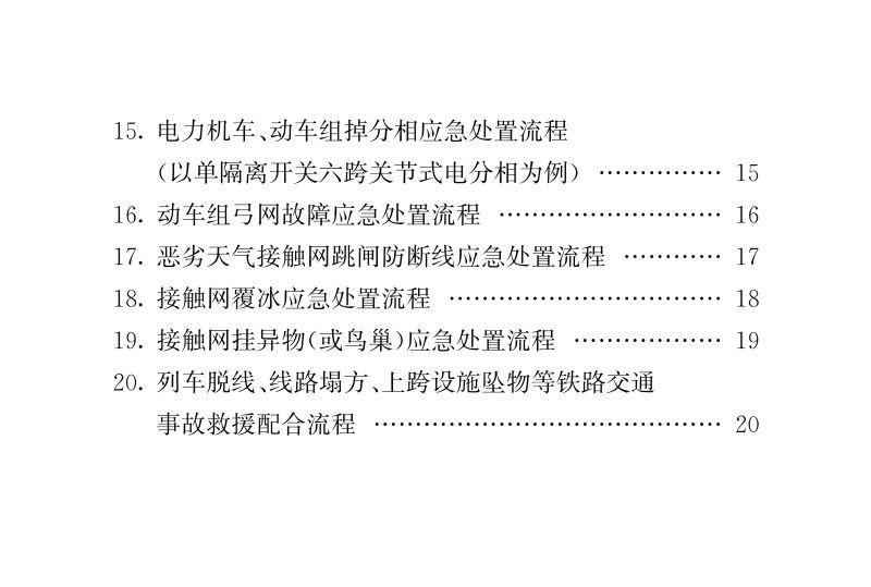 本书为《铁路供电调度应急处置基本流程》,代替15113.5278《铁路故障应急处置基本流程 供电故障应急处置基本流程补充内容》。为加强对铁路供电调度的专业管理,进一步规范铁路供电调度应急处置基本方法,在深入研究和不断探索的基础上,对原中国铁路总公司运输局《供电故障应急处置基本流程》(运供供电函【2016】208号)和工电部《供电故障应急处置基本流程补充规定》(工电函【2017】33号)两个文件进行了合并修订,合并后的文件名称修改为《铁路供电调度应急处置基本流程》。本流程是铁路供电调度做好供电设备故障应急处置和应急指挥工作的依据,对提高铁路供电调度应急处置能力和水平有着重要作用。
