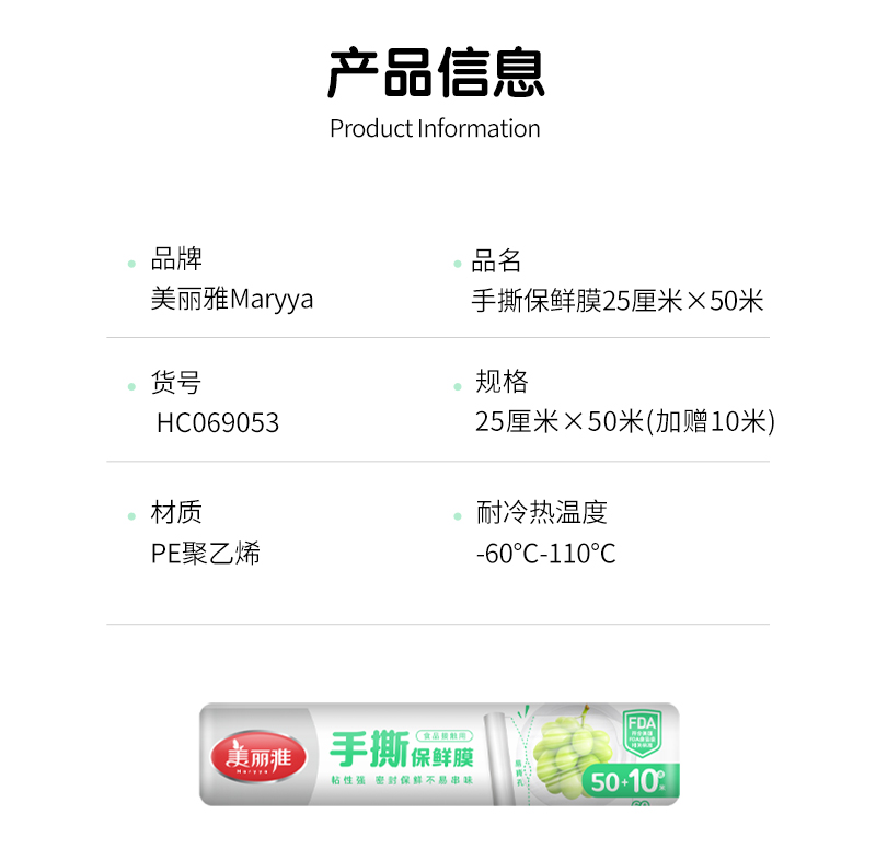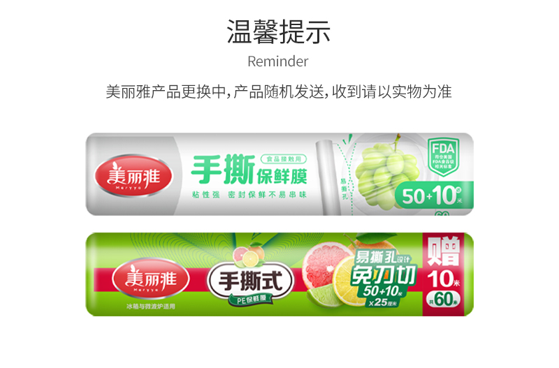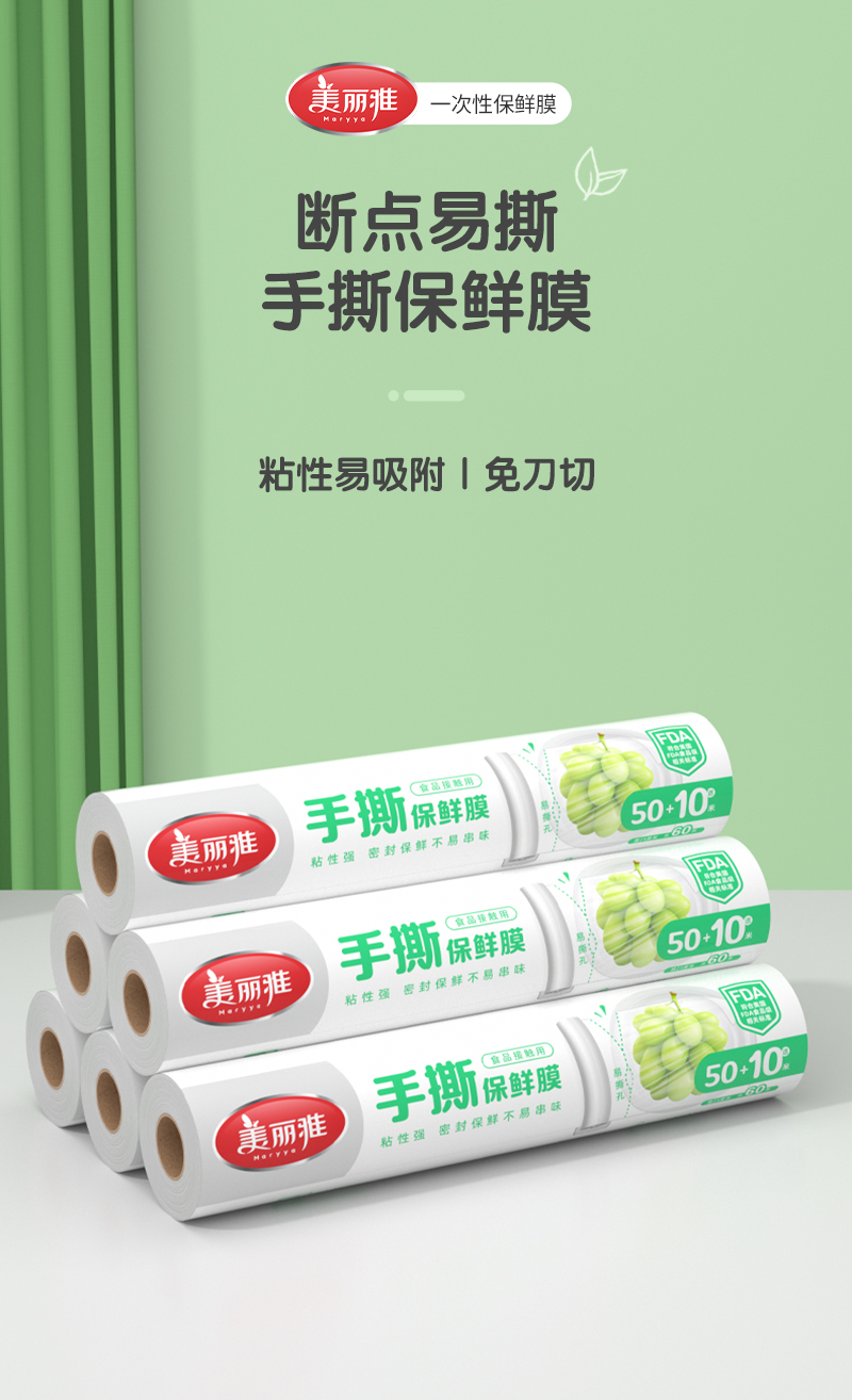 【批发】美丽雅易撕PE保鲜膜25CM*(50M+赠10米)