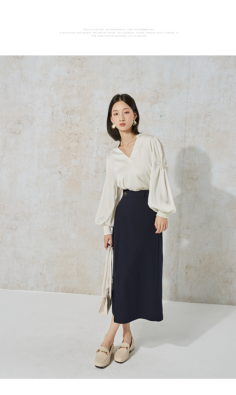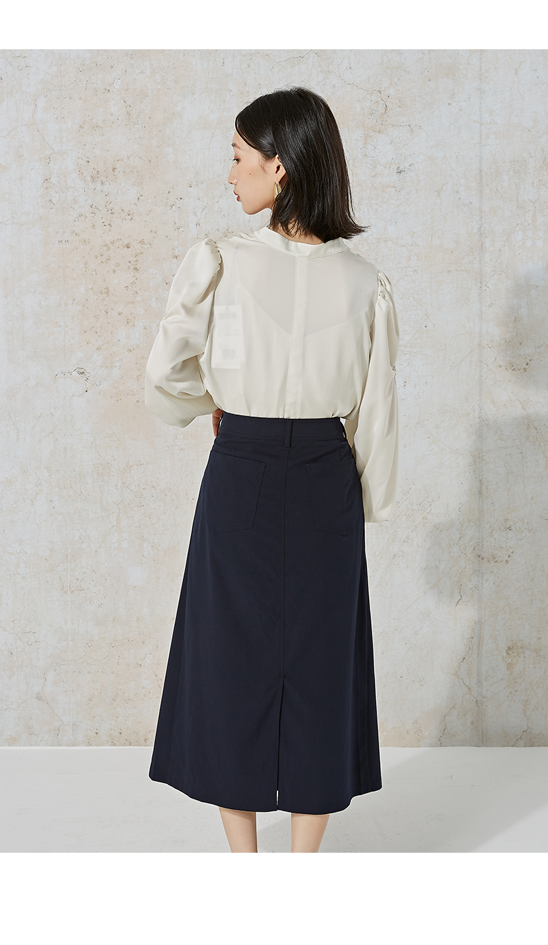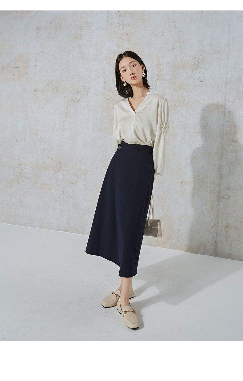 NUTS春秋季高腰A字显瘦纯色简约百搭通勤半身长裙女231063003B