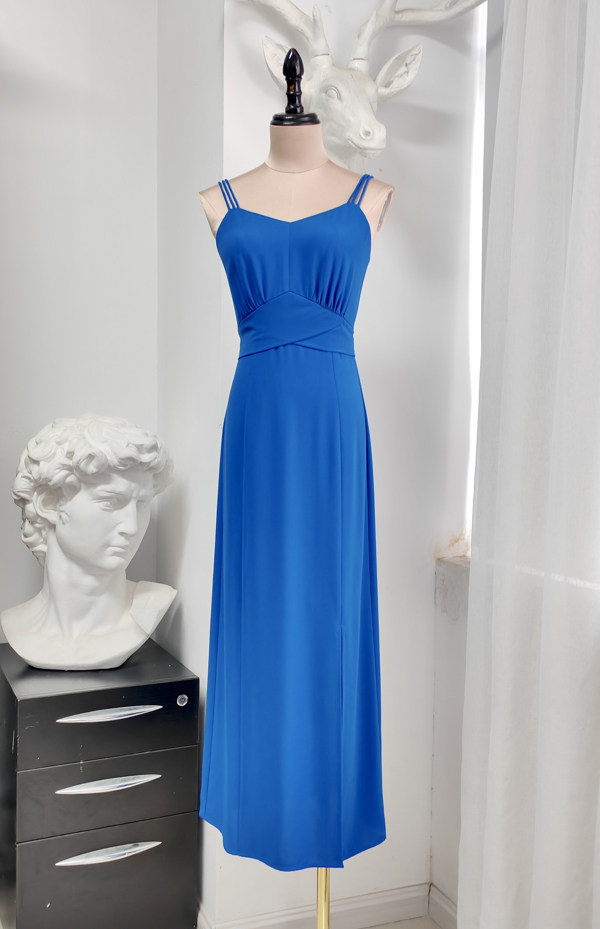 3205284 琉璃蓝梦 韩国进口水晶麻纱吊带裙 雾境