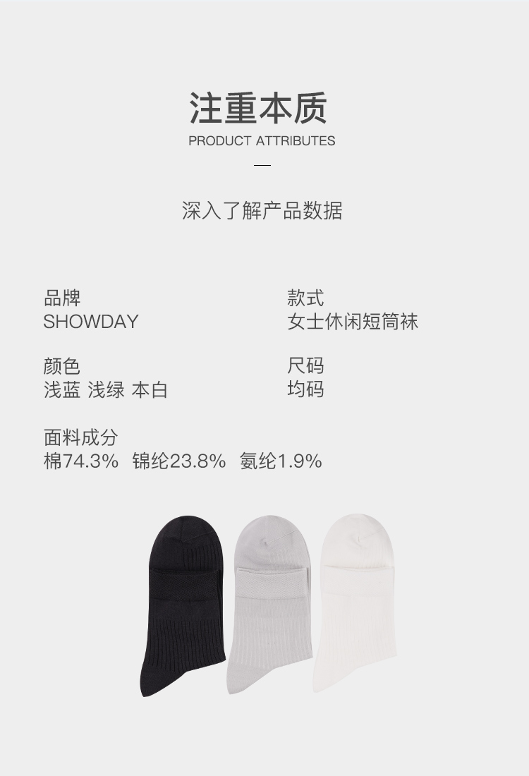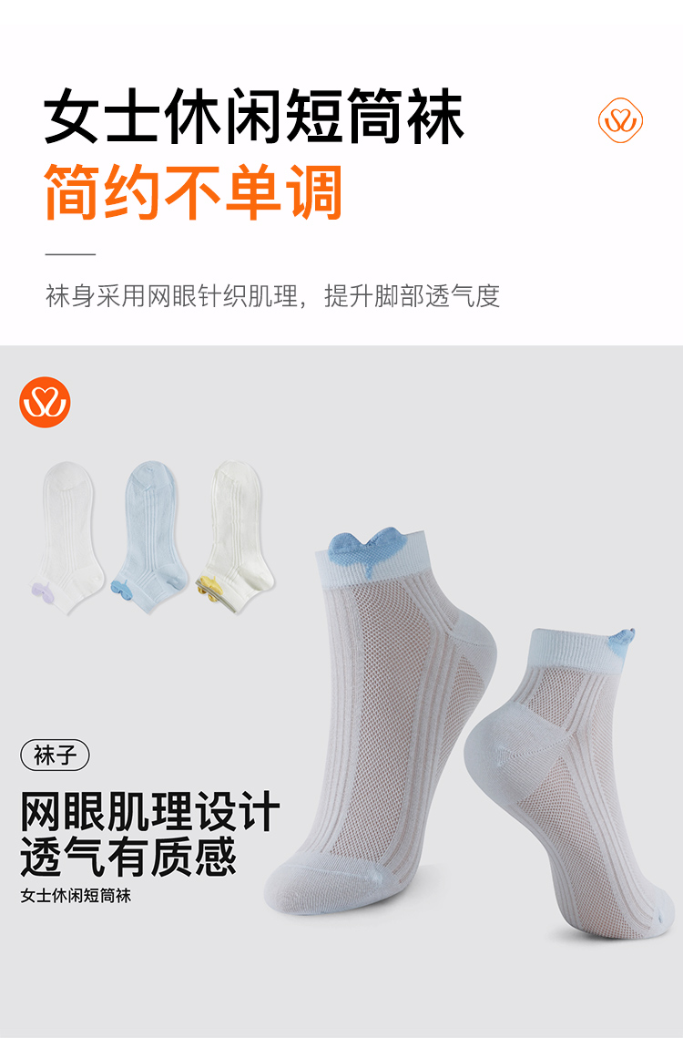 【满3双/19.9元】【秀黛】女士休闲短筒袜棉锦纶氨纶网眼肌理透气罗口不勒腿女士袜子W5220005T【门店同款】