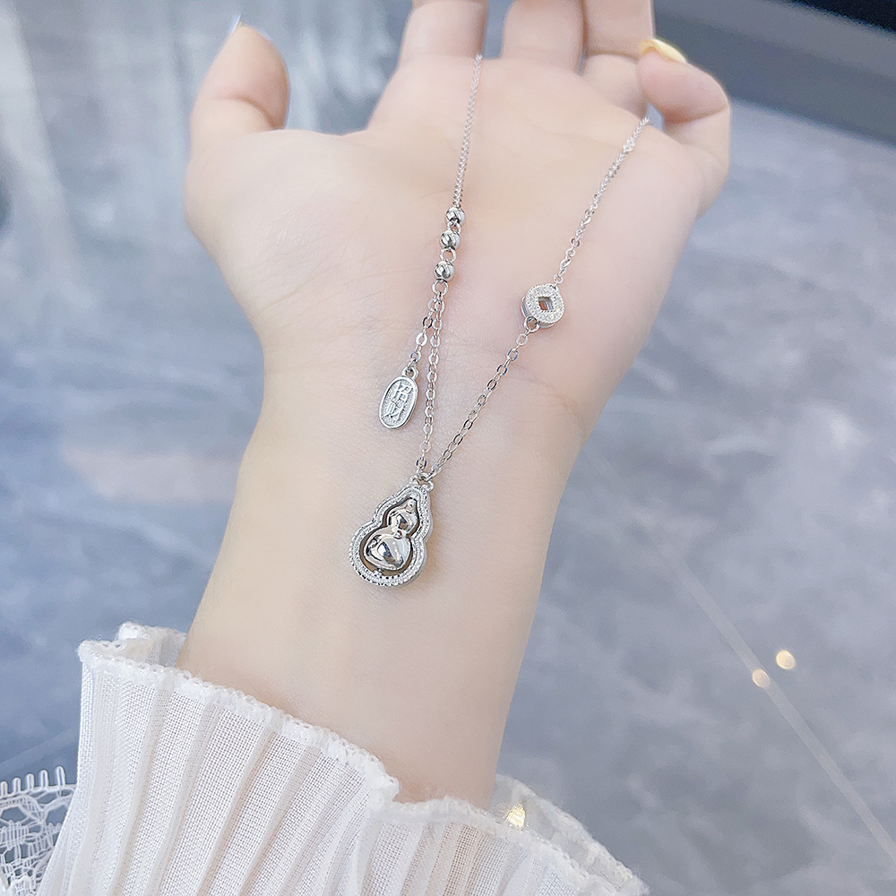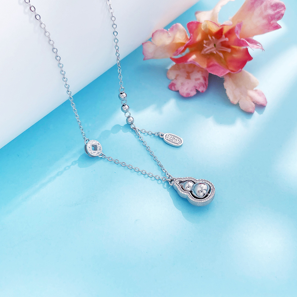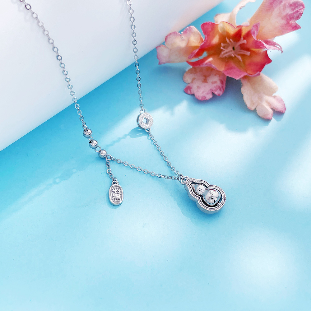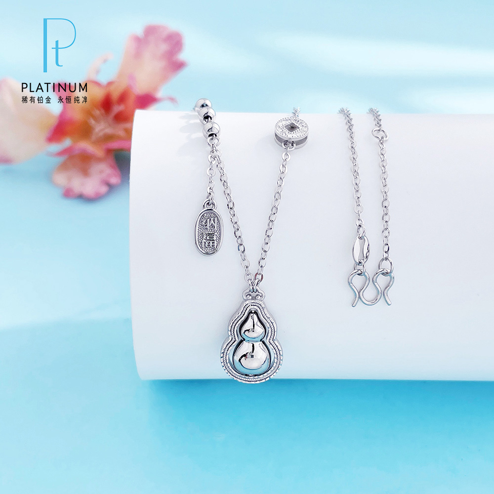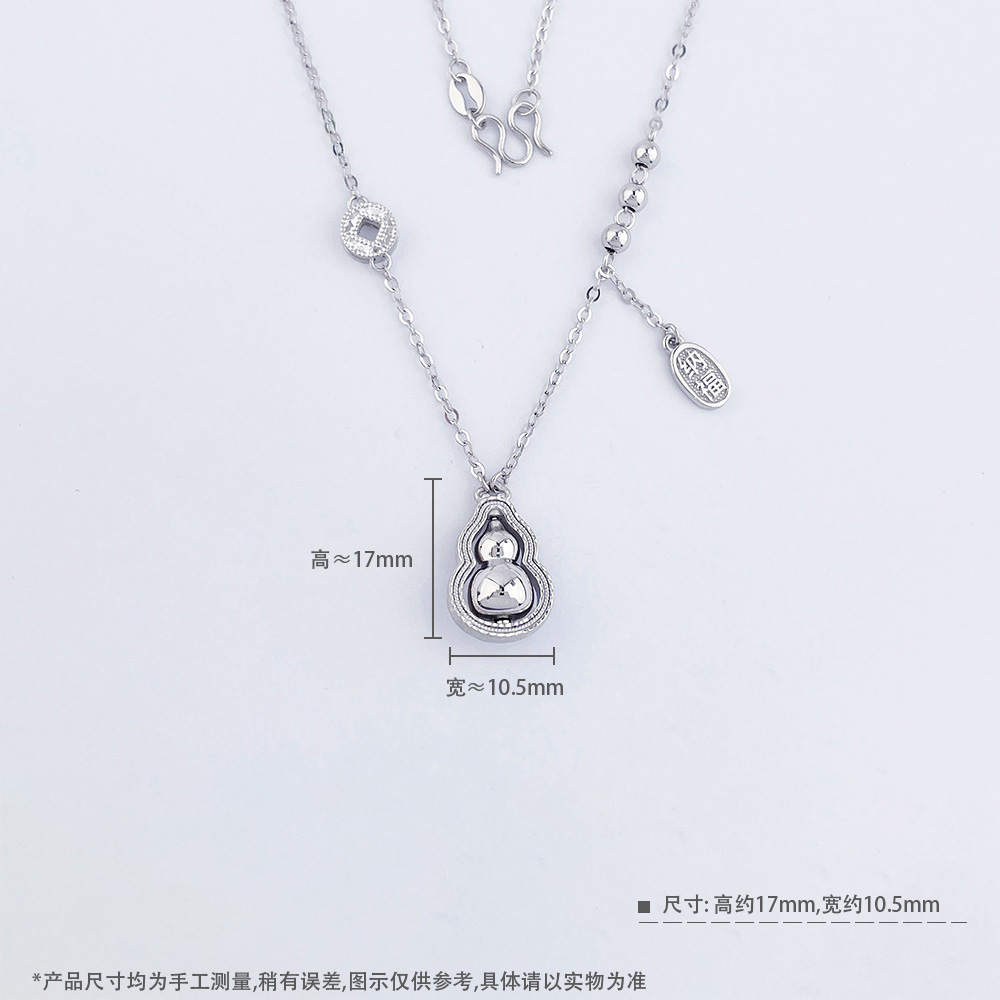 【限时8.8折】【线上铂金馆】PT950 #招财纳福 【铂金协会 精品】铂金镂空铜钱造型金币招财纳福调节项链福禄连连可转葫芦套链(BTL00332)预售产品下单后不退款不退货不换货不补差价)