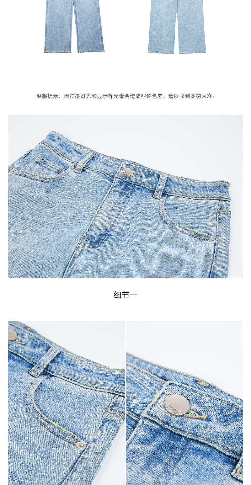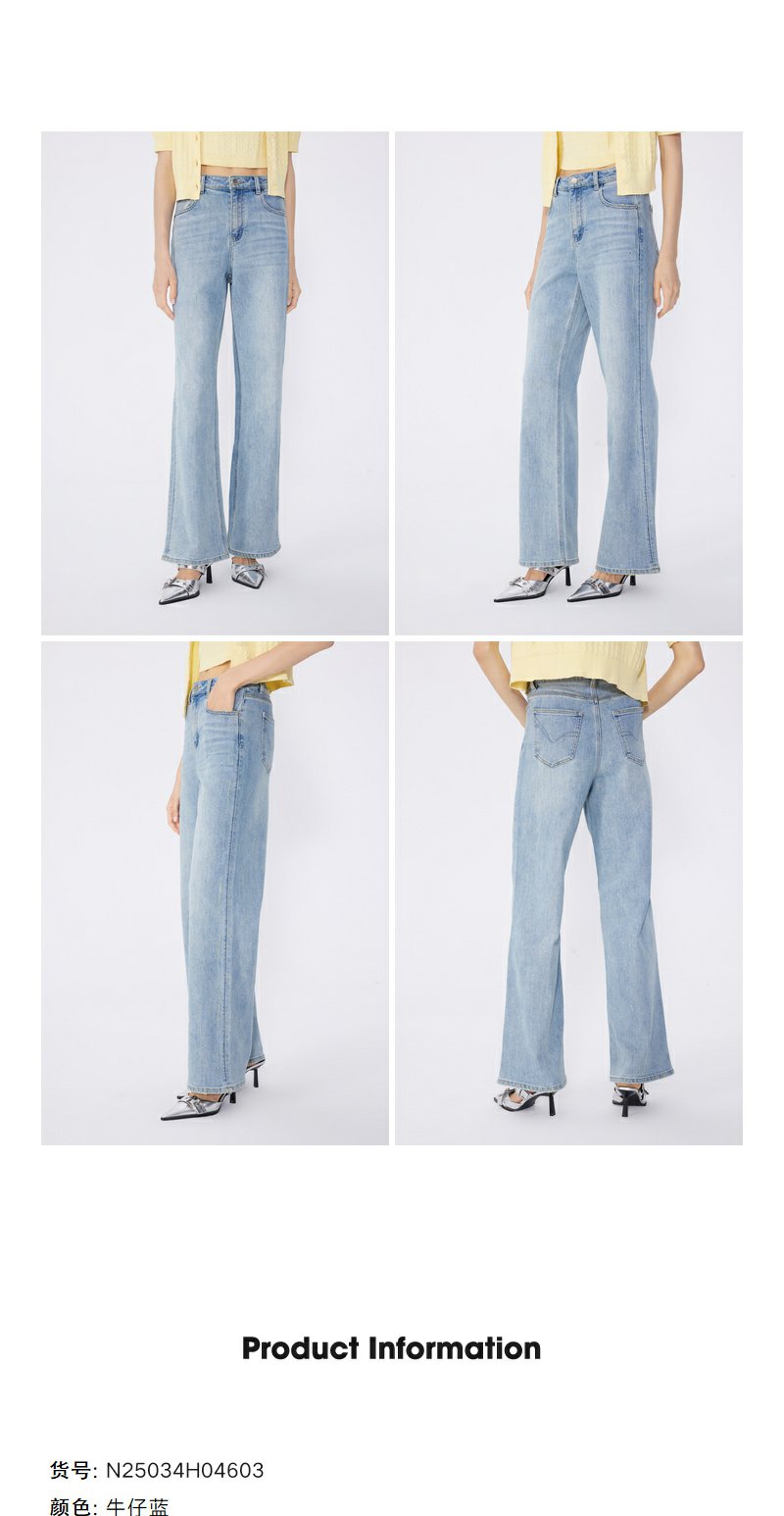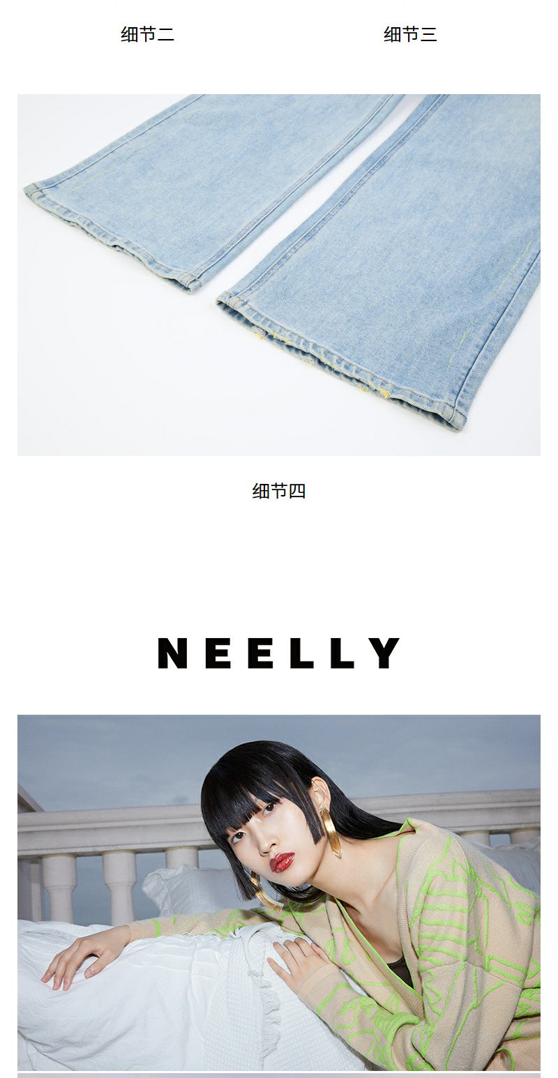 NEELLY纳俪商场同款春新款复古水洗微喇牛仔裤女修饰腿型百搭长裤N25034H04603