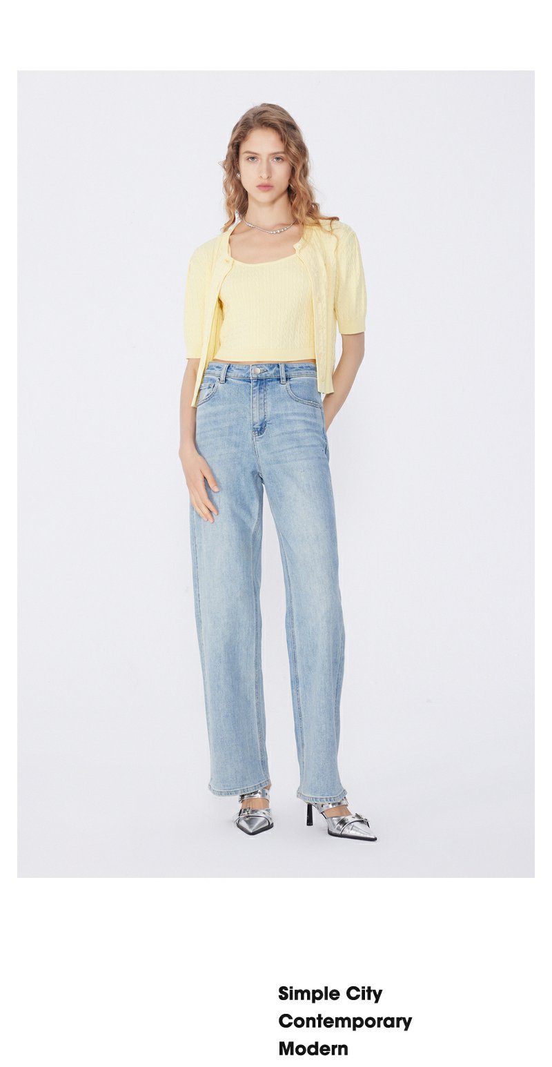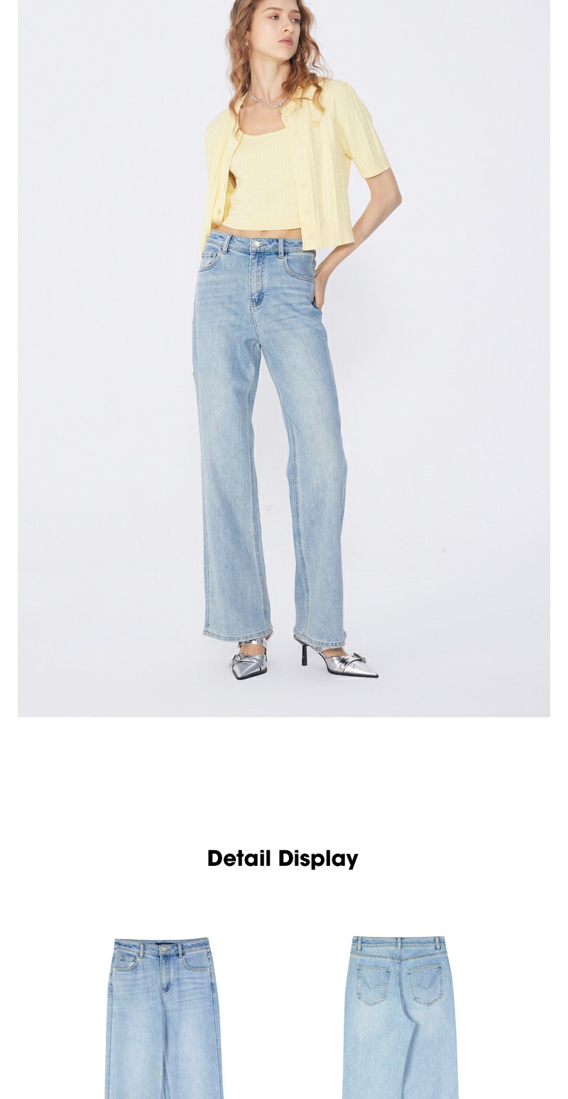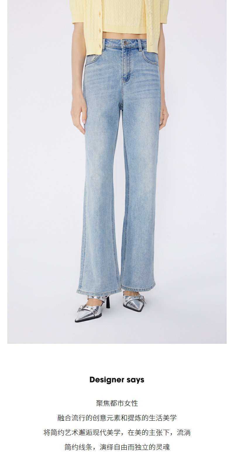 NEELLY纳俪商场同款春新款复古水洗微喇牛仔裤女修饰腿型百搭长裤N25034H04603