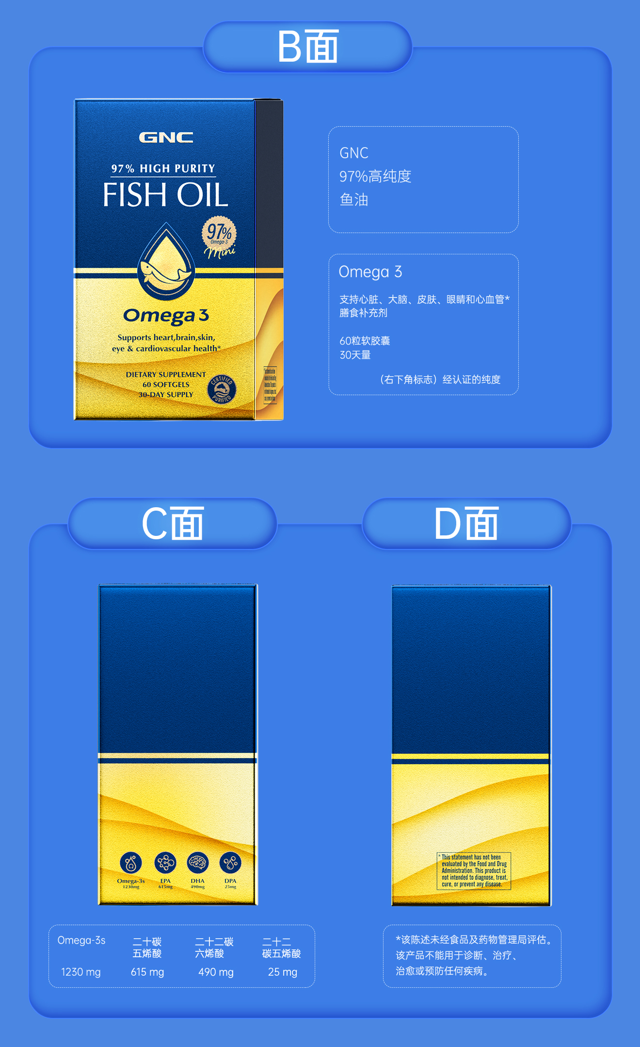 GNC皇冠97鱼油软胶囊
