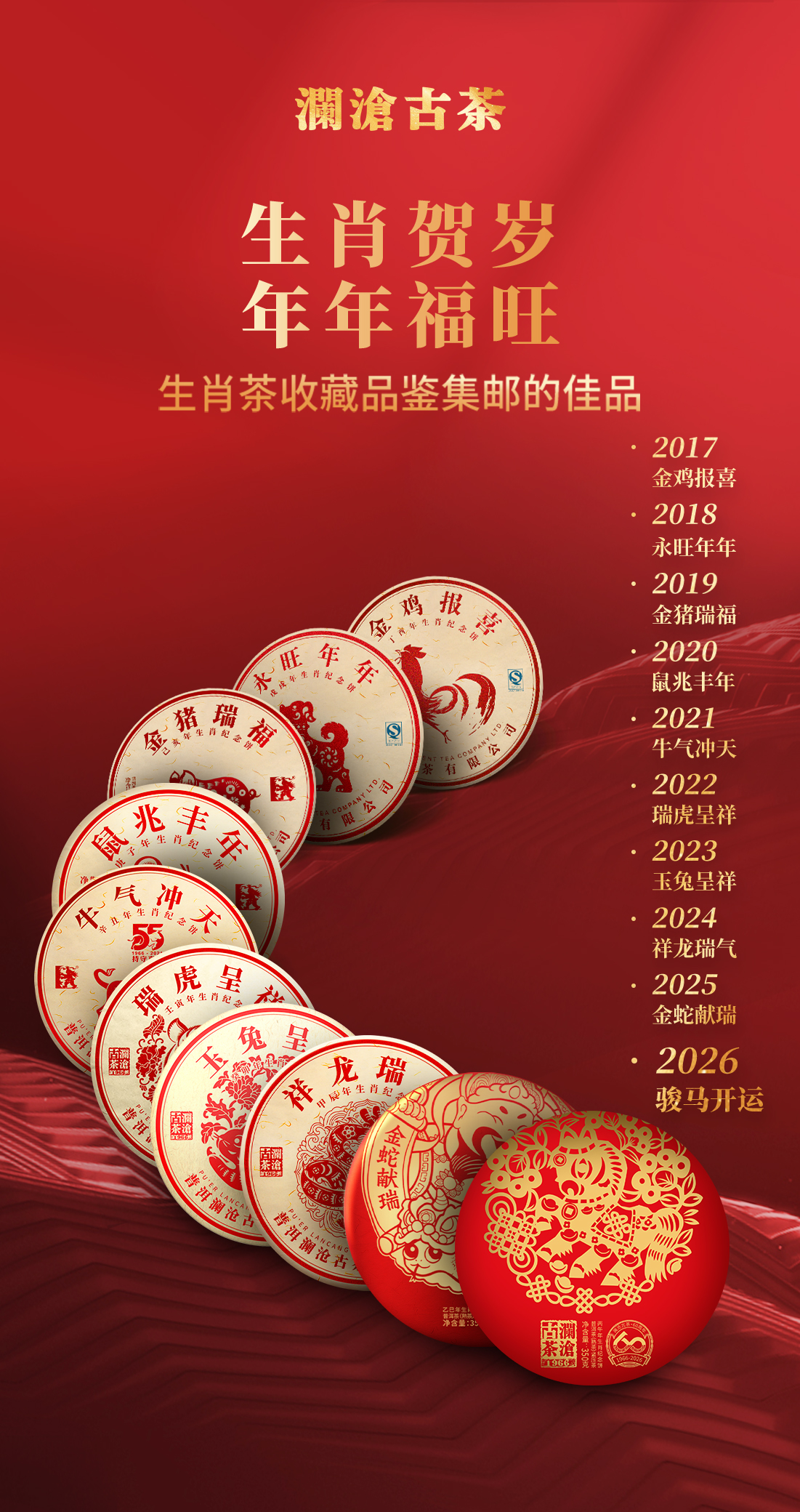 【生肖熟茶纪念套组】澜沧古茶生肖饼普洱茶熟茶鸡狗猪鼠牛虎兔龙蛇马共10片