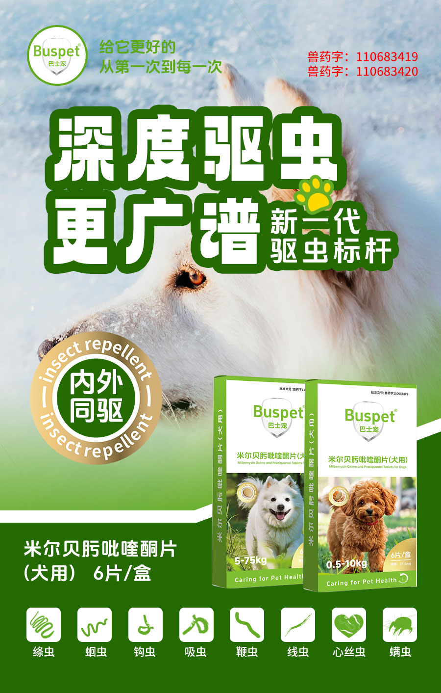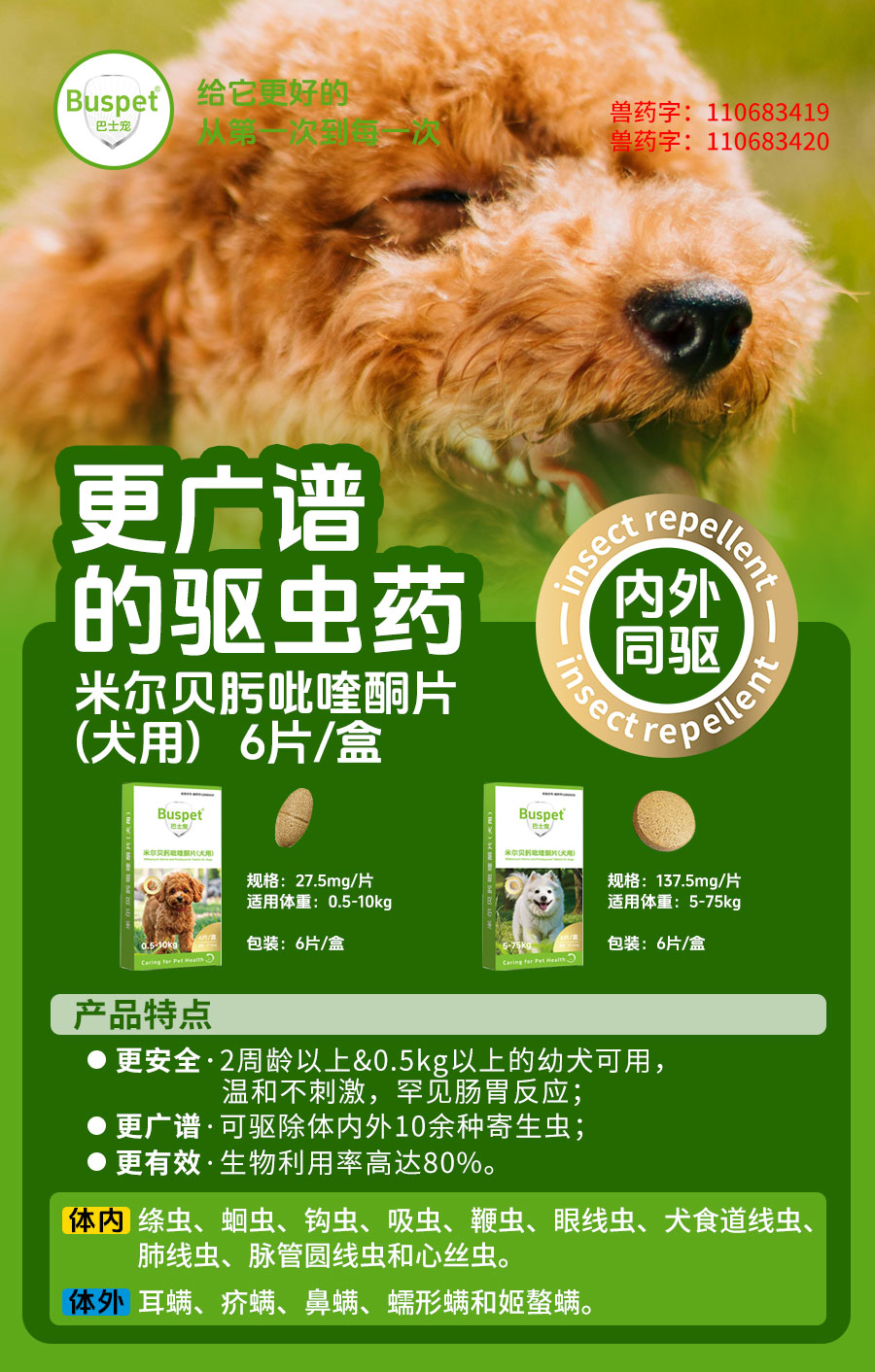 巴士宠米尔贝肟吡喹酮片3片/6片盒装 内外同驱 广谱驱虫 易吸收 海乐旺同款成份 线下款