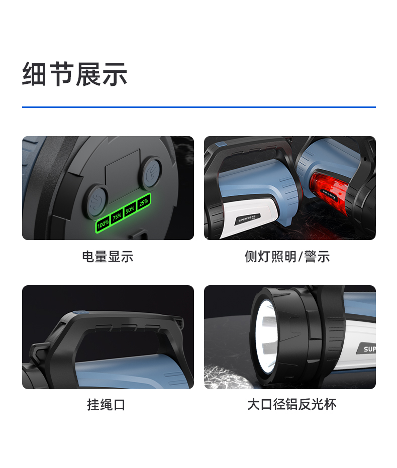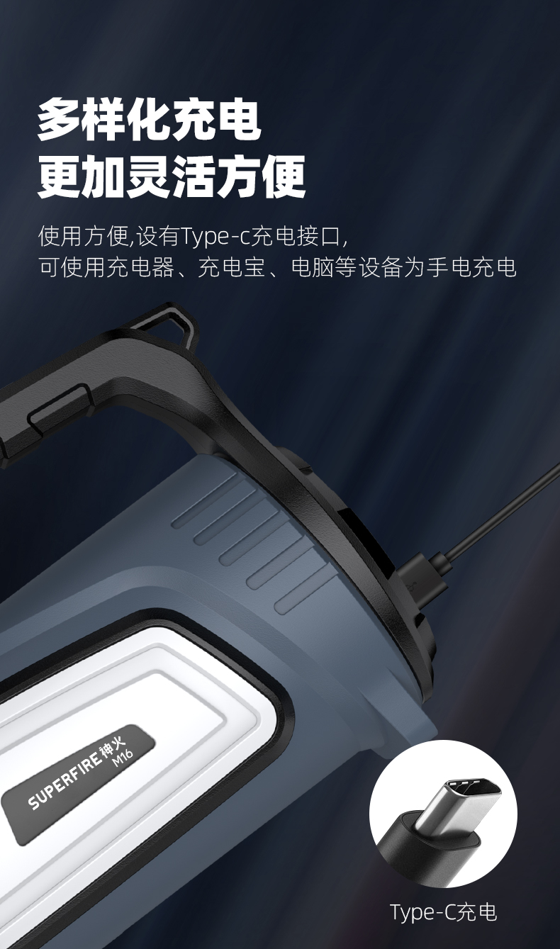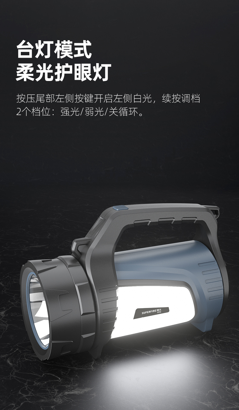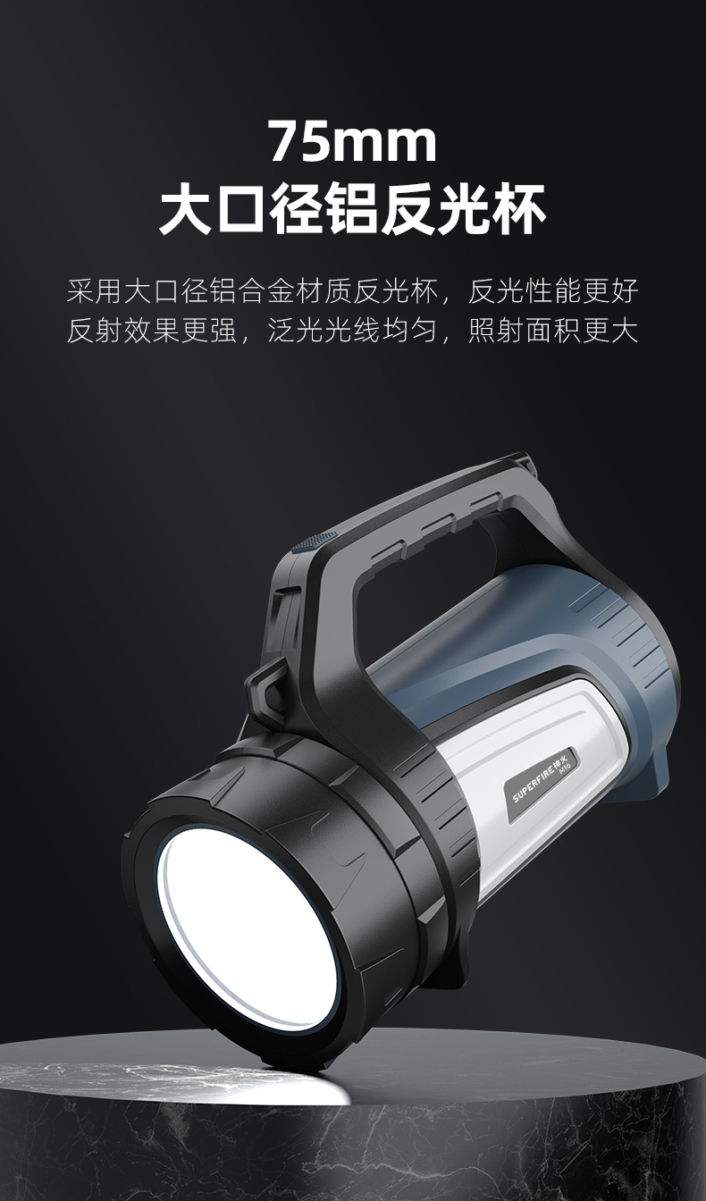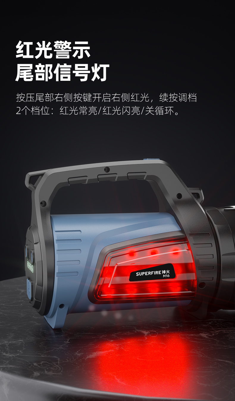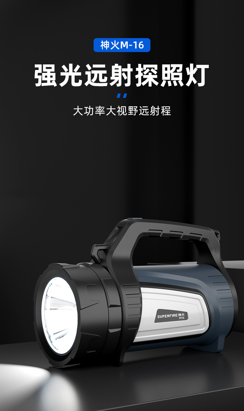 SUPERFIRE神火M16探照灯手电筒强光远射户外手提灯充电长续航大功率家用超亮手电