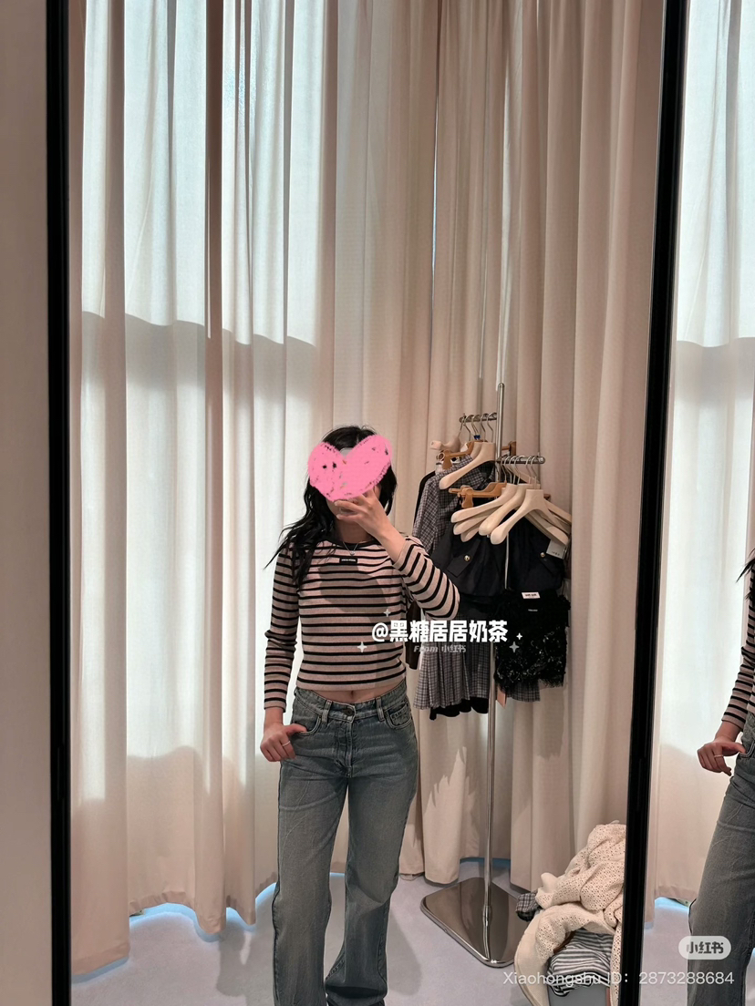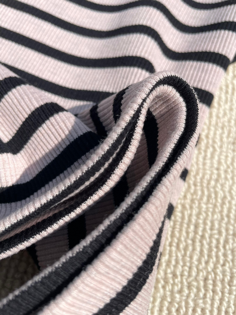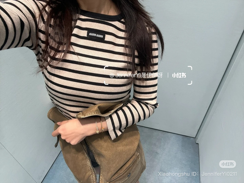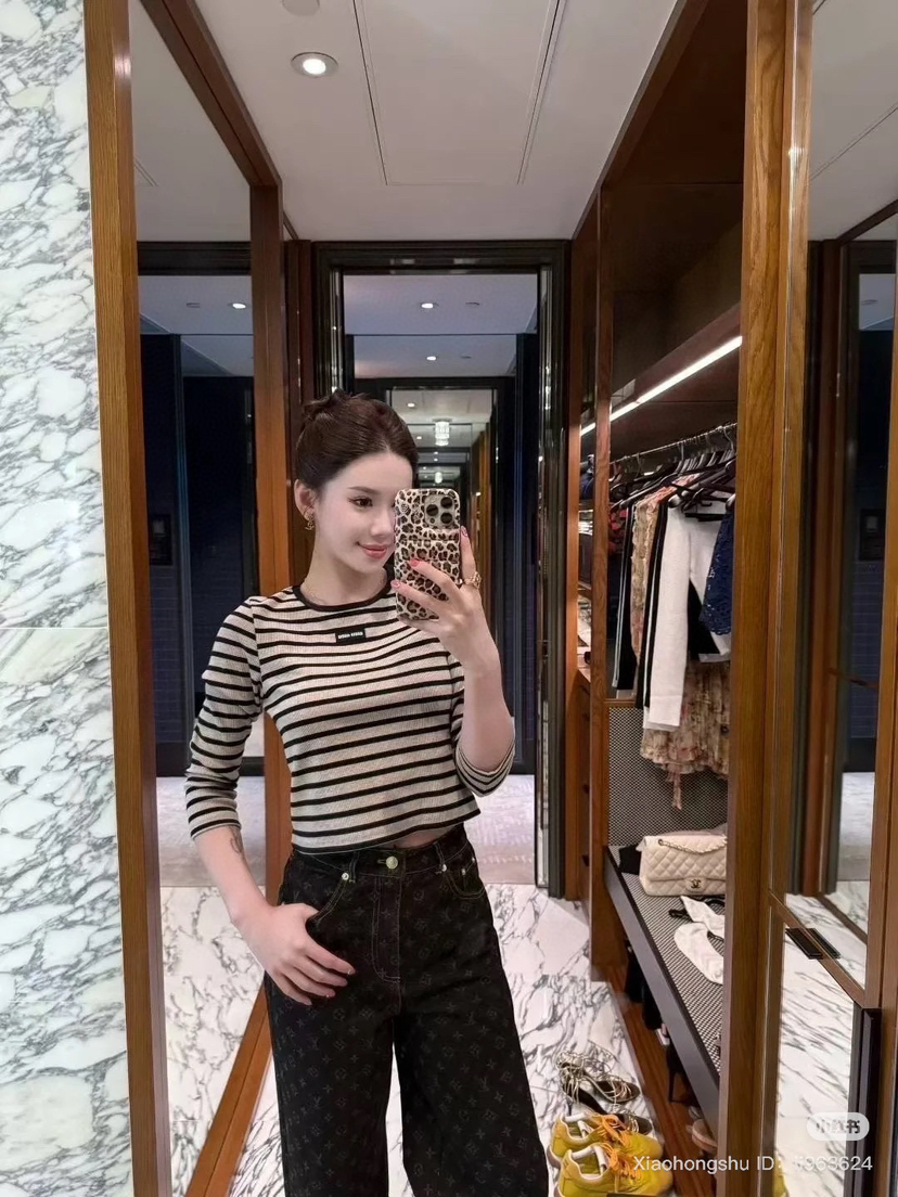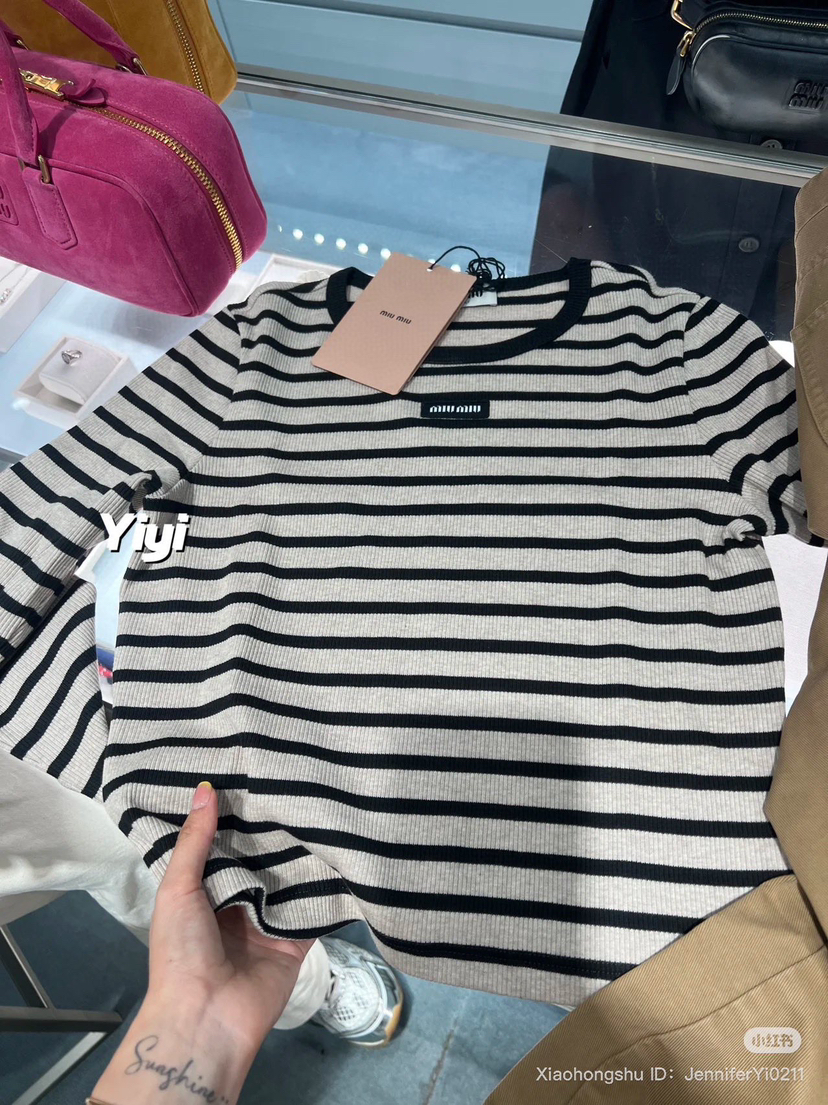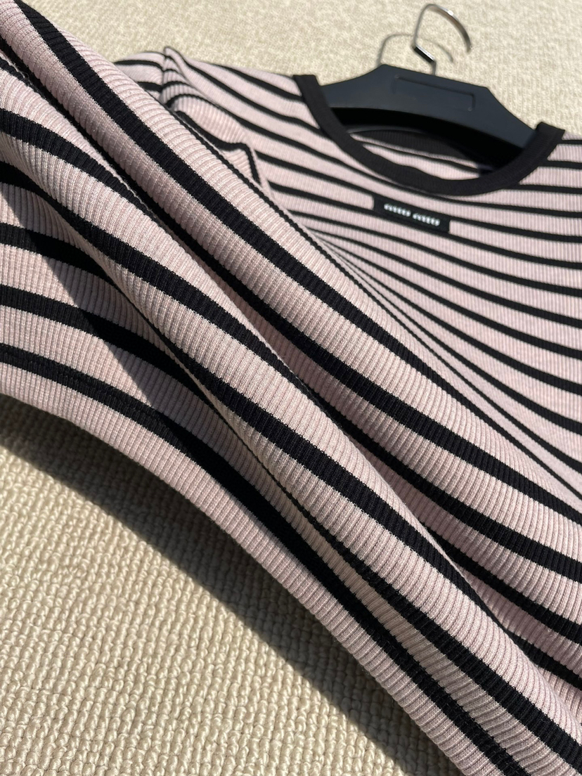 728-3 独家圆正 大爆款 miu大地色系 条纹短款九分长袖衫 单穿打底衫 我穿M修身偏小一号