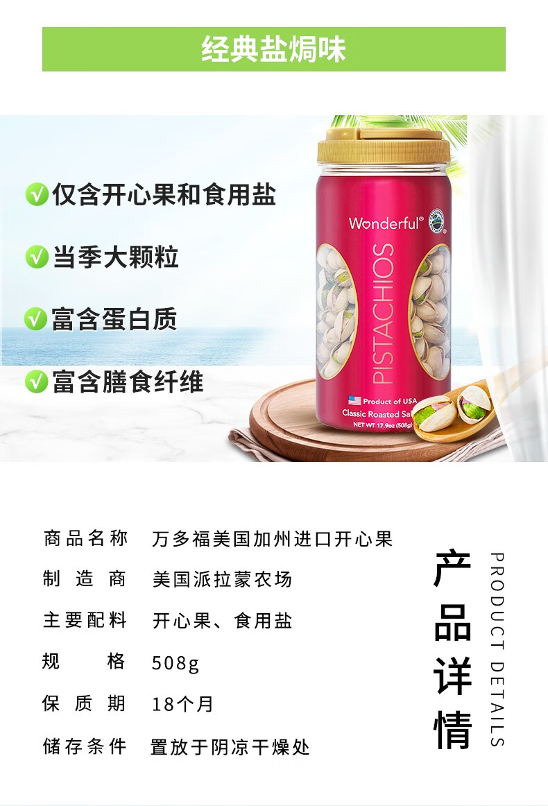 万多福美国加州进口开心果经典盐焗味508g/058027 当季大颗粒盐焗味