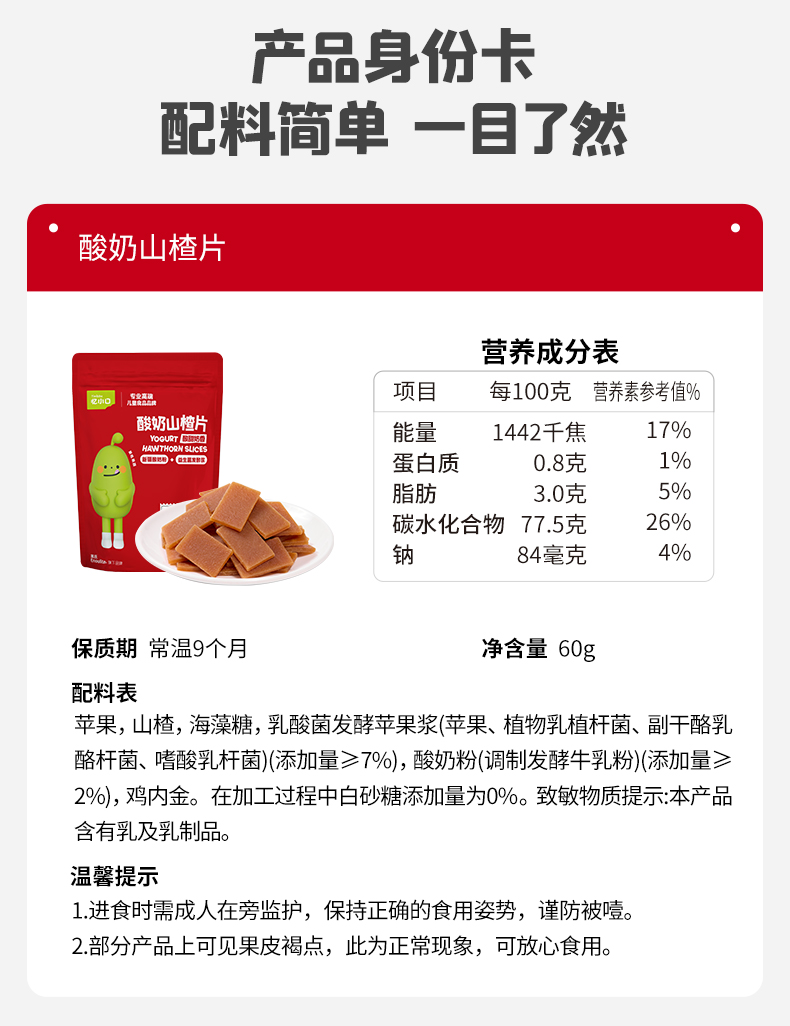 英氏忆小口酸奶山楂片【89元任选5件+5件礼品】