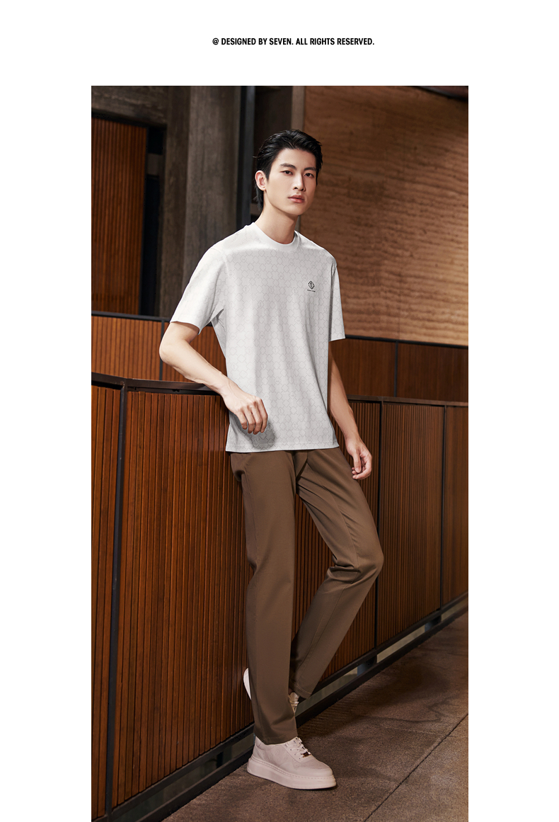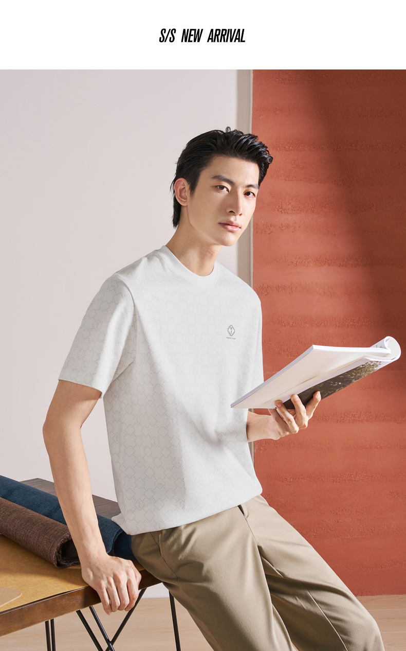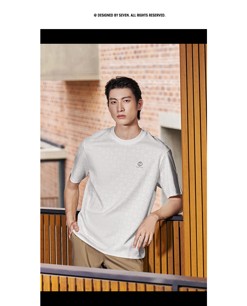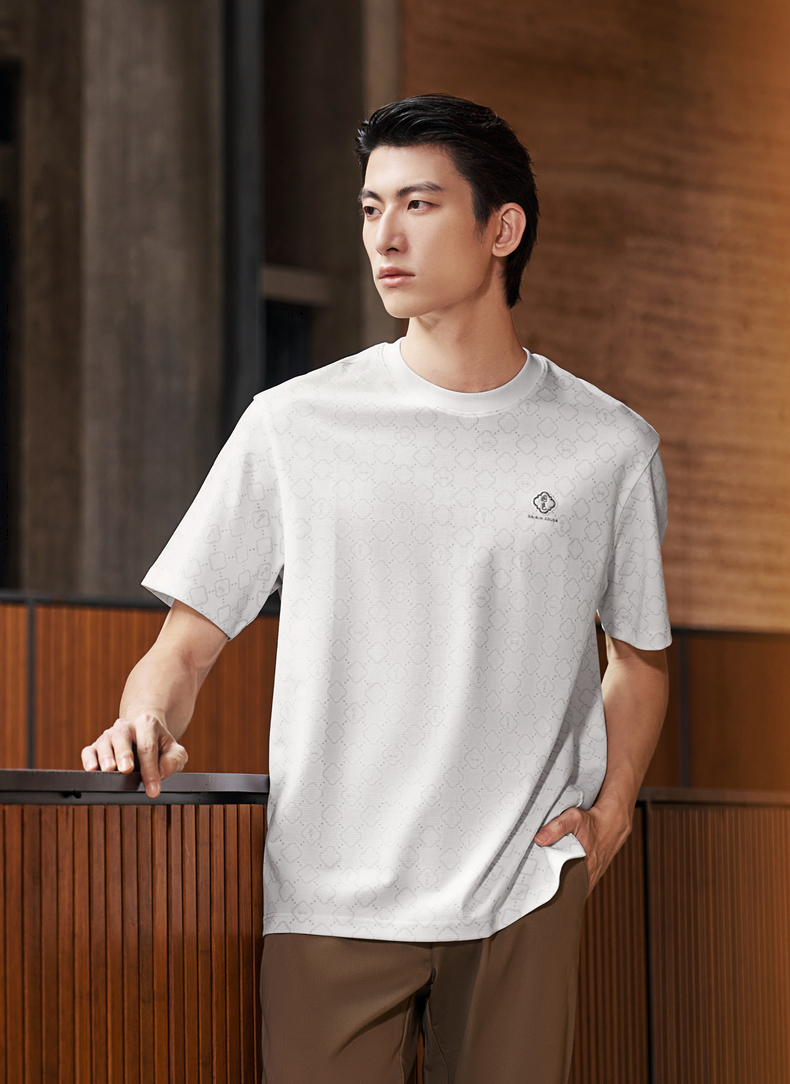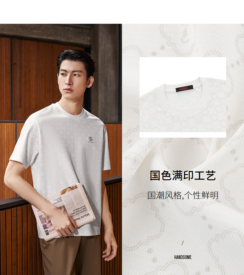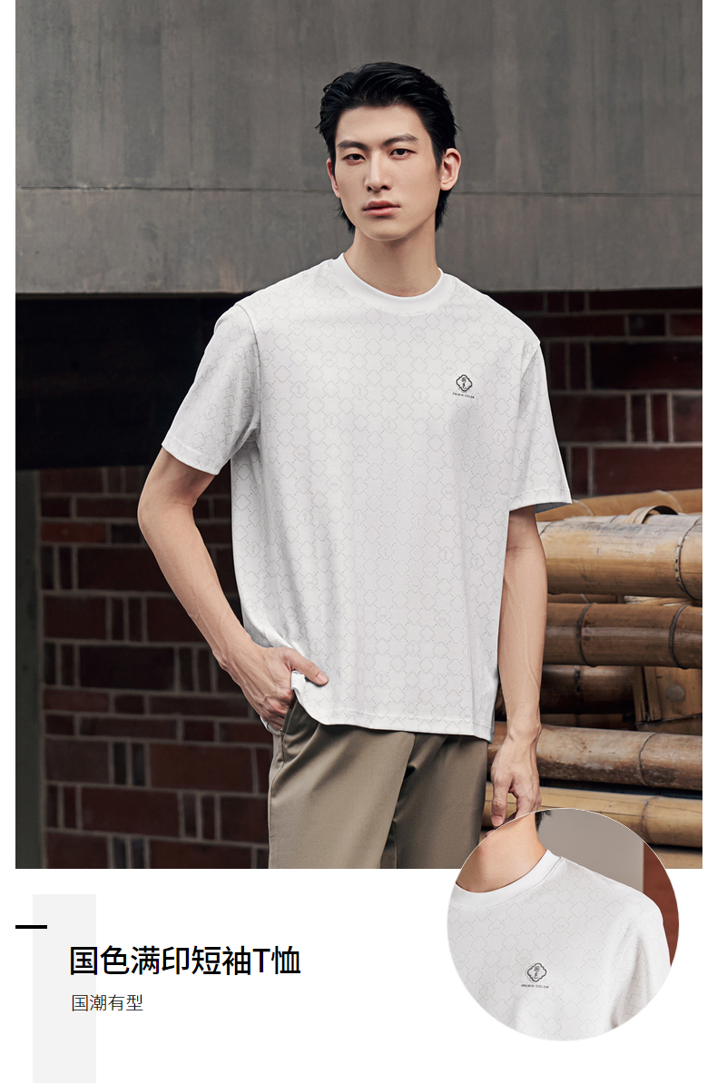 【国色系列】柒牌短袖T恤男2026夏季新品微肌理满印休闲圆领上衣 130T71710